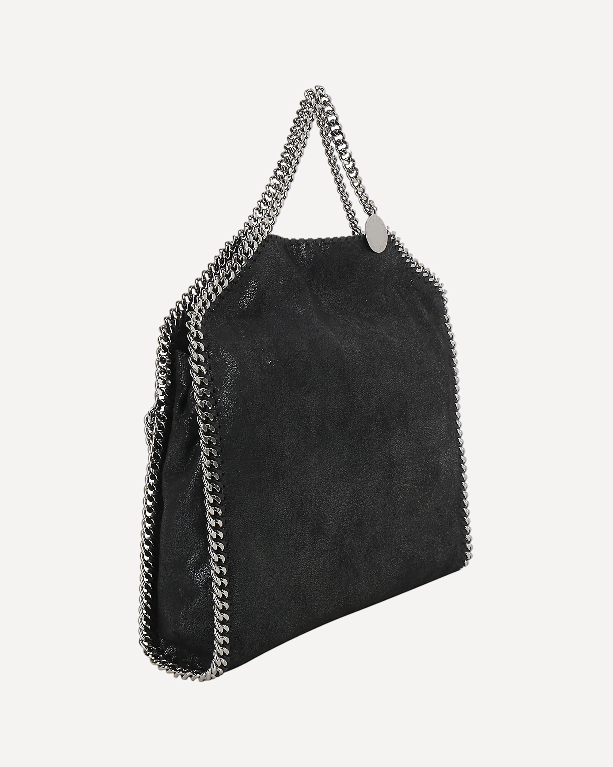 The Falabella Fold Over Hand Tote Bag by Stella McCartney is a sustainable style icon, featuring a sleek and recognizable design. Crafted with the signature silver-tone three-chain finish, it features a snap-button closure and an interior compartment with pouch pocket for perfect organization. The logo on external plaque completes the model with a distinctive detail, an expression of the brand's contemporary aesthetic.