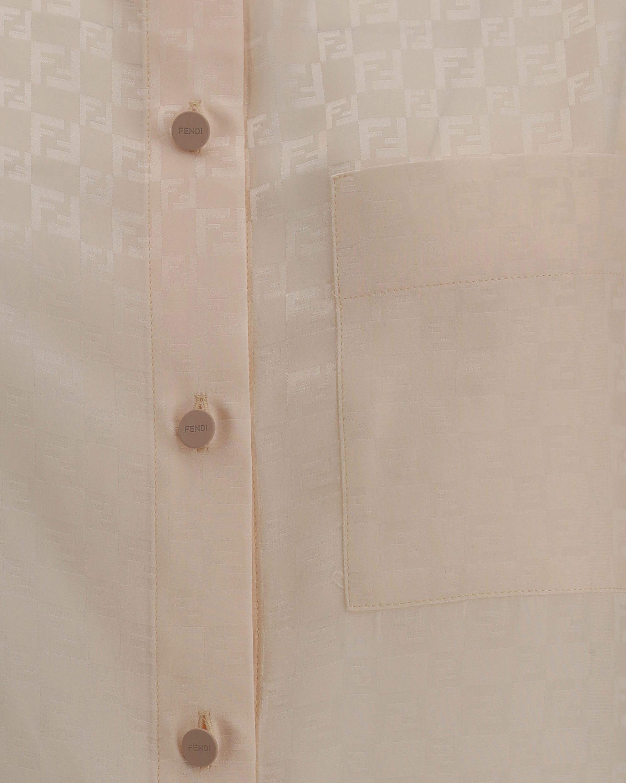 Fendi's Silk Shirt is a sophisticated and trendy garment perfect for those seeking elegance and modernity. The classic collar and front button closure give it a clean and refined look, while the patch pocket on the front adds a practical and distinctive touch. The short-sleeved design makes it ideal for warmer days while maintaining a chic and sophisticated air. The brand's iconic all-over FF pattern is the eye-catching detail that gives the garment personality.
