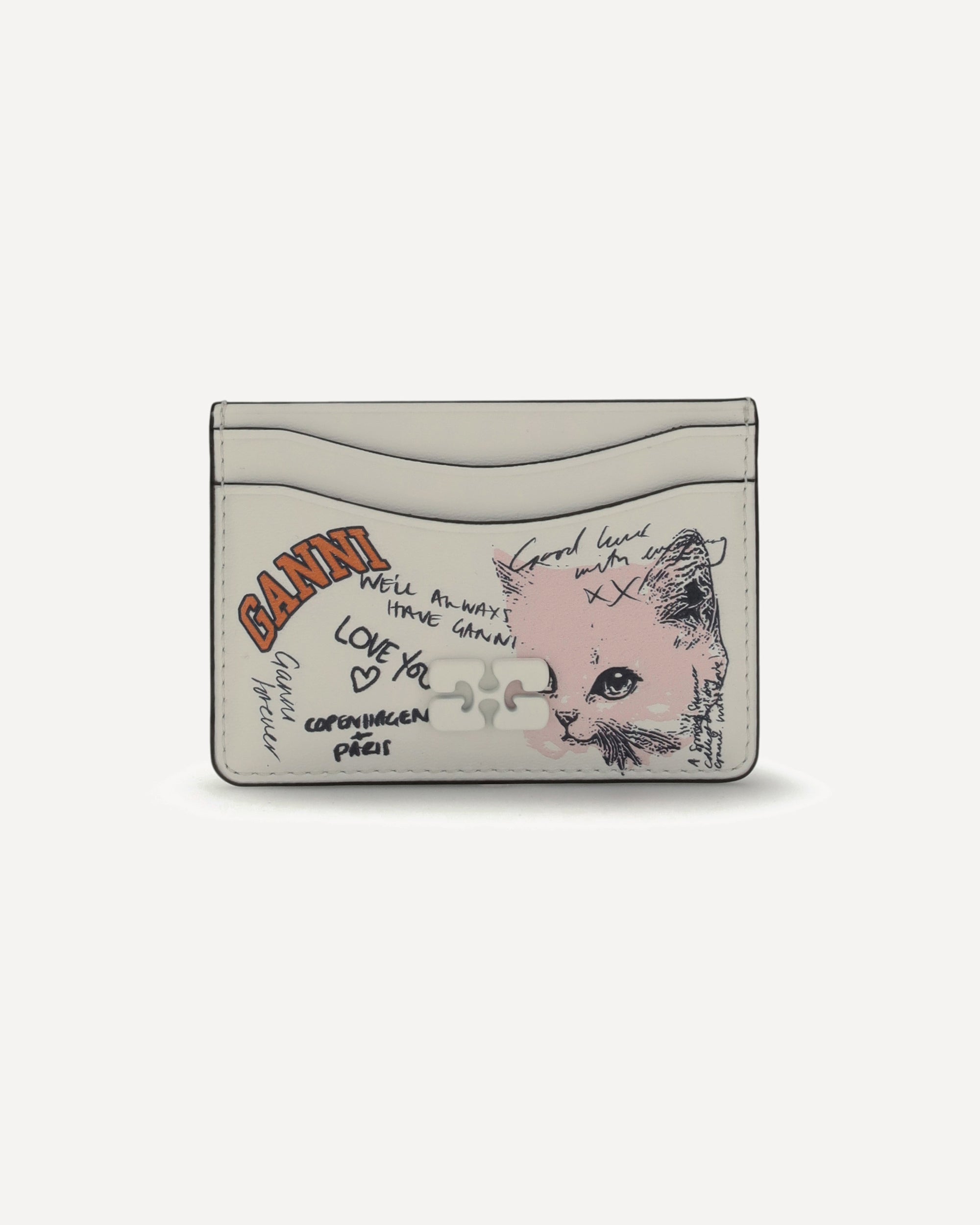 Ganni's Kitty Card Holder is a practical and characterful accessory featuring a vibrant leopard print. It has multiple card compartments and features the GANNI logo along with the distinctive metallic GANNI Butterfly logo for an iconic and contemporary touch.