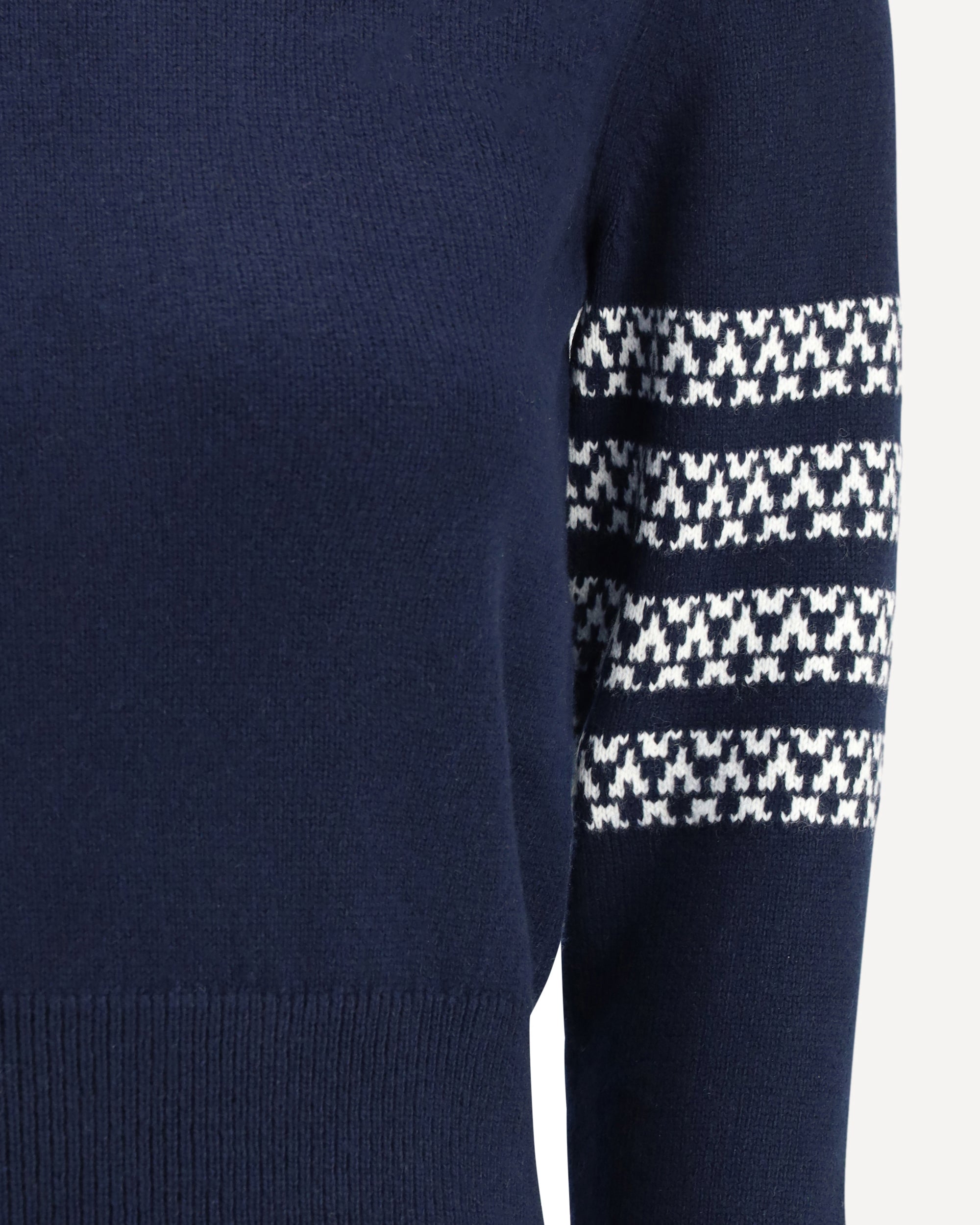 The Holiday Hector Sweater di Thom Browne combines elegance and originality. Carefully crafted, it features a ribbed crew neck, cuffs and hem with side buttons, enhanced by decorated hems and inlays on the sleeves. The back features the brand's famous dachshund symbol Hector for a distinctive and refined touch.