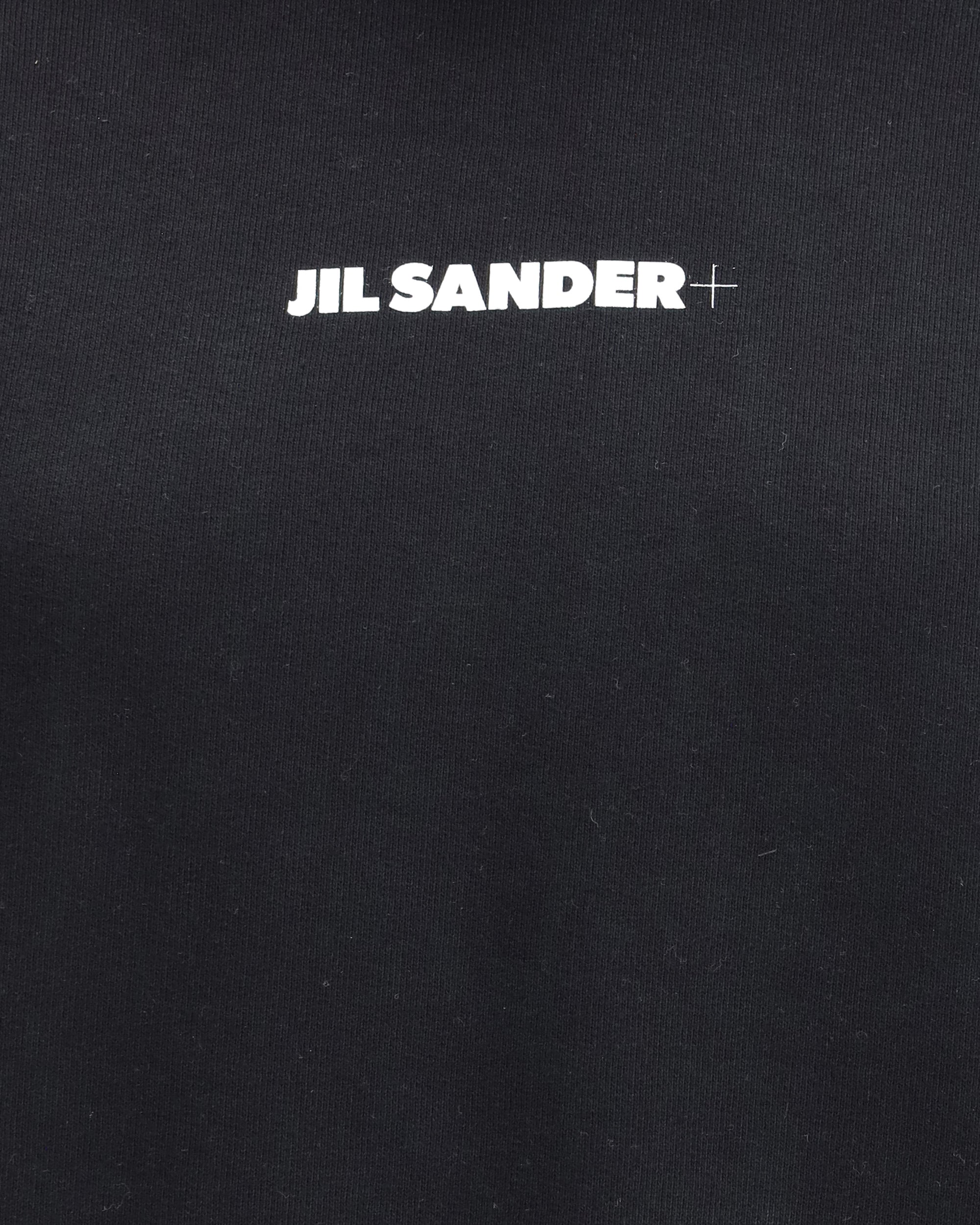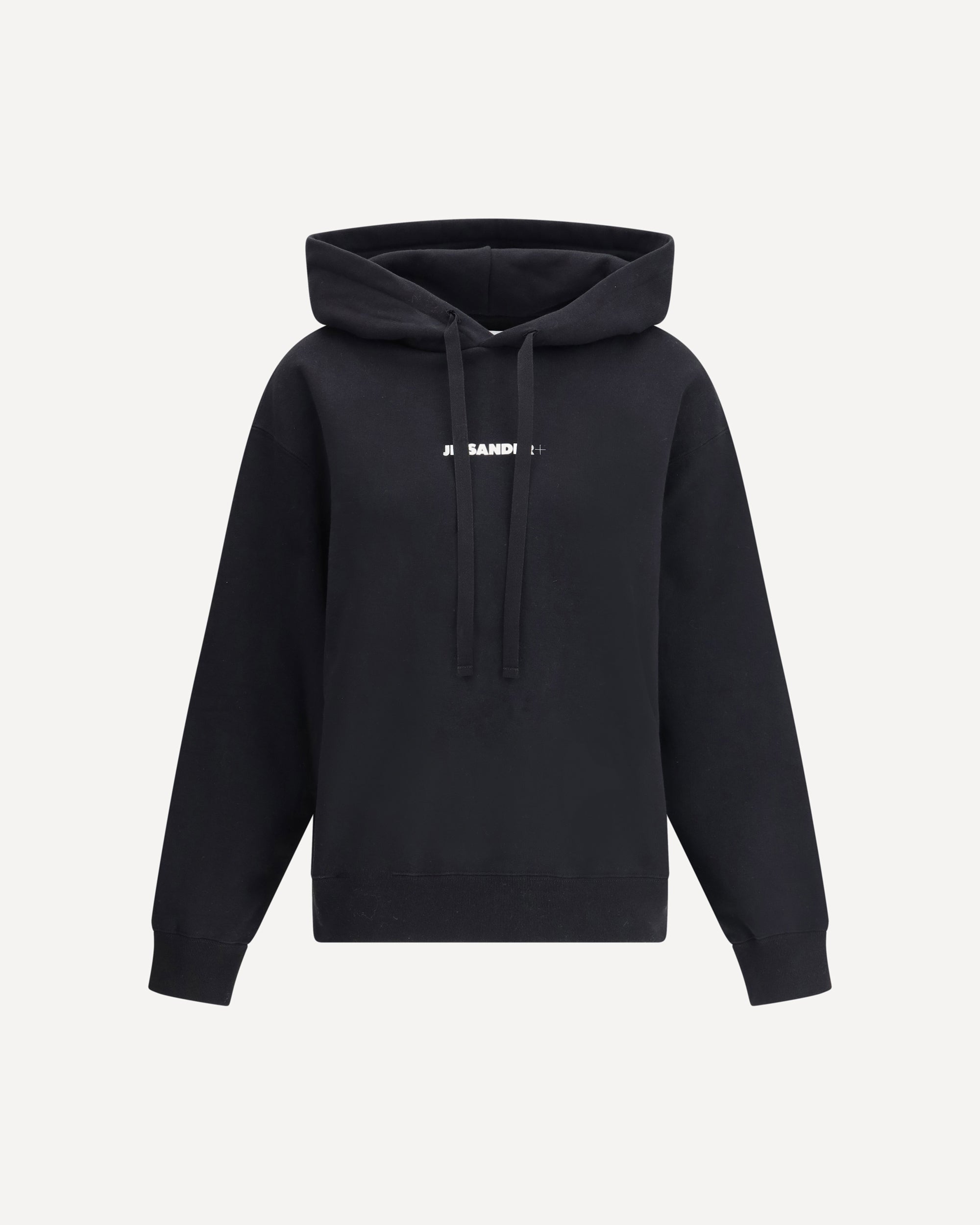 Jil Sander's Hoodie is a piece with a minimalist and sophisticated style. The adjustable drawstring hood adds functionality and comfort, while the brand's iconic signature contrasting print on the front lends a distinctive touch. The ribbed hem and cuffs complete the design, ensuring a comfortable, finished fit. Perfect for a casual look but with a strong emphasis on the brand's signature quality and elegance.