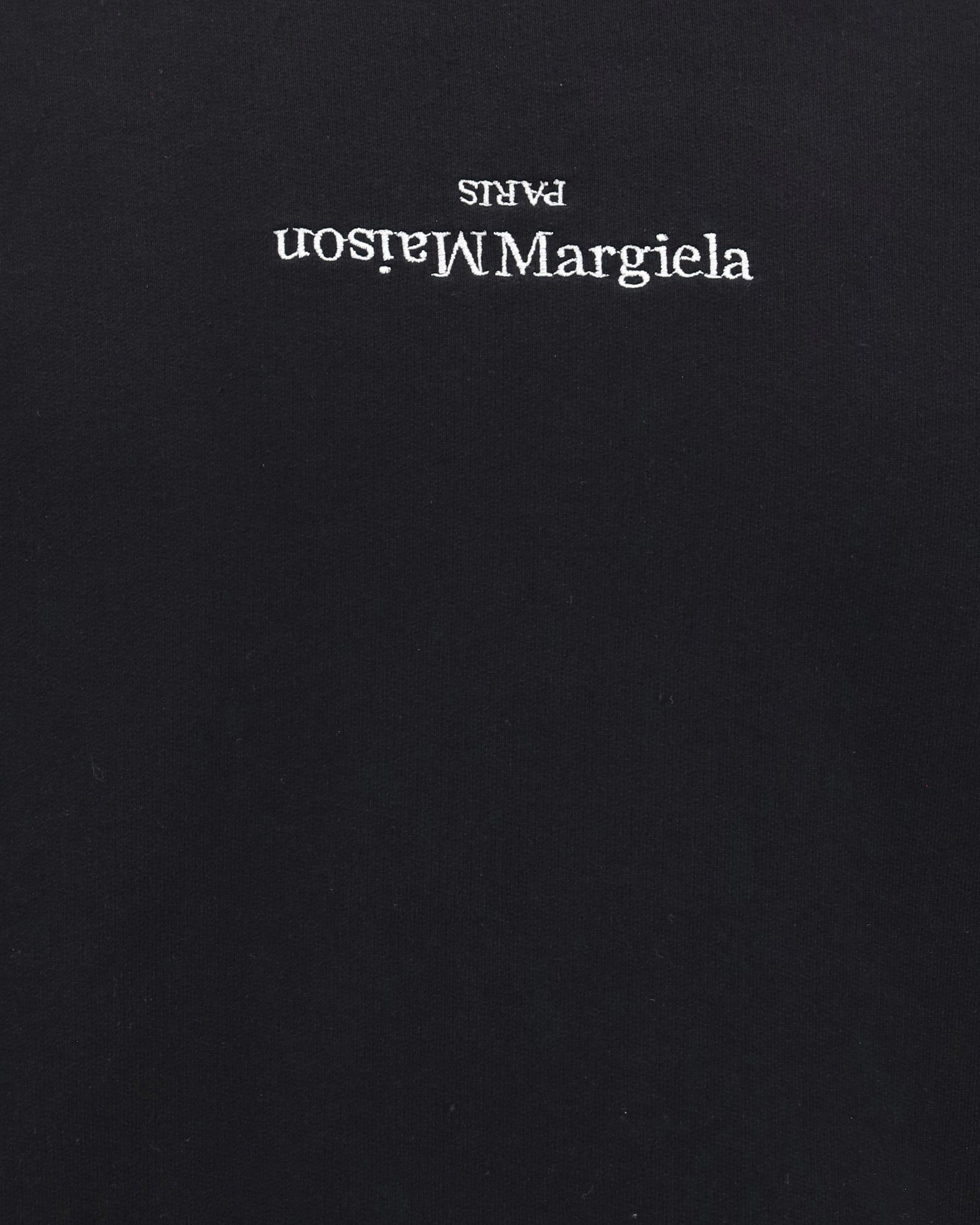 Cotton Hoodie by Maison Margiela, adjustable drawstring hoodie, ribbed cuffs and bottom hem, embroided logo on front, oversize fit.