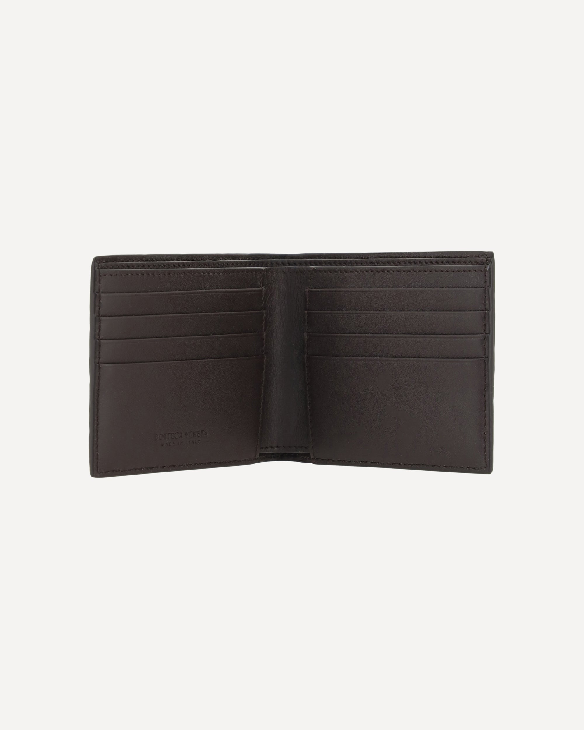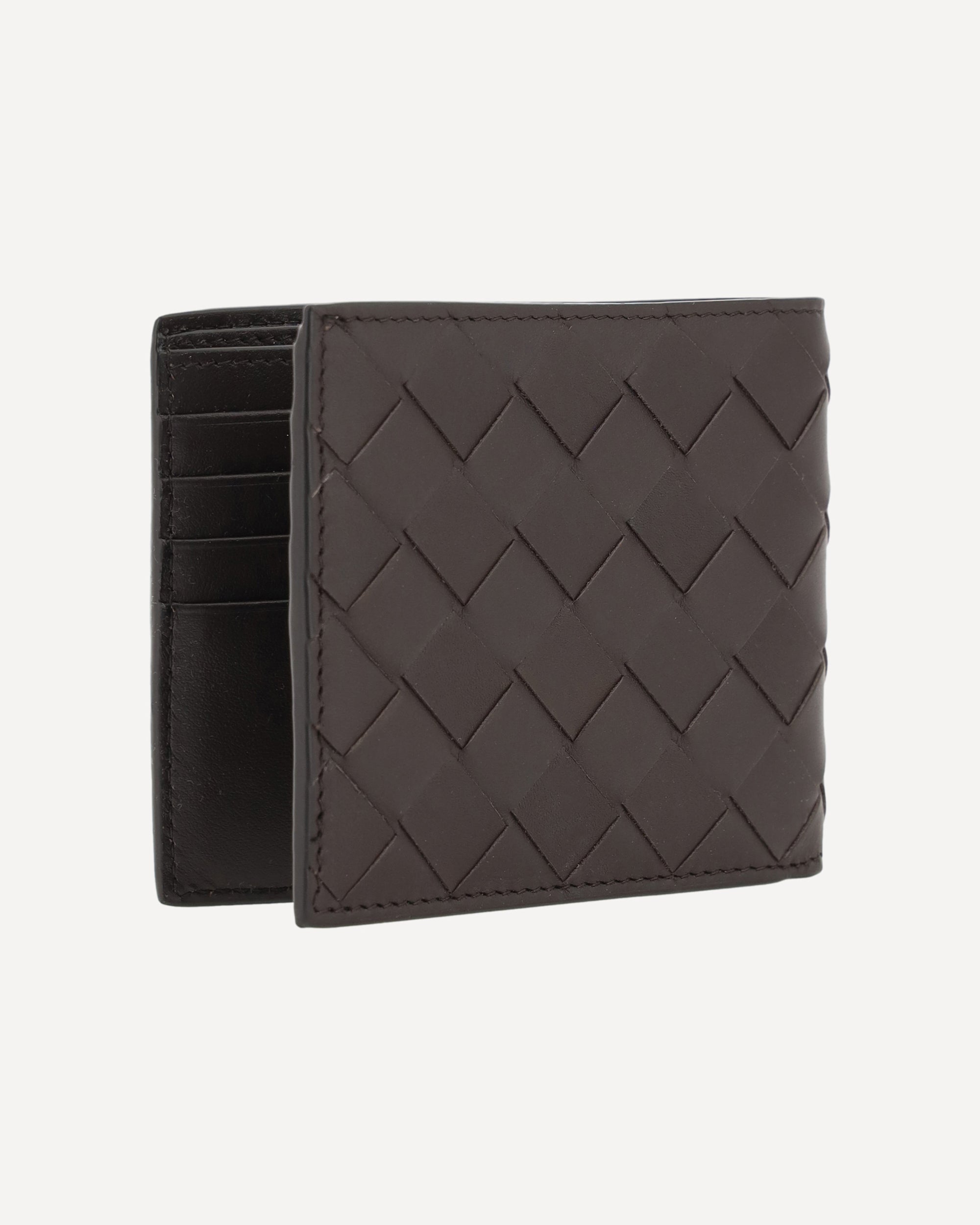 The Bottega Veneta leather Wallet features a billfold design, with a dedicated compartment for bills. Inside, you will find the brand's iconic press-stamped monogram, an elegant and discreet detail. The wallet features the traditional woven pattern that covers the entire surface, a hallmark of Bottega Veneta's craftsmanship. Internal card slots are also featured, combining functionality and timeless style.
