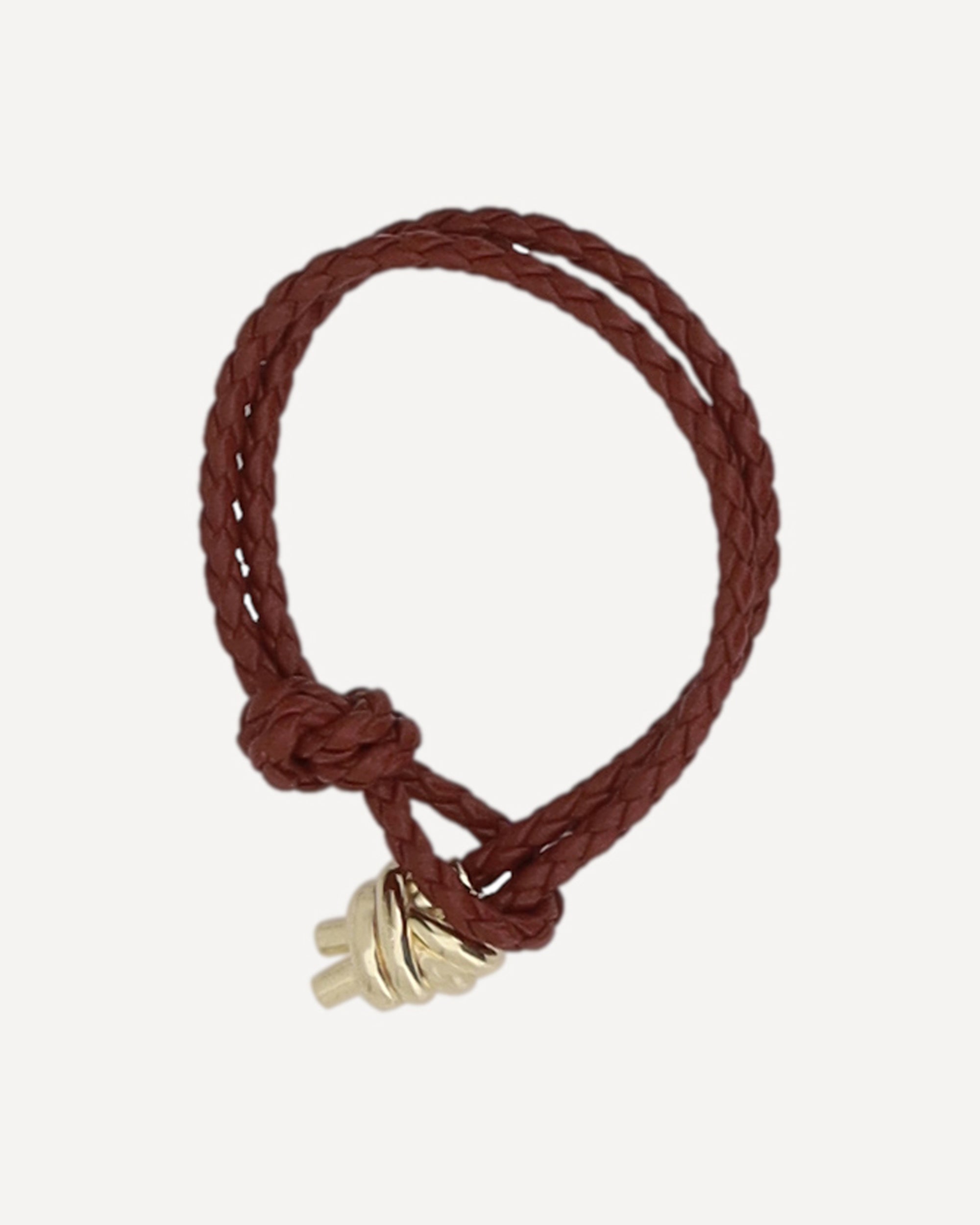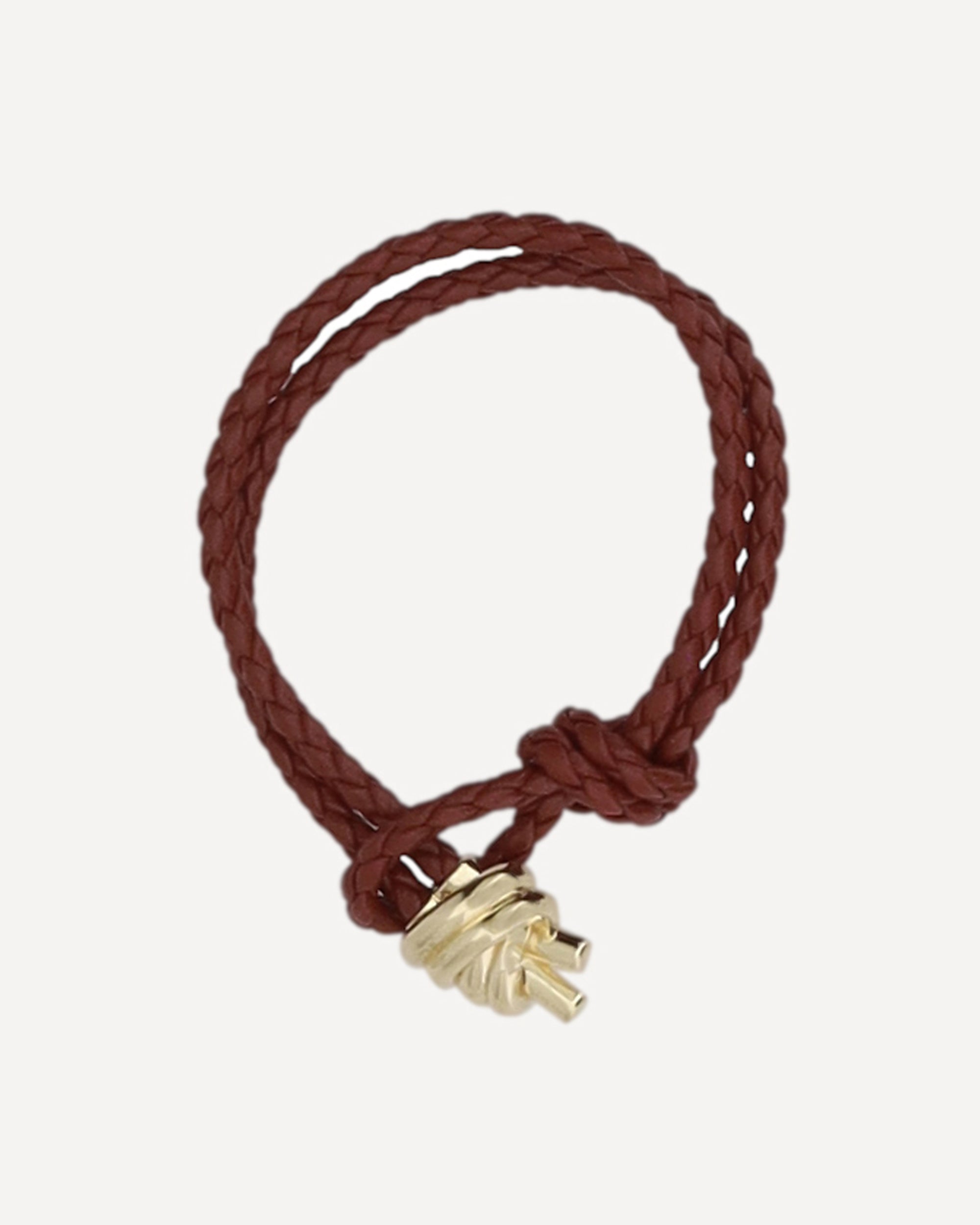 Bottega Veneta's leather Bracelet features a double loop with the iconic weave that is the house's hallmark. The clasp is embellished with the iconic golden Knot, an elegant detail that adds a touch of sophistication to the design. A sophisticated and timeless accessory.