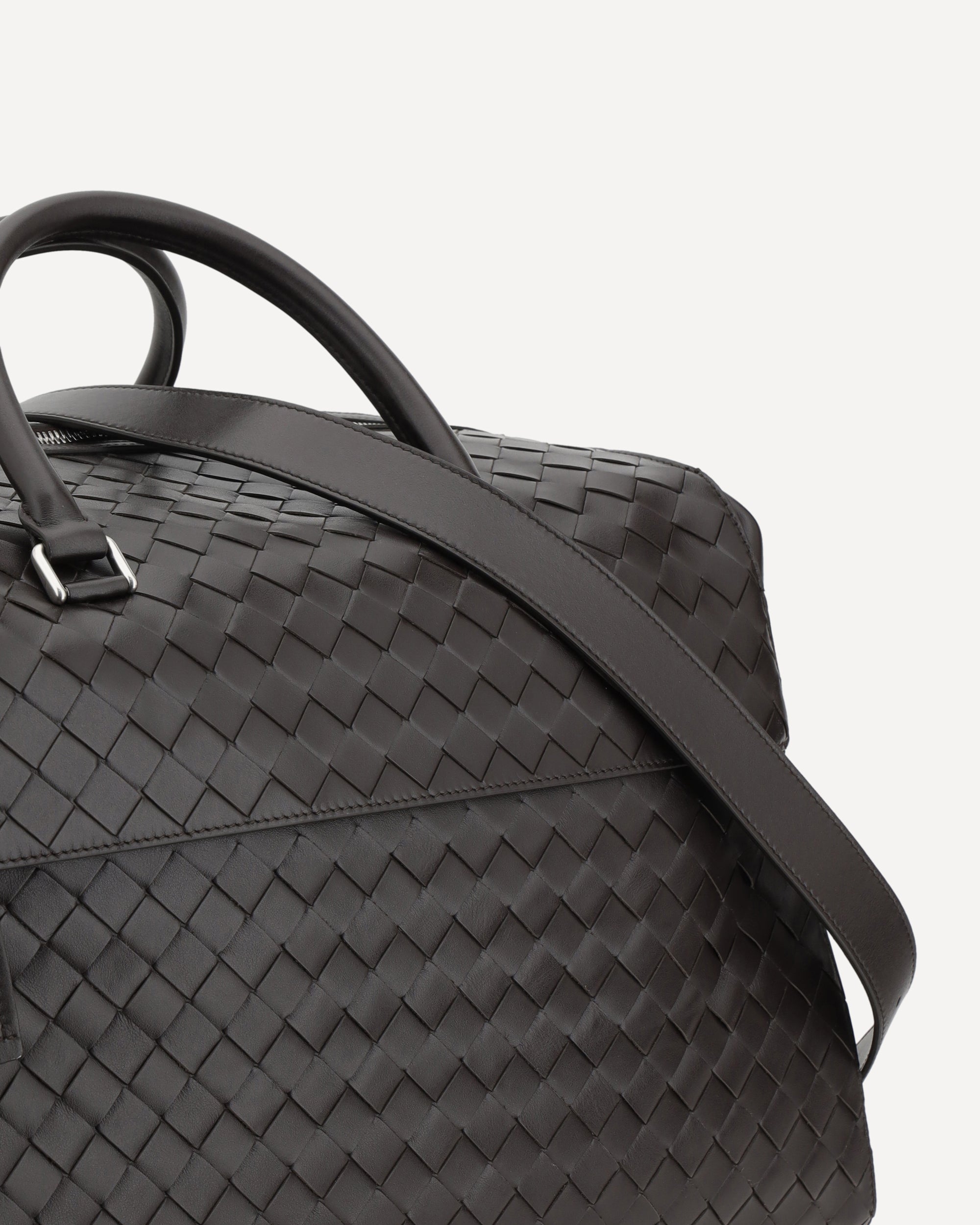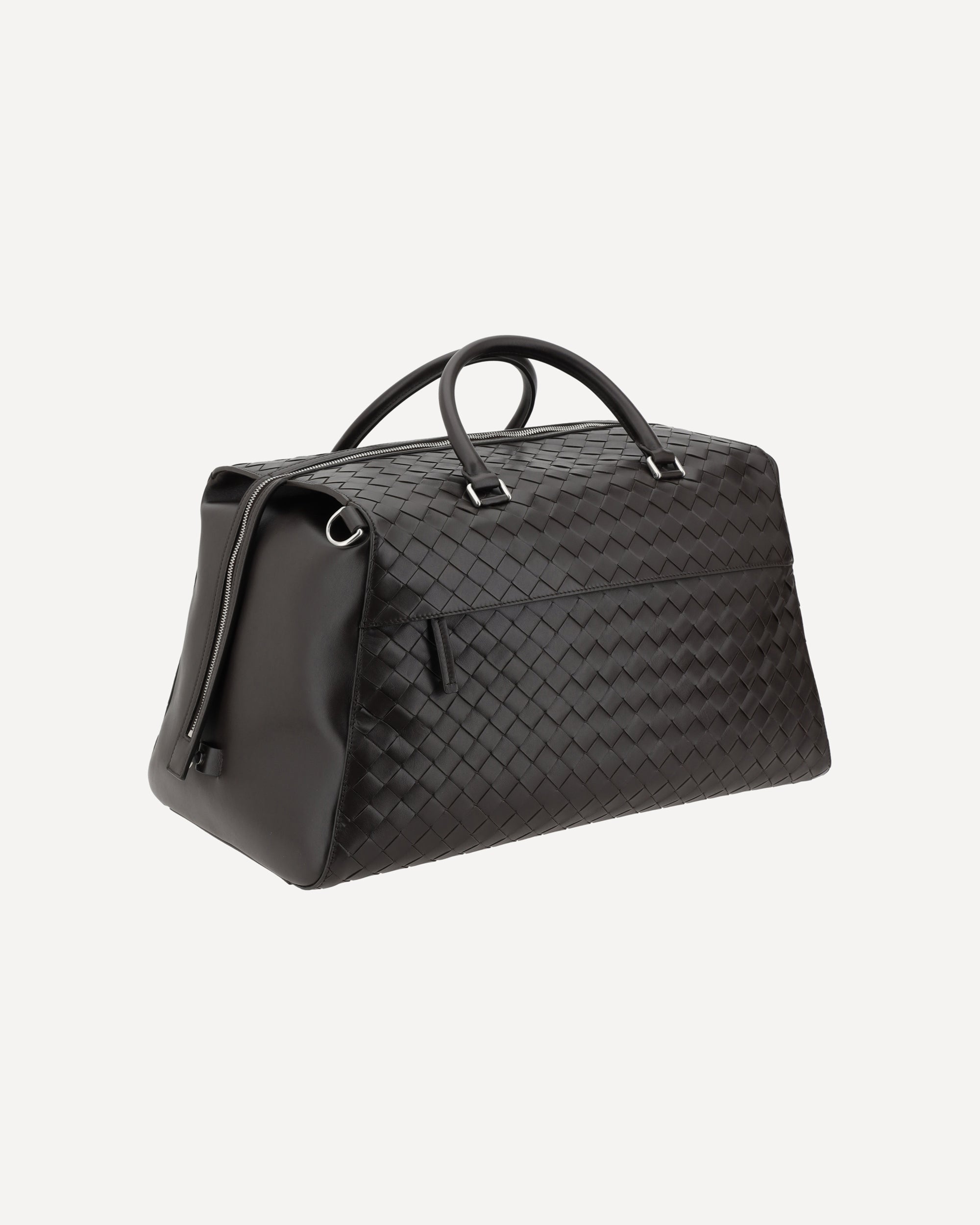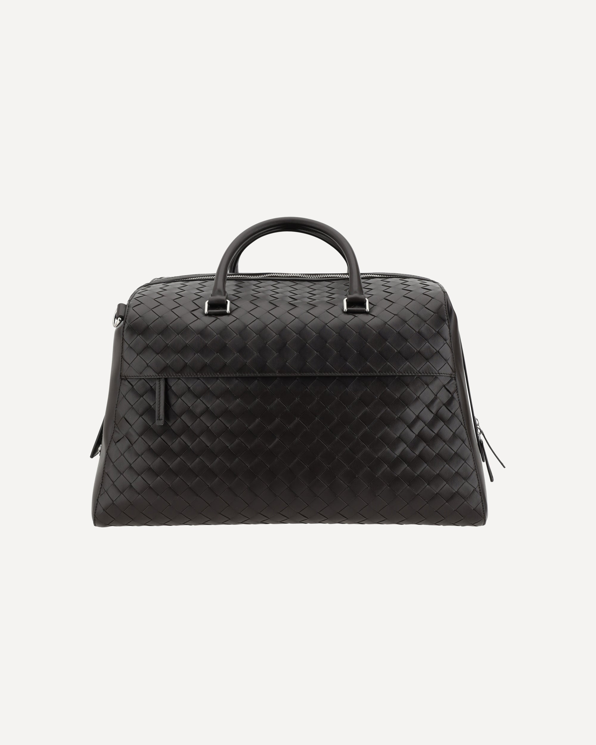 Bottega Veneta's Woven Travel Bag is a perfect balance of timeless elegance and modern functionality. Crafted using the artisanal technique of weaving, its iconic woven leather design makes it instantly recognizable and sophisticated. The bag features two tubular handles that provide a comfortable grip, while the adjustable and removable shoulder strap offers the option of carrying it over the shoulder or by hand, adapting to every need. A zippered top closure ensures security, while the back features a zippered welt pocket for easy access to smaller items.
