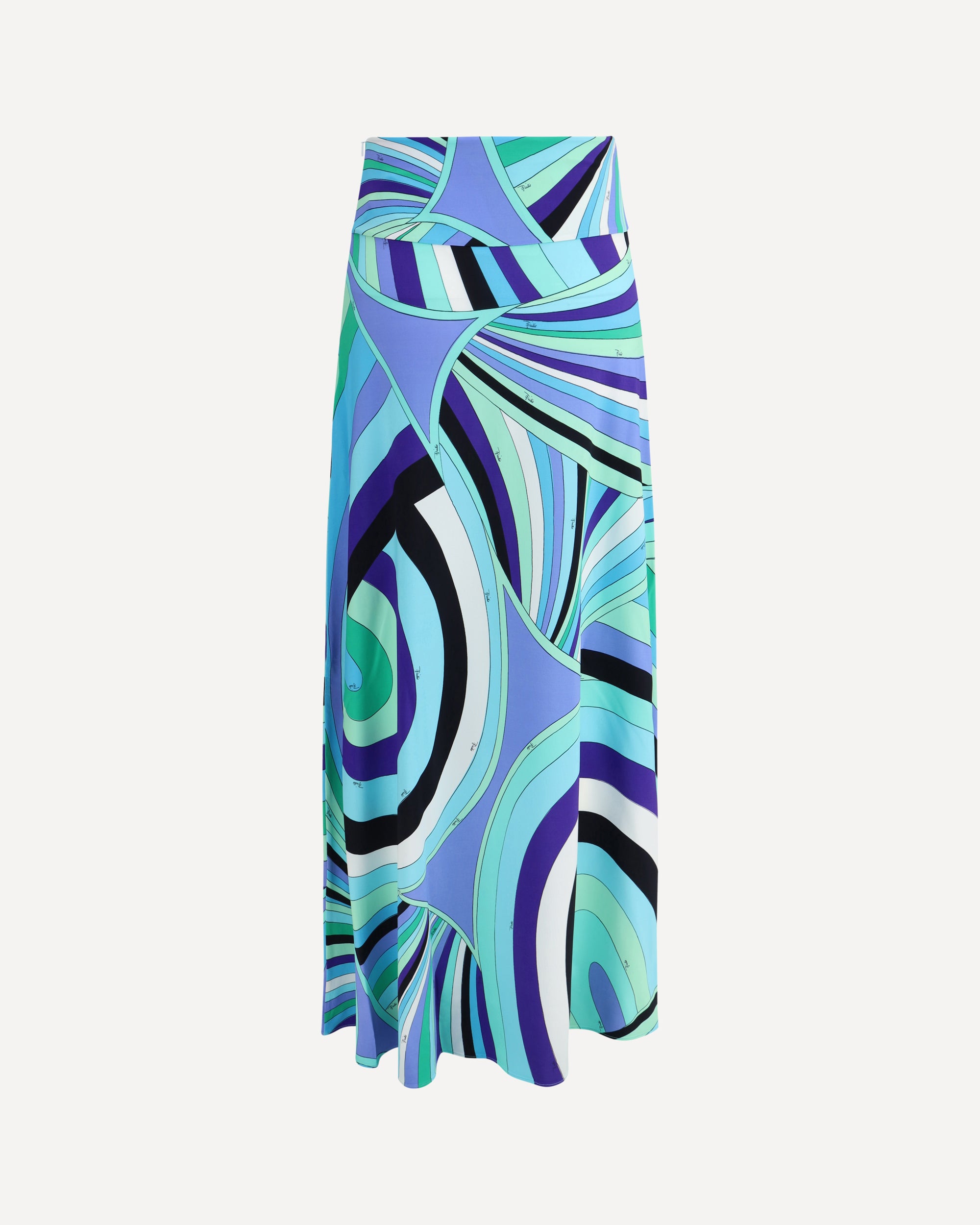 Pucci's Iride print long Skirt by Pucci combines elegance and versatility in a striking garment. The fitted waist enhances the figure, while the side closure with concealed zipper ensures a clean and sophisticated line. The loose fit lightly accompanies movements, enhanced by the iconic Iride print, symbol of the maison's vibrant and unmistakable style.