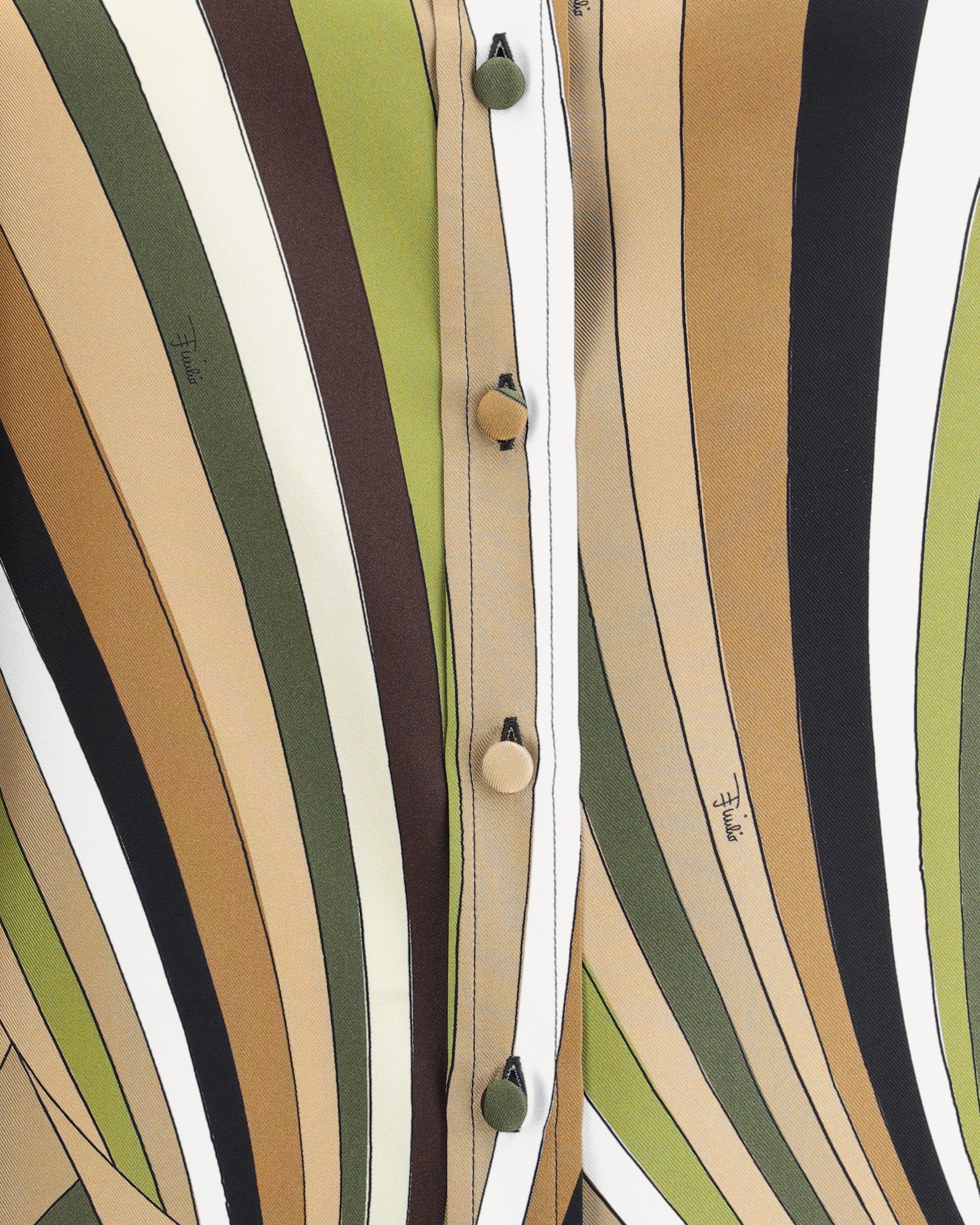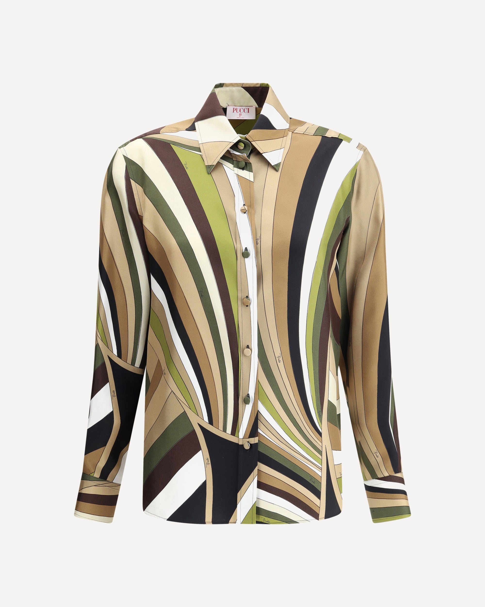 Pucci's Iride print silk Shirt is a masterpiece of elegance and color. With a classic collar and front button closure, it is embellished with the iconic all-over Iride print, which catches the eye with its vibrant and dynamic hues, making each look unique and sophisticated.To offer you a unique garment, Pucci uses an all-over print that makes the item unrepeatable. Therefore, the placement of the print may vary from the one in the photo.