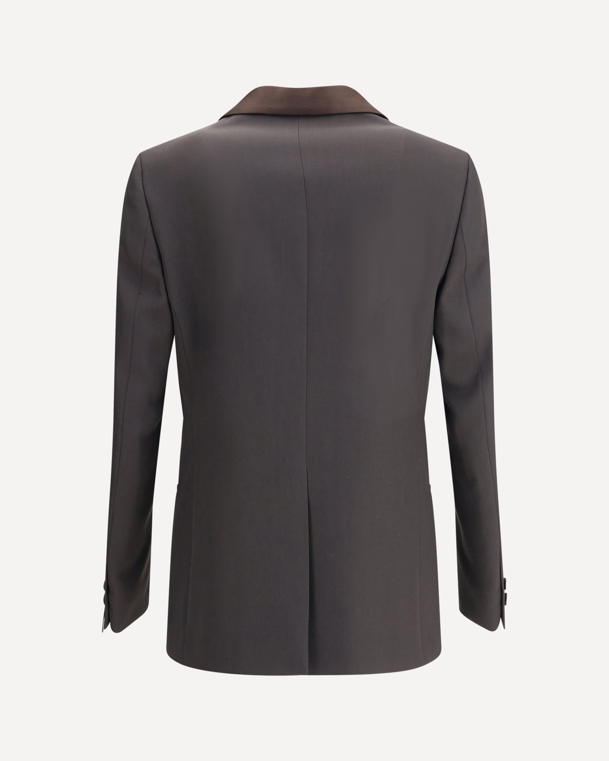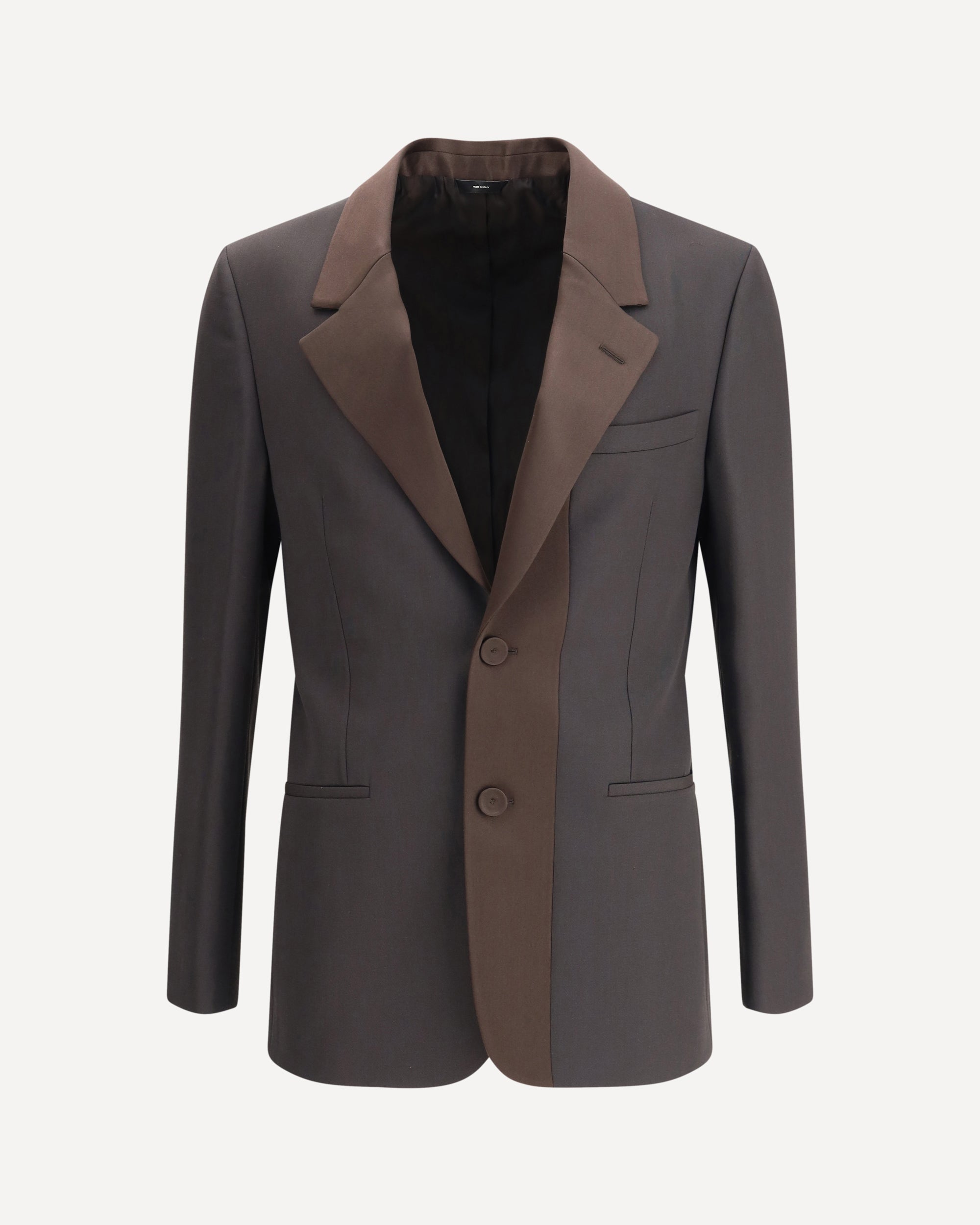 The Single-breasted Wool crêpe Blazer by Fendi reinterprets tailoring codes with understated elegance. The design features a chest pocket, welt side pockets, and a two-button front closure that shapes the silhouette. Finished with tonal silk lapels, this fully lined piece reflects the house’s sophisticated craftsmanship.