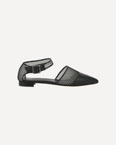 Manolo Blahnik's Jatelahflat Ballerinas are a sophisticated interpretation of elegant and versatile footwear. Made of soft lambskin leather, they are distinguished by their almond toe, which lends a touch of understated elegance. Mesh details add an air of lightness and coolness, while the adjustable buckled ankle strap ensures a secure fit and an added note of sophistication.