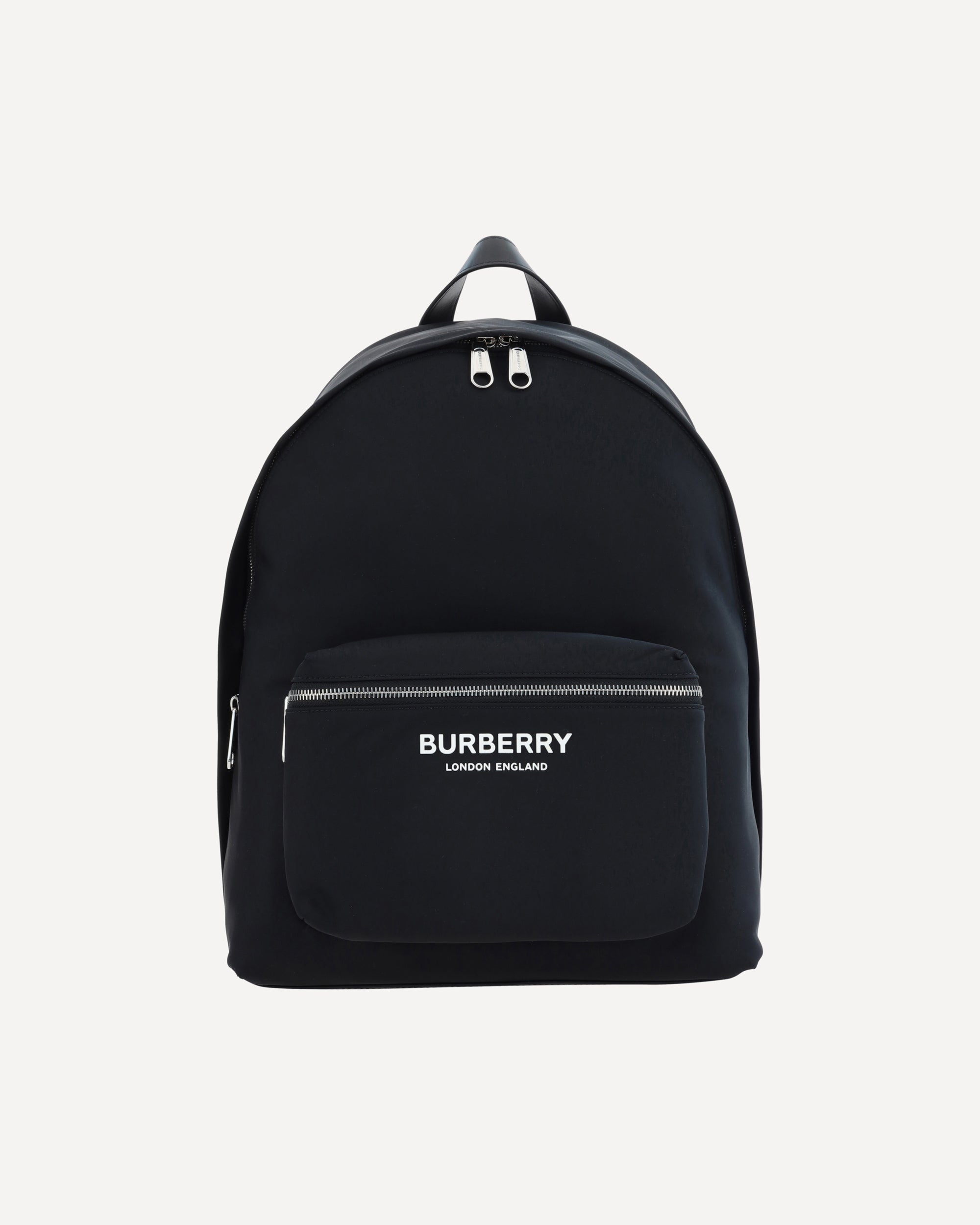 Burberry's Jett Backpack is a practical accessory with a distinctive design. Featuring a comfortable top handle, it has adjustable logoed shoulder straps for a customized fit. The top closure with a double-slider zipper ensures easy access to contents. On the front, a large zippered patch pocket stands out, while the brand's iconic monogram is embossed, lending a touch of elegance. The interior is organized with a slit pocket, ideal for storing small items.