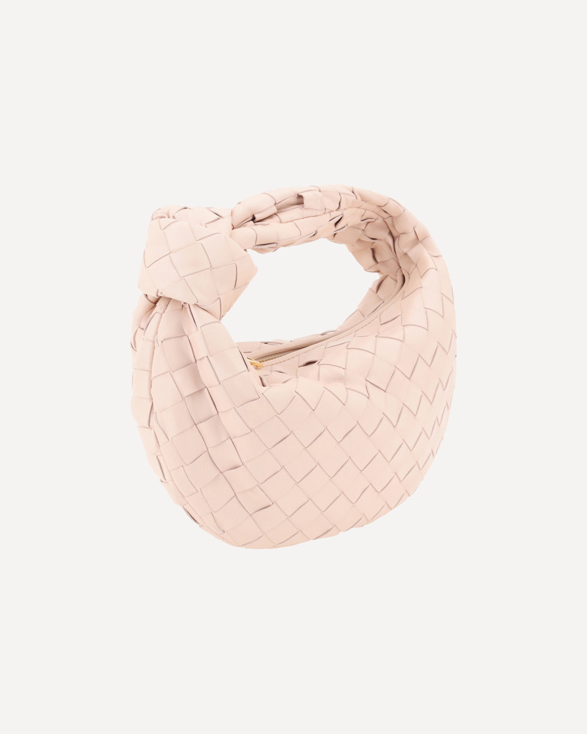 The Mini Jodie Lambskin Handbag by Bottega Veneta is a masterpiece of elegance and craftsmanship. Featuring the brand's iconic intrecciato weave, the design covers the entire surface of the bag, giving it a refined texture and a unique look. The top zip closure ensures practicality and security, while the knotted detail on the handle adds a distinctive and chic touch. Inside, a convenient single compartment allows you to organize your essentials in style. Perfect for those seeking a sophisticated and versatile accessory, the Mini Jodie is the epitome of Bottega Veneta's timeless luxury.