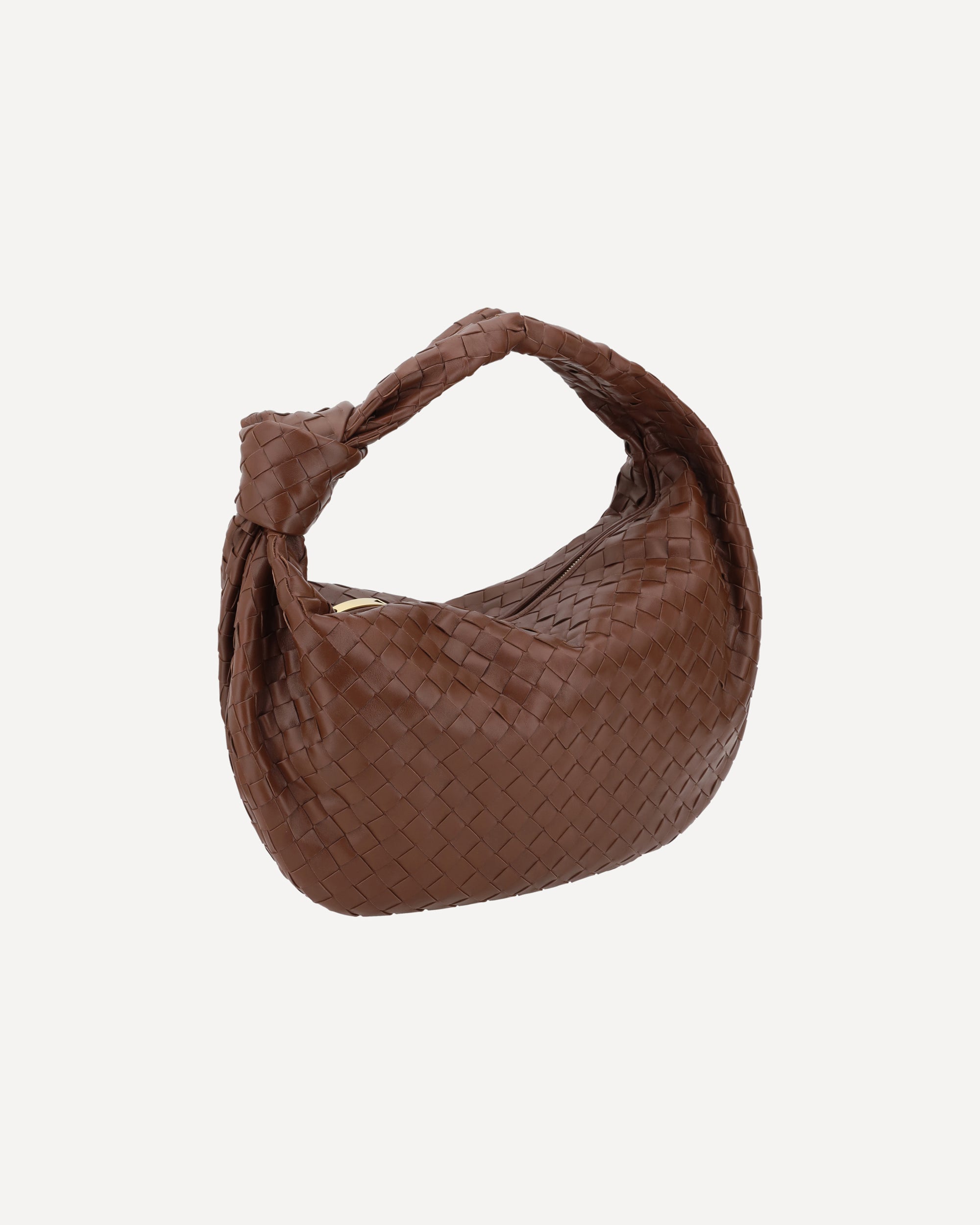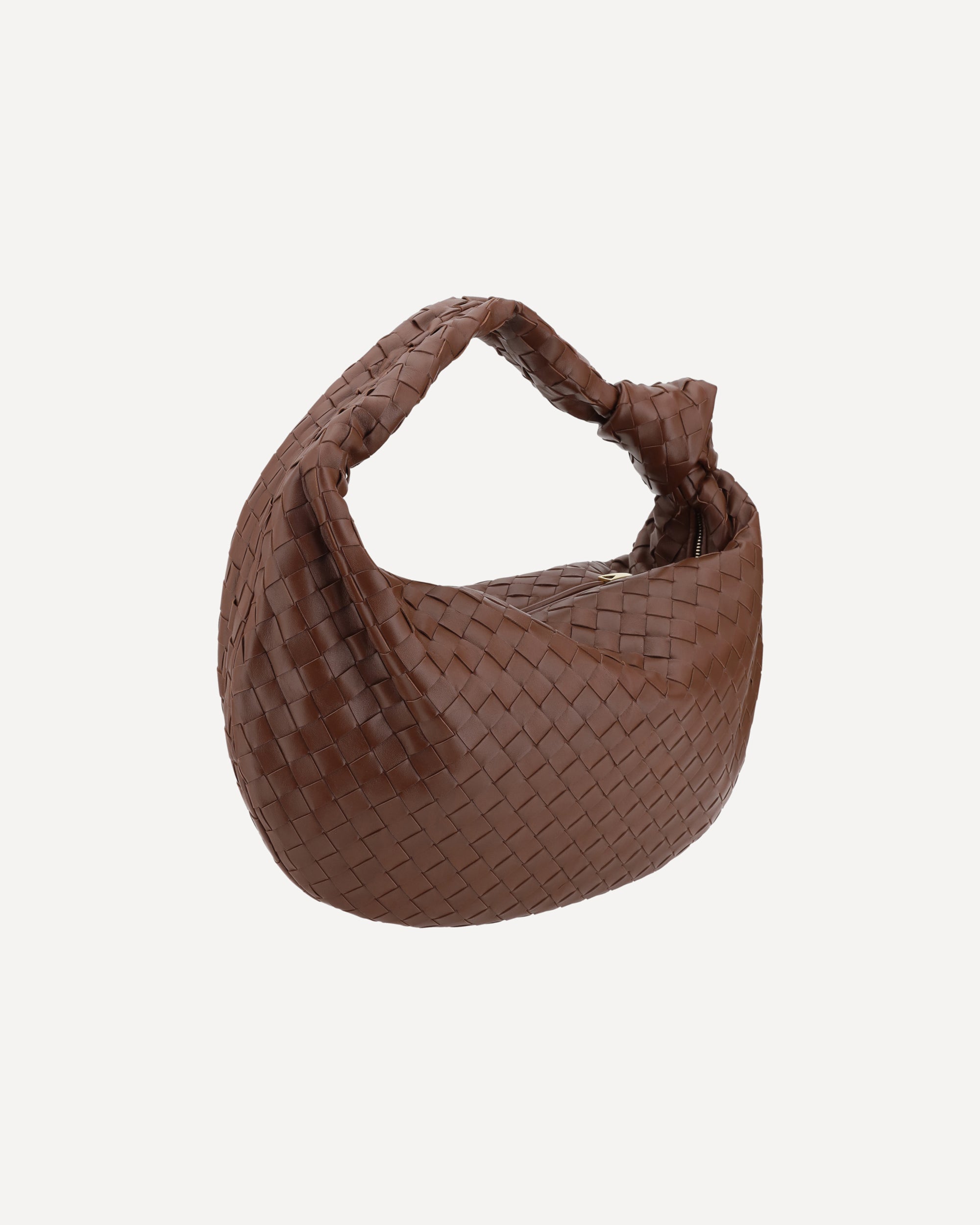 The Jodie Shoulder Bag in lambskin Leather from Bottega Veneta features a top zipper closure for added security. The knot handle adds a distinctive touch, while the brand's iconic woven fabric enhances the design. Inside, it offers single interior compartment, perfect for neat and refined storage.