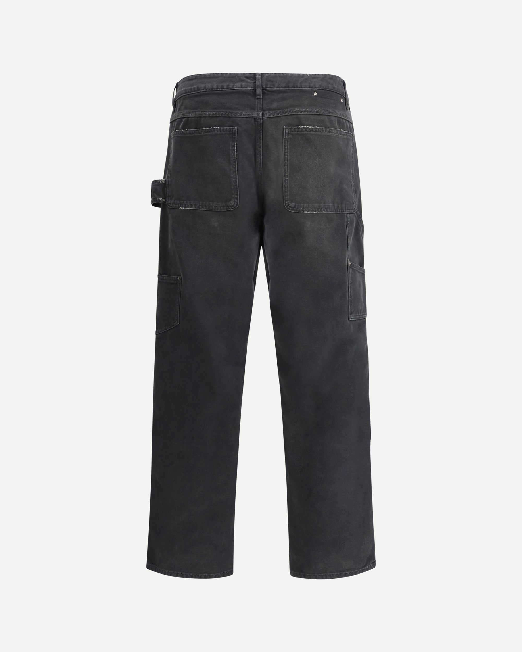 Golden Goose's Journey Jeans are a five-pocket style, featuring a high waist and a front button and zipper closure. They feature a belt loop at the waistband, offering an extra option for style and functionality. The two tone-on-tone appliqué pieces on the front add a distinctive touch, creating an interplay of textures that enhance the minimalist design.