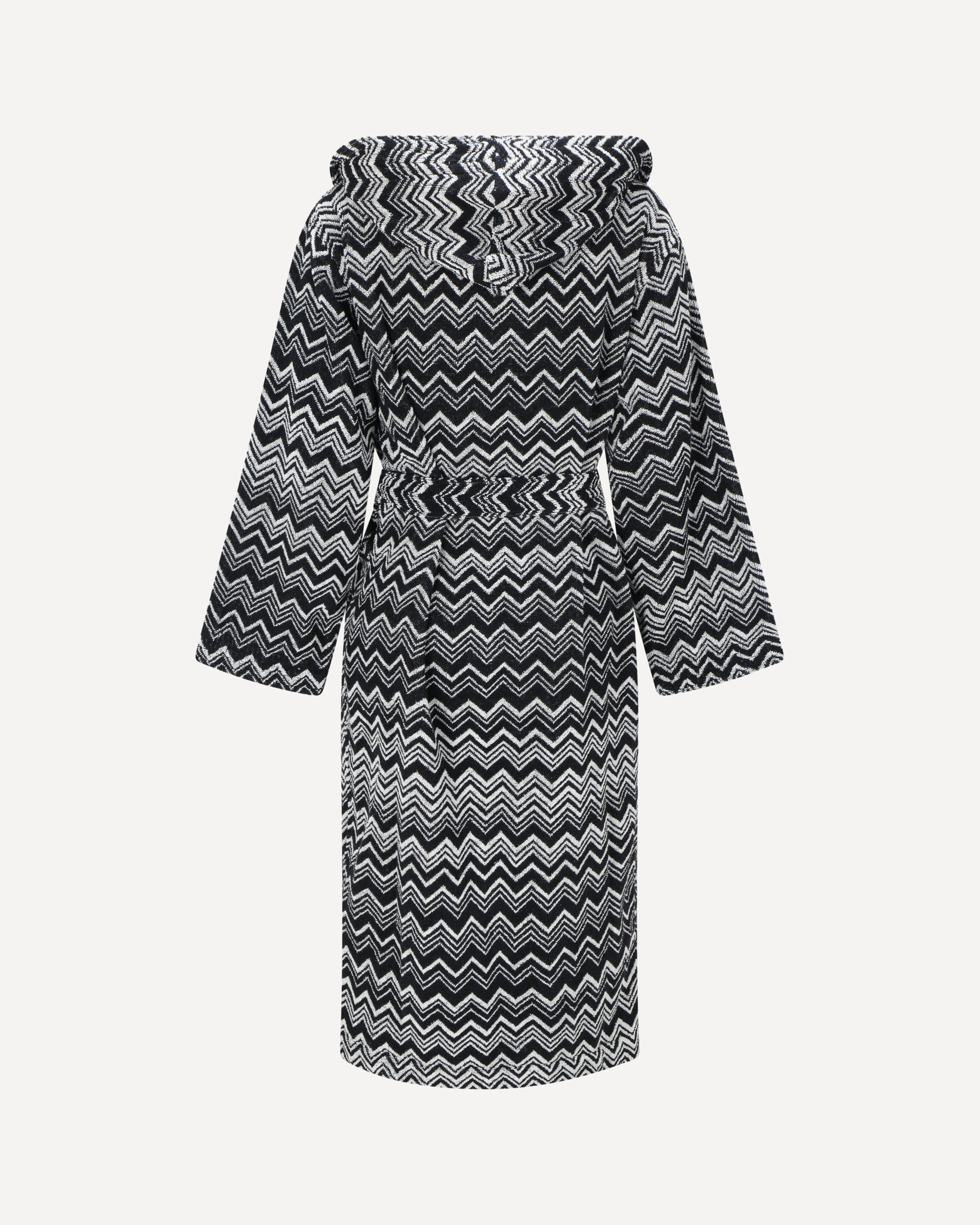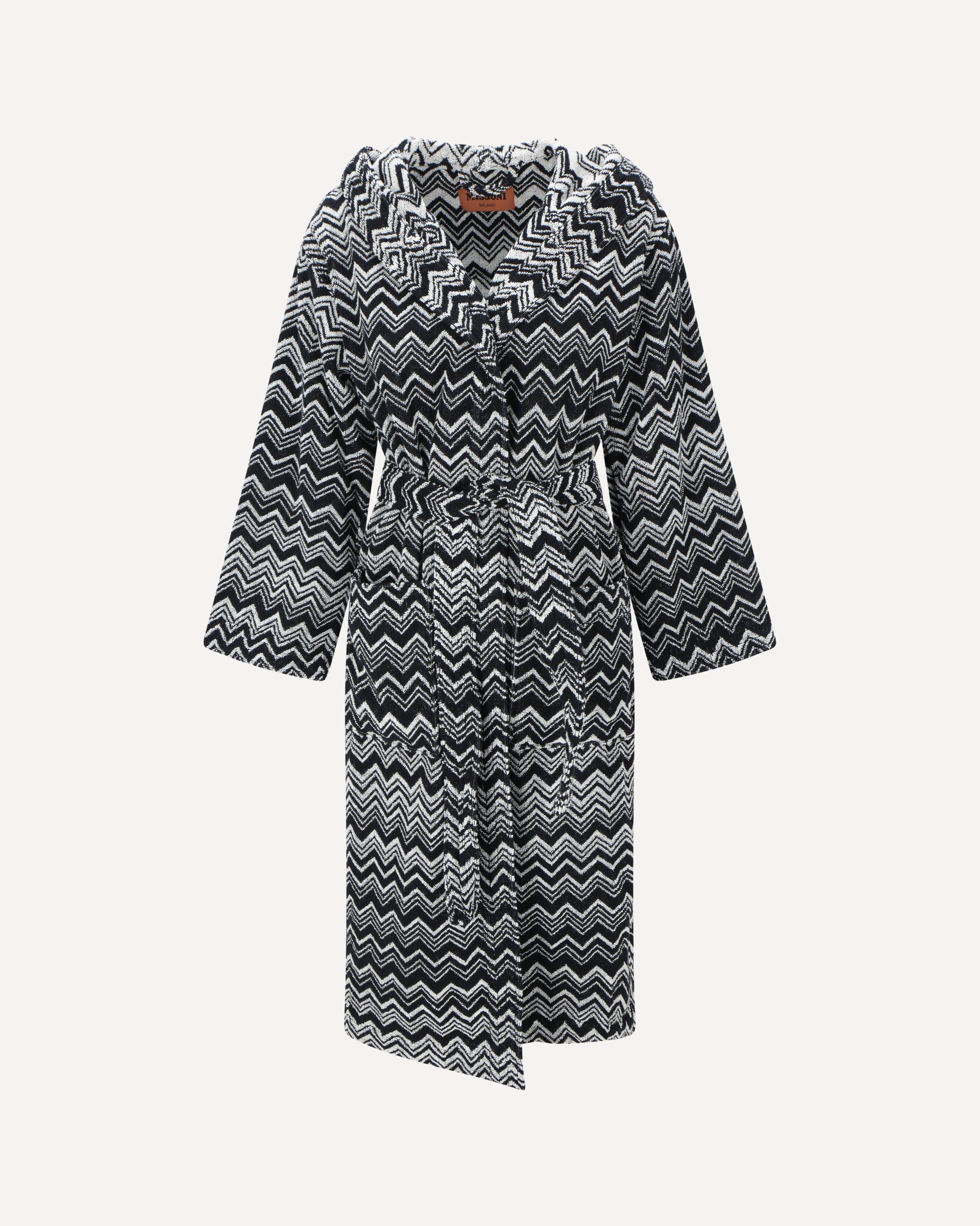 Cotton Keith Bathrobe by Missoni, hooded design, matching waistband, brand's iconic two-tone pattern, two slit patch pockets on front, foot-length design, regular fit.