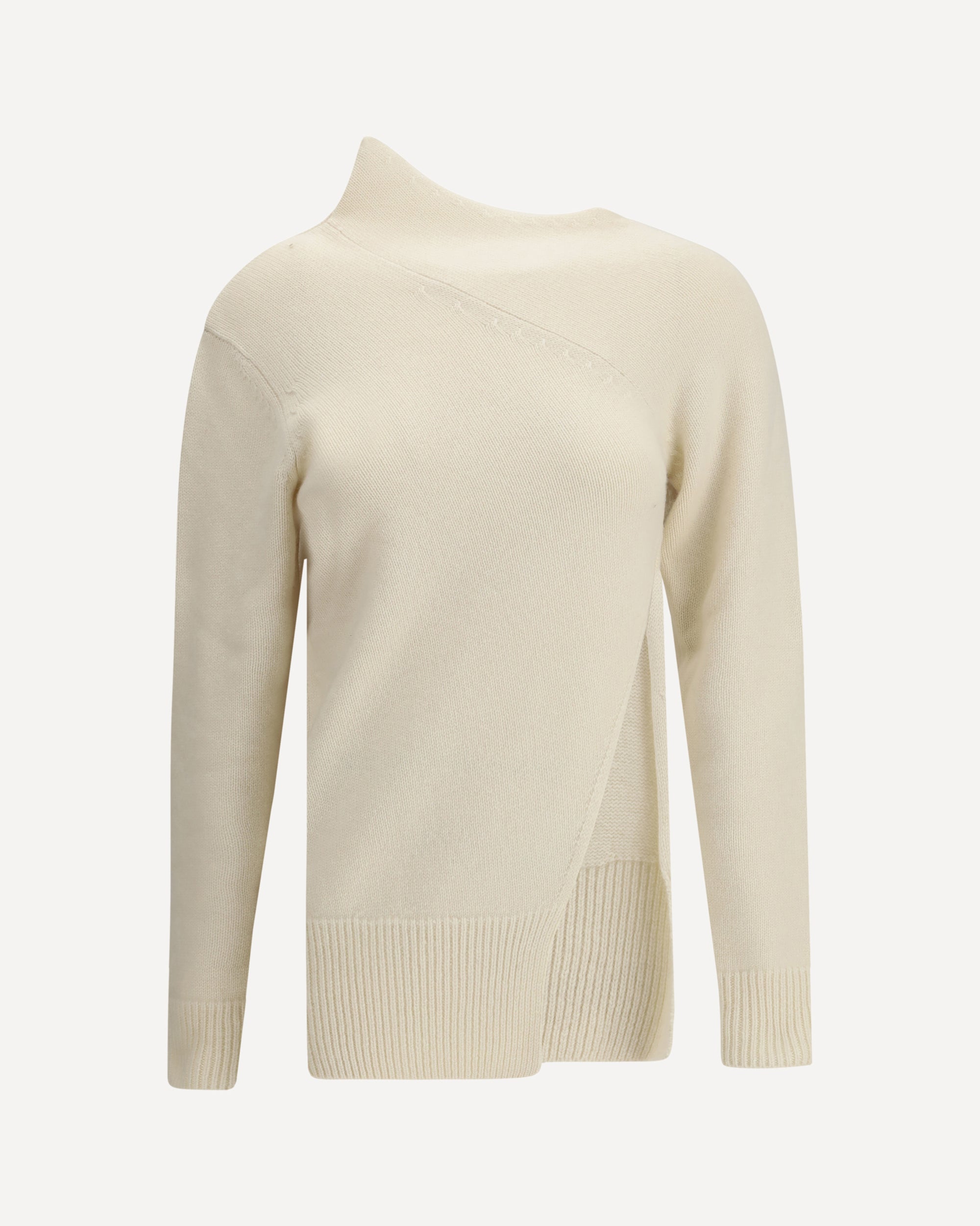 Di Stavnister's wool and cashmere Sweater combines comfort and sophistication in a modern design. Featuring a high collar, ribbed cuffs and hem, it has asymmetrical seams and a side slit that lends movement and originality to the silhouette.