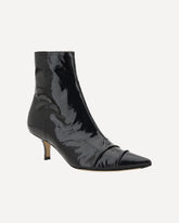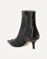 Margiela's Kinkies Ankle Boots in shiny leather feature a zip fastening on the inner side panel, for a comfortable and practical fit. The leather kitten heel offers an elegant and refined touch, while the elongated toe gives a slender and sophisticated look. The branded insole adds a distinctive and high-quality detail. A pair of ankle boots with a modern design, perfect for an elegant and versatile look.