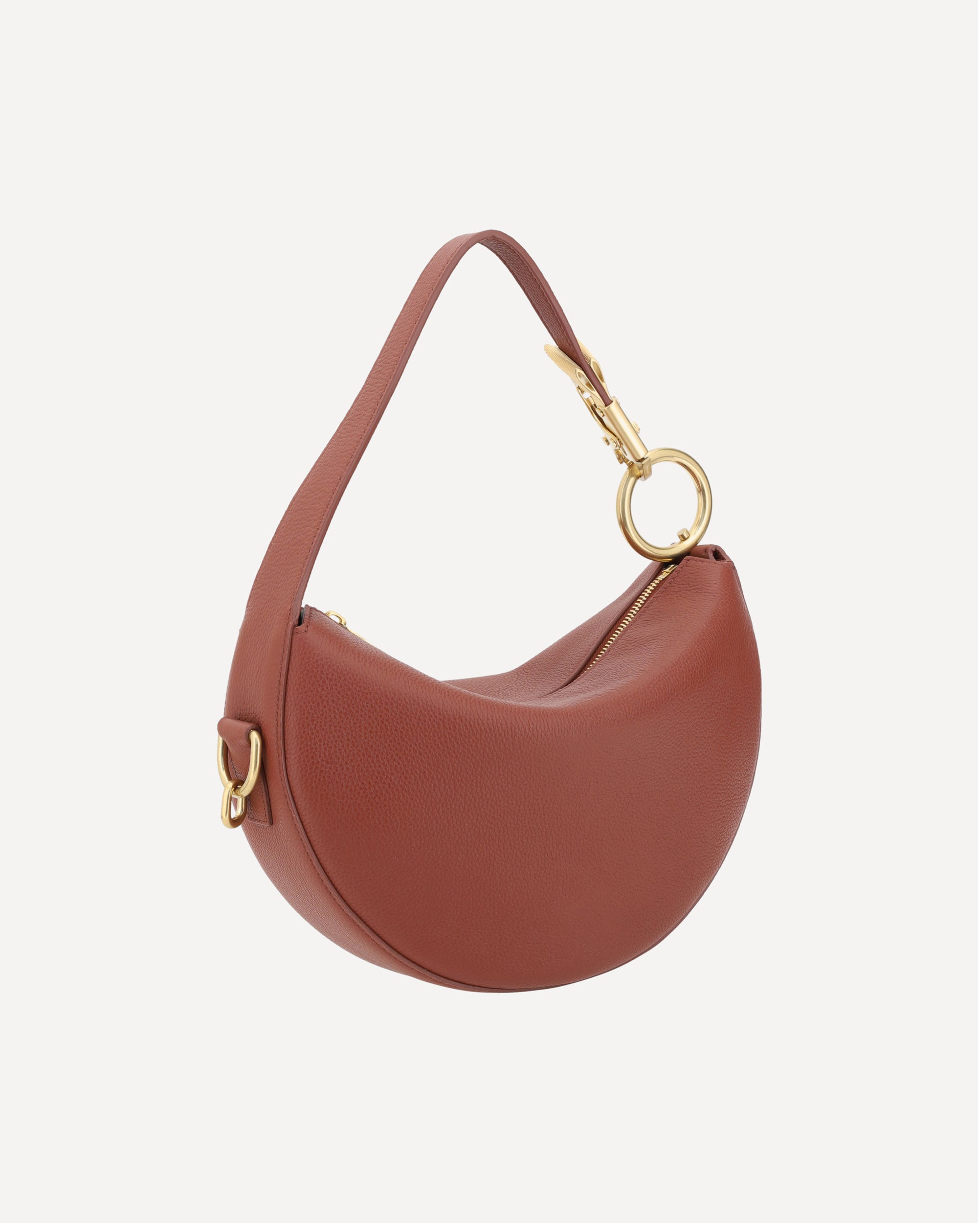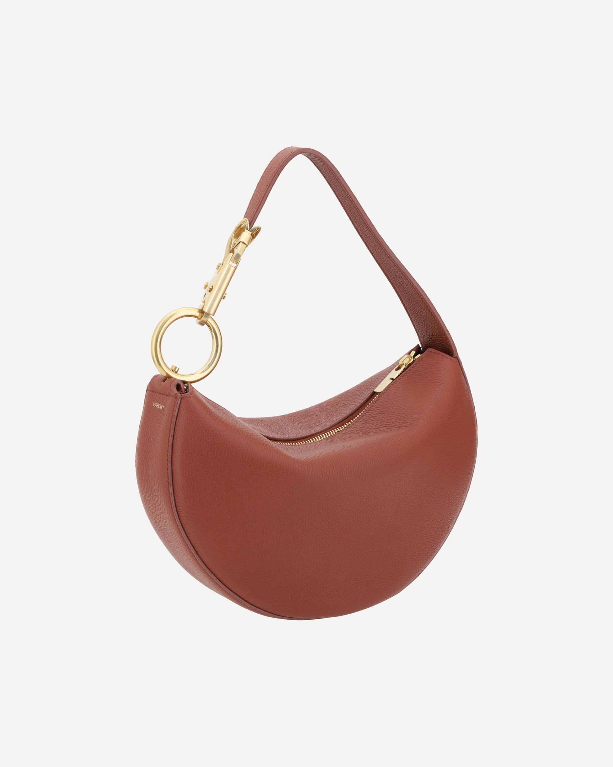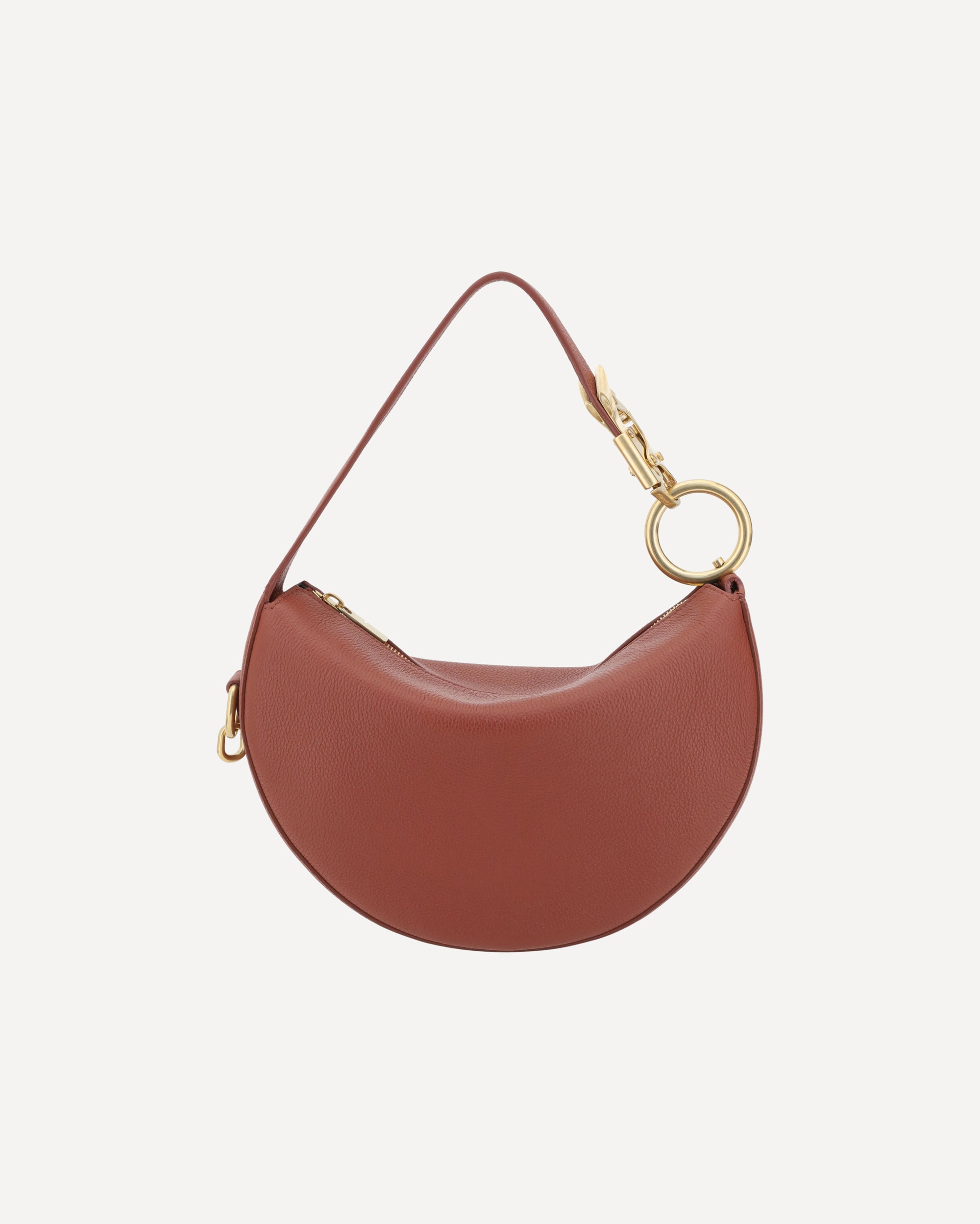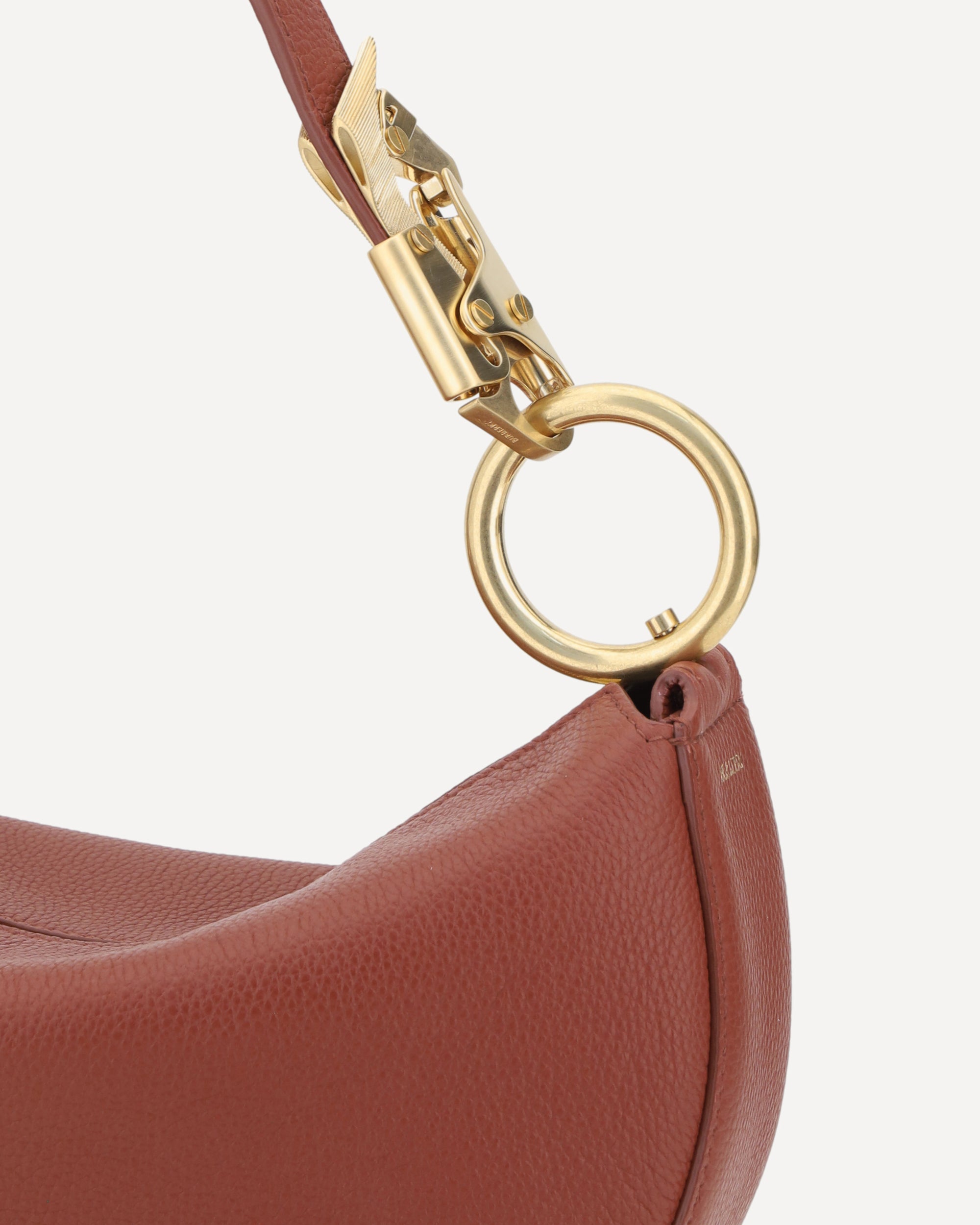 Burberry's Knight Arc Shoulder Bag is a sleek, modern accessory crafted from grained leather for a sophisticated and durable look. The half-moon design offers a fluid, contemporary shape, while the adjustable flat shoulder strap provides comfort and versatility. The zippered top closure ensures security, making this bag ideal for everyday use without sacrificing a touch of understated luxury. A perfect accessory for those seeking practicality and style.