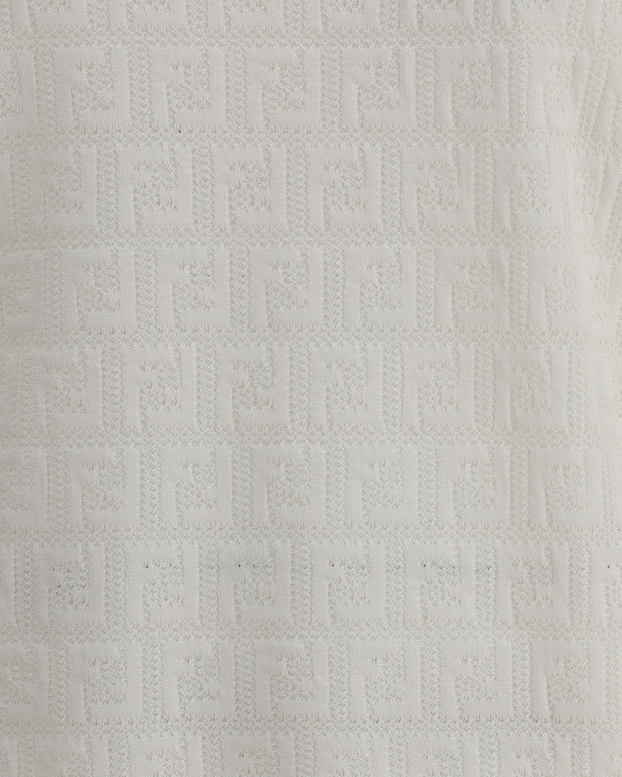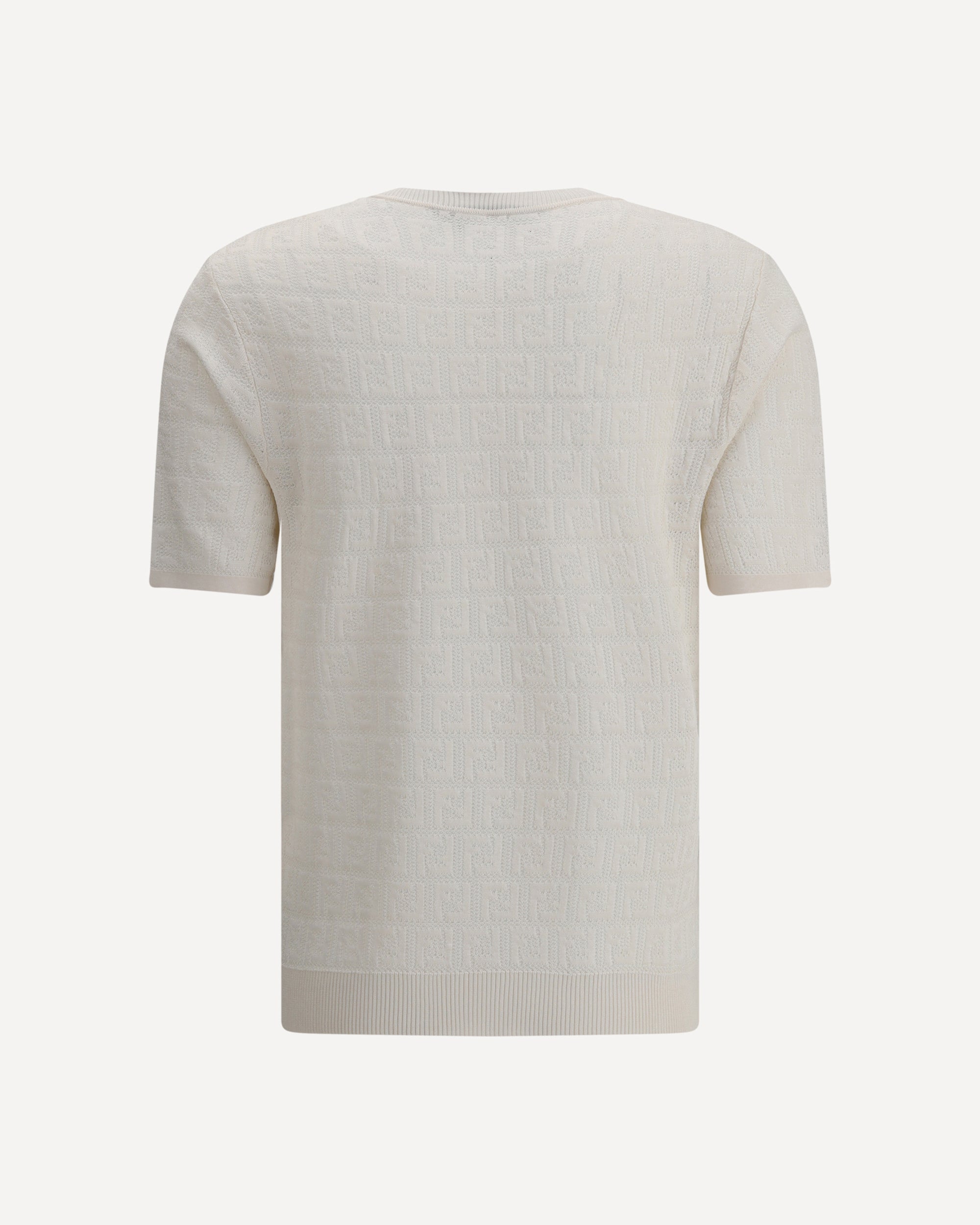 Fendi's cotton T-Shirt represents the perfect meeting of comfort and iconic style. Made from high-quality cotton, it features a ribbed crew neck and hem with side slits, lending versatility to the design. The knit weave with the brand's iconic FF in an elegant tone-on-tone pattern enriches the T-shirt with Fendi's famous signature motif, making it both a sophisticated and contemporary garment perfect for any casual-chic occasion.
