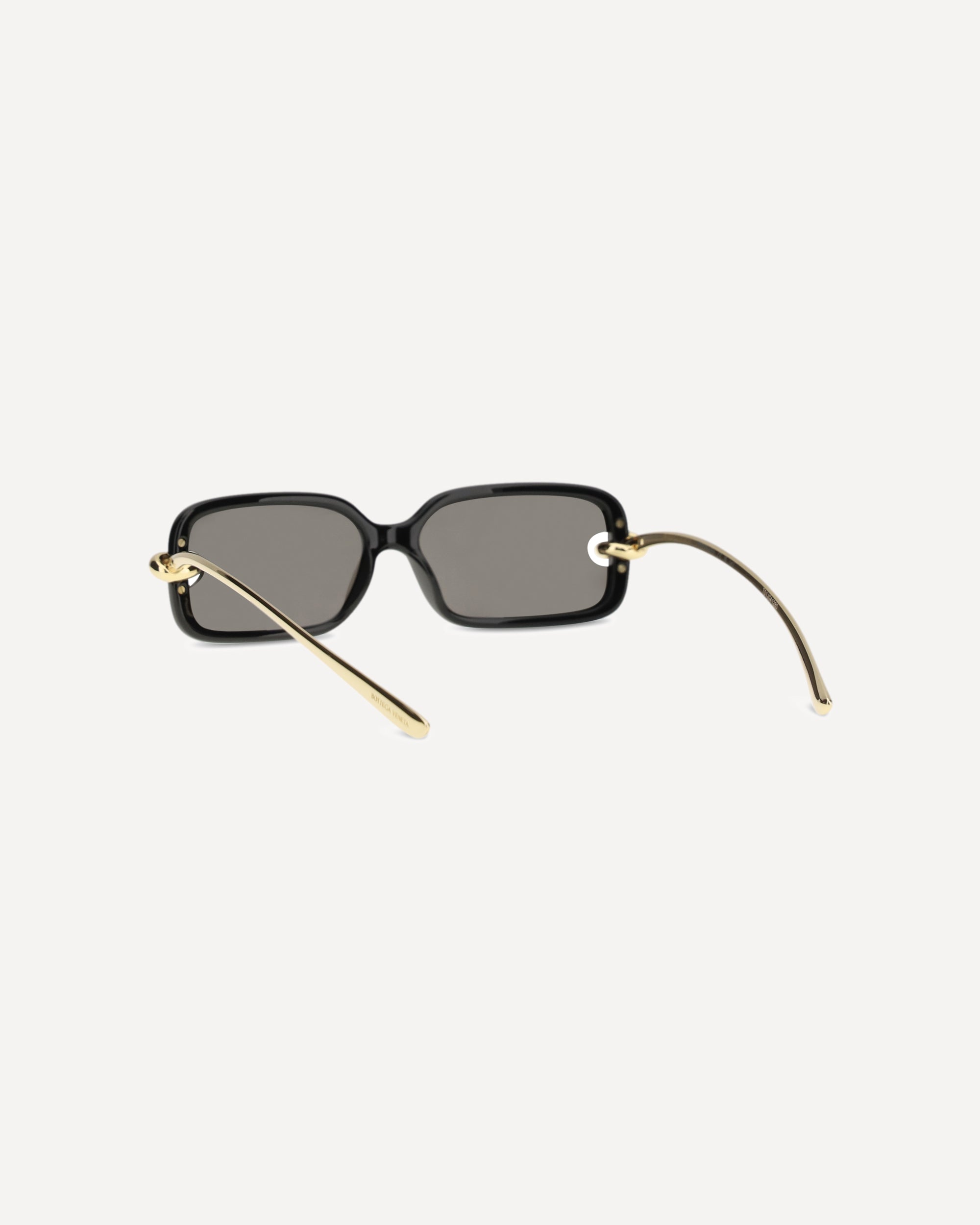 The Knot rectangular Sunglasses by Bottega Veneta are a contemporary accessory made from polyamide and metal. The cut-out lenses highlight the Knot detail on both sides, while the aerodynamic metal temples ensure lightness and style, making these sunglasses perfect for a modern and distinctive look.