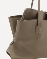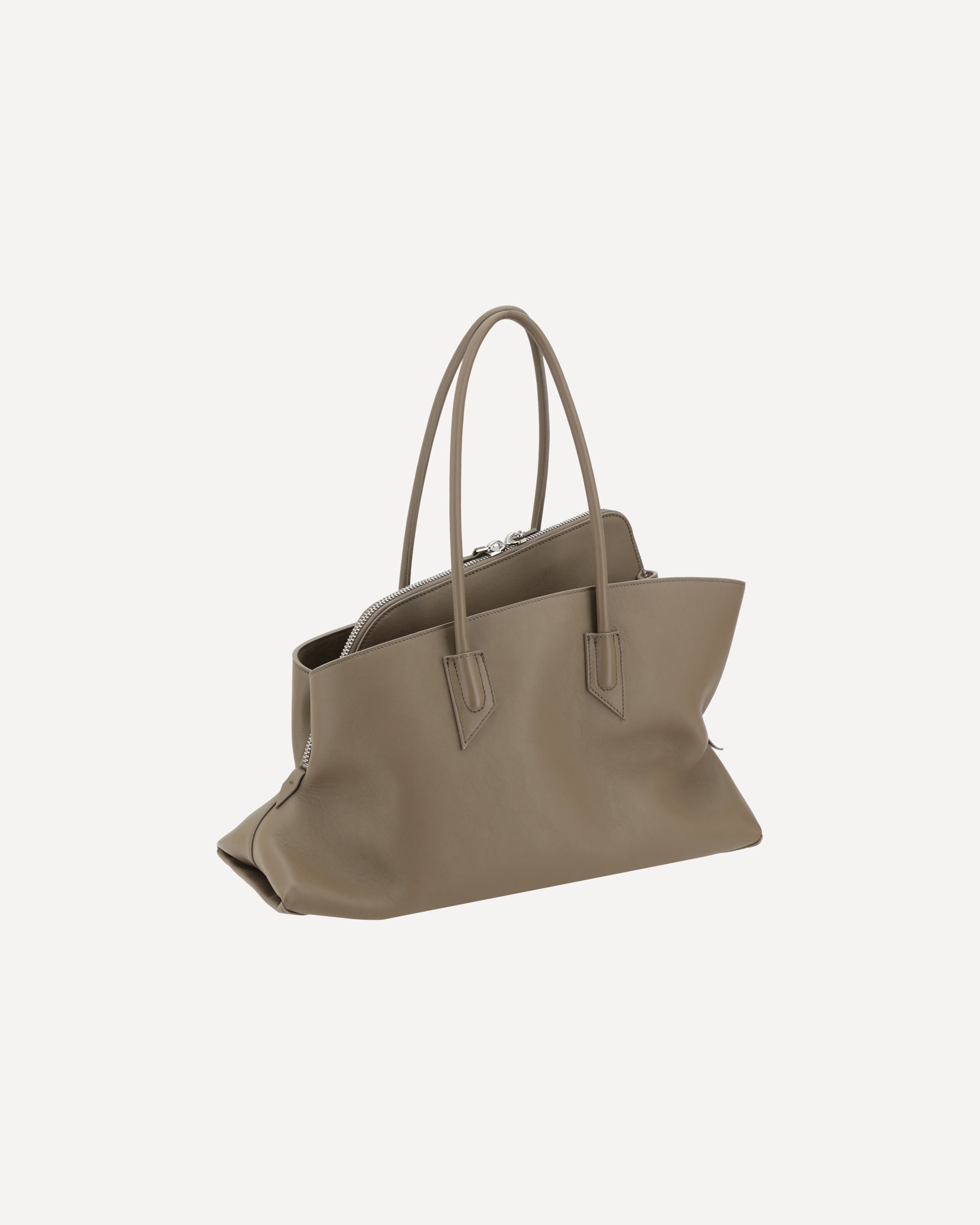 The Attico La Passeggiata leather Shoulder Bag is an elegant and functional accessory, perfect for adding a touch of sophistication to your look. Equipped with two top handles, it offers comfortable and versatile portability. The top zip closure ensures security, while the iconic snap monogram detail on the front adds a distinctive and recognizable touch of the brand. The metal feet at the base protect the bag and enhance its design, while the two welt pockets on the front and back offer extra space to store essentials. A practical piece with a great stylistic impact.