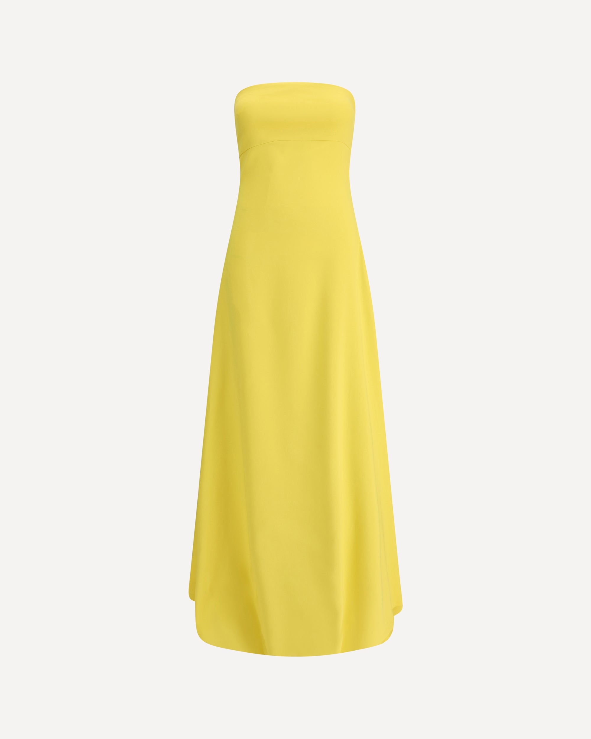 La Robe Bustier long Dress by Jacquemus, with an elegant and sophisticated design. Off-shoulder model features a concealed side zipper closure for a perfect fit. The wide skirt features a small train, while an appliquéd sash detail on the back panel falls to the floor, creating a draped, flowing effect. A perfect garment for special occasions, combining modernity and sophistication.