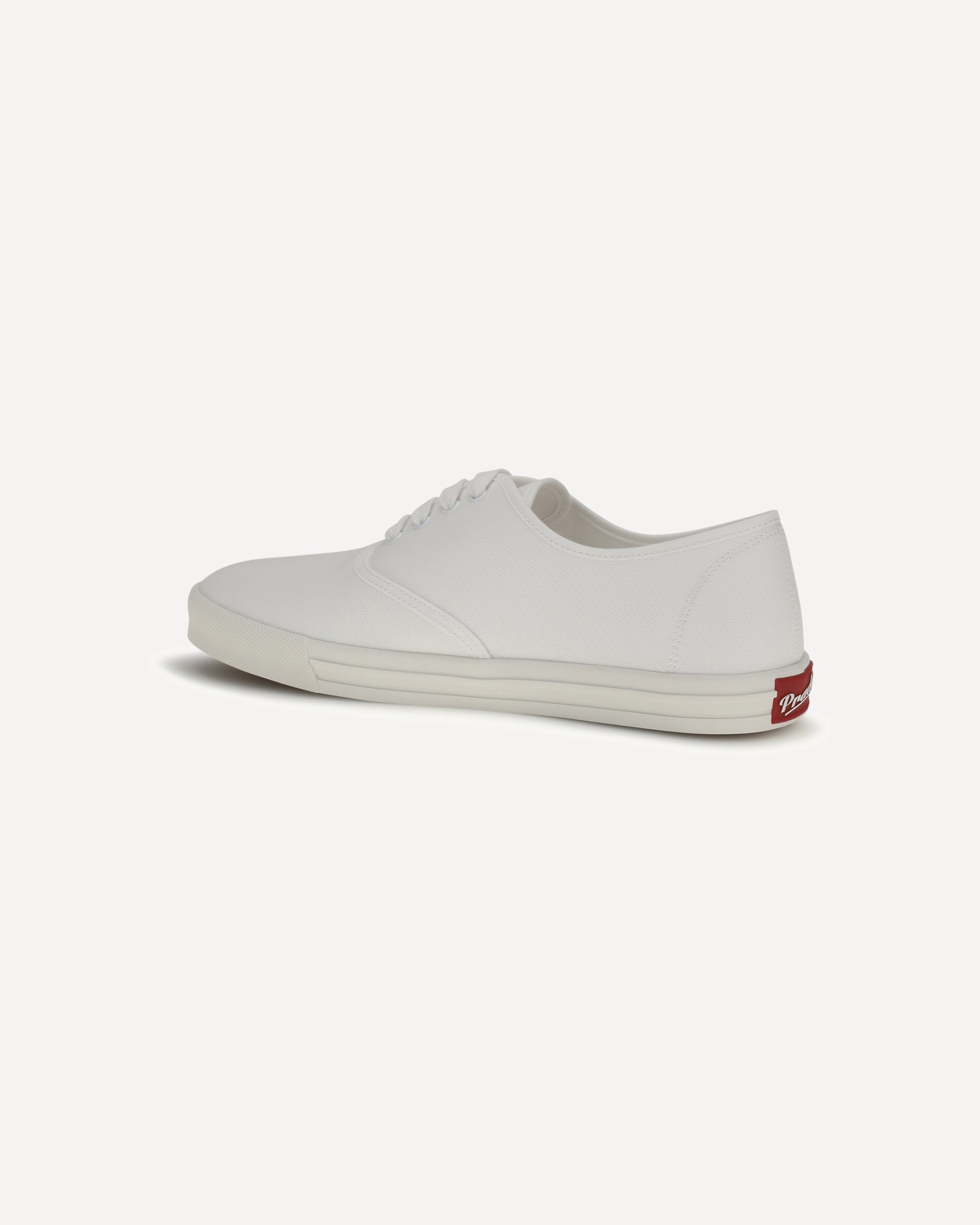 The drill Sneakers by Prada reinterpret a classic sporty look with an urban twist, blending retro influences and contemporary aesthetics. Crafted from lightweight cotton drill with clean lines, the logo on the fabric label showcases tradition and style. Metal loops and cotton laces ensure a comfortable fit. A rubber box sole and non-removable insole complete the model, making it perfect for sophisticated and distinctive casual looks.