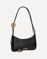 Calfskin Le Bisou Perle Shoulder Bag by Jacquemus, double adjustable flat handle, leather strap with adjustable buckle with large round jewels, top zipper closure, three-dimensional plaque with iconic brand monogram applied in contrast on front, inside welt pocket.