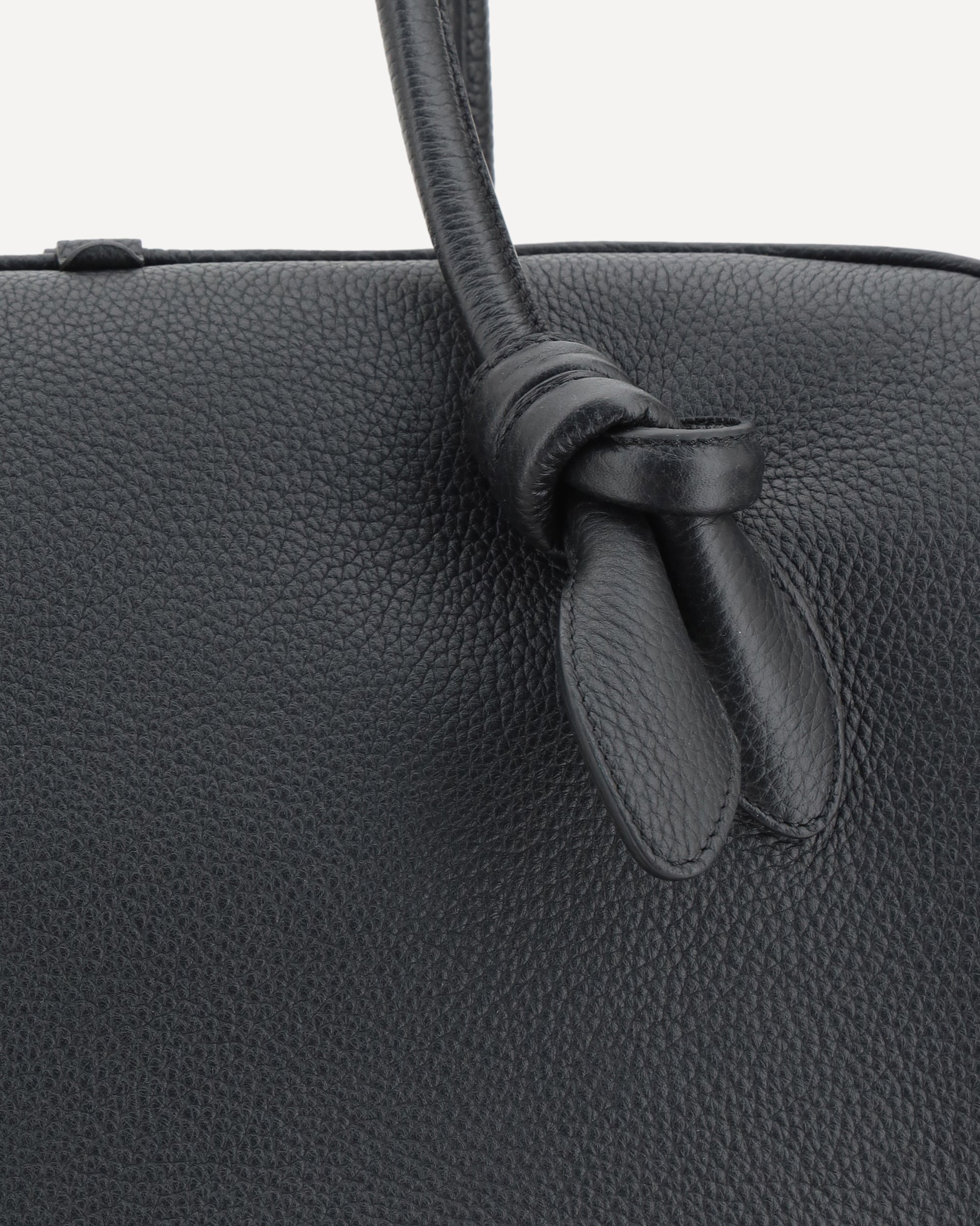 The Jacquemus Le Grand Turismo leather Shoulder Bag is an elegant and functional accessory, featuring a refined design in hammered leather that gives it a unique and sophisticated texture. The two tubular top handles add a touch of practicality and comfort for carrying, while the hidden magnetic button and top zip closure ensures security and ease of use. Inside, a single compartment offers enough space for essentials, maintaining a clean and uncluttered look. The bag, with its minimalist and contemporary style, is perfect for completing a casual-chic or more structured outfit, adding a touch of discreet and functional luxury.