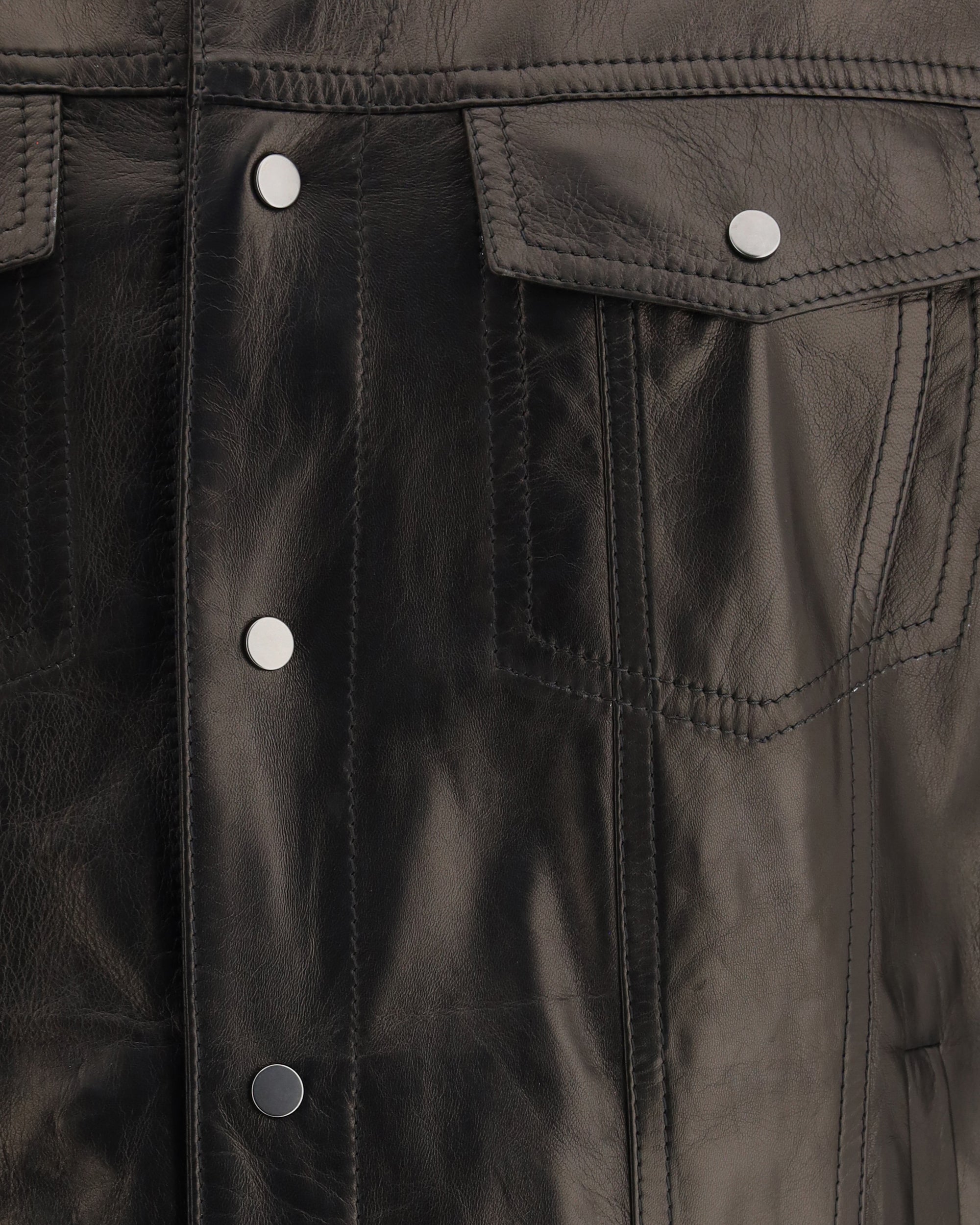 Salvatore Santoro's leather Jacket is a garment with a refined and timeless design. Made of high-quality leather, it features a classic collar that enhances its elegance. The front button closure adds a traditional touch, while the two side welt pockets and two flap patch pockets on the front combine aesthetics and functionality. Perfect for a sophisticated and versatile look, it combines craftsmanship and contemporary style.