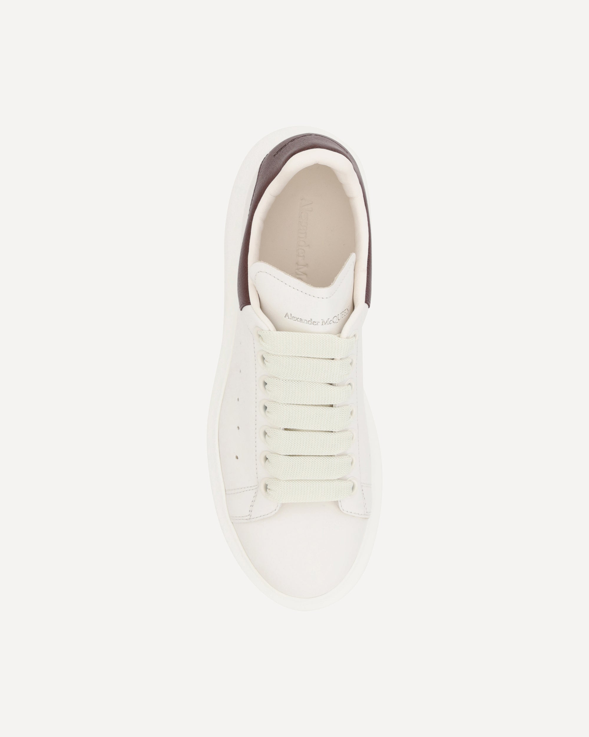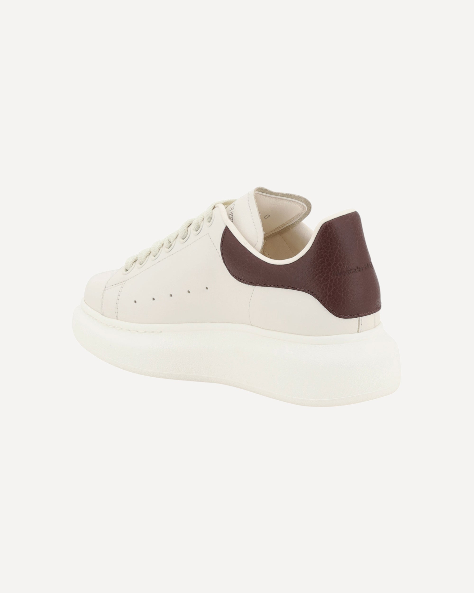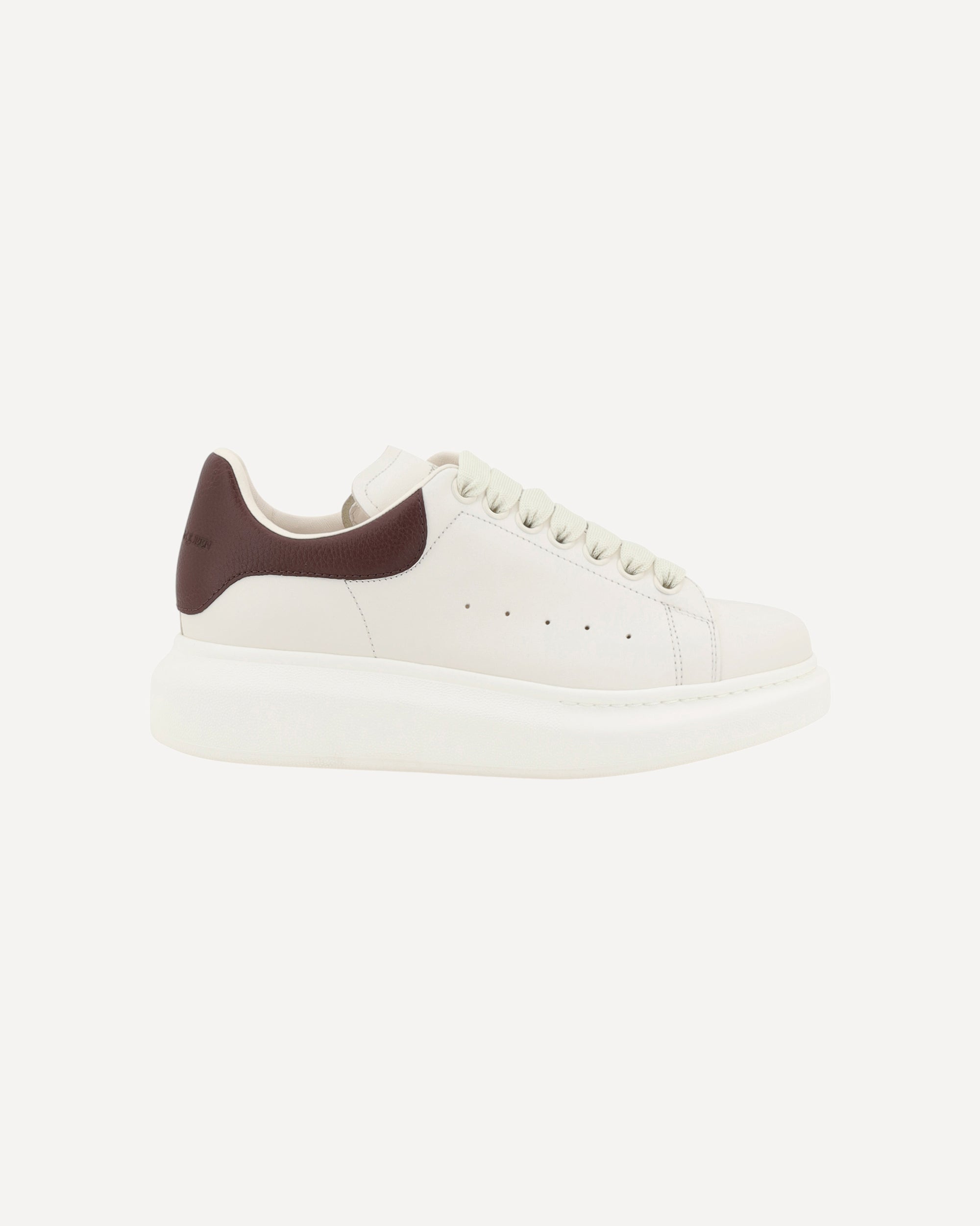 Alexander McQueen's leather Sneakers feature a clean, sophisticated design with a lace-up front closure for a secure, customized fit. The round toe offers comfort and style, while the front tab is embellished with the brand's signature, press-stamped logo for a distinctive touch. A contrasting logoed label on the heel adds an additional detail of recognition. The brand's iconic platform sole lends height and a modern effect, making these sneakers ideal for those seeking a casual-chic look with a touch of luxury.