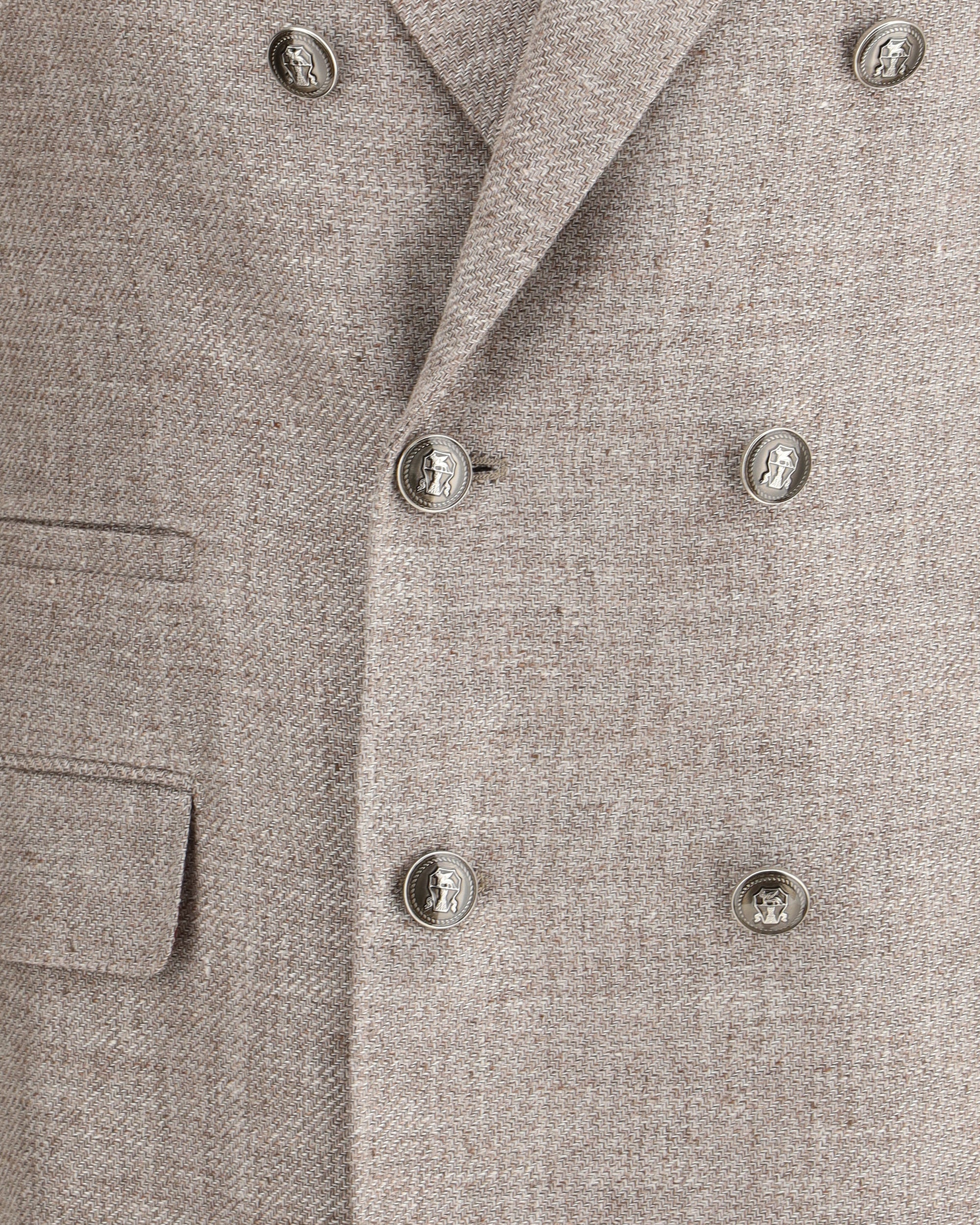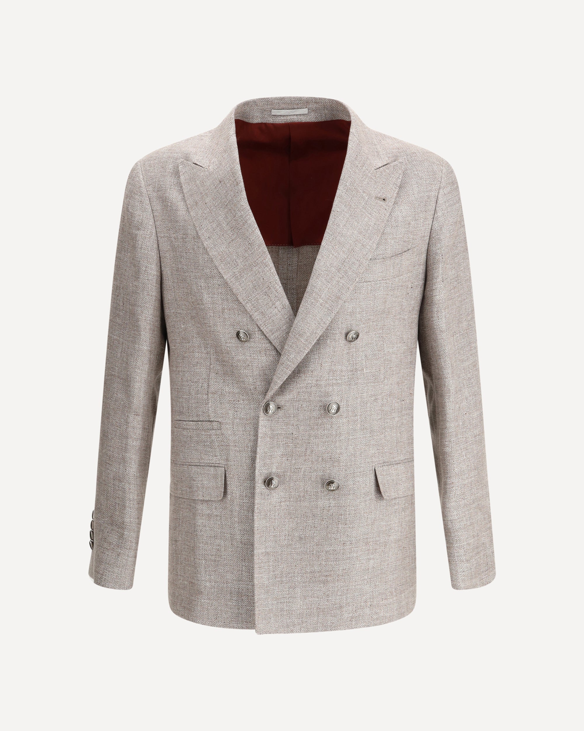 Brunello Cucinelli's linen Blazer expresses the brand's light and sophisticated elegance. Featuring a peaked lapel and a double-breasted closure with embossed buttons, this blazer offers an impeccably refined silhouette. It features two flap welt pockets on the front, a slit pocket and two slits on the back for a comfortable and modern fit. A perfect garment for formal and refined looks that enhance the appeal of linen.