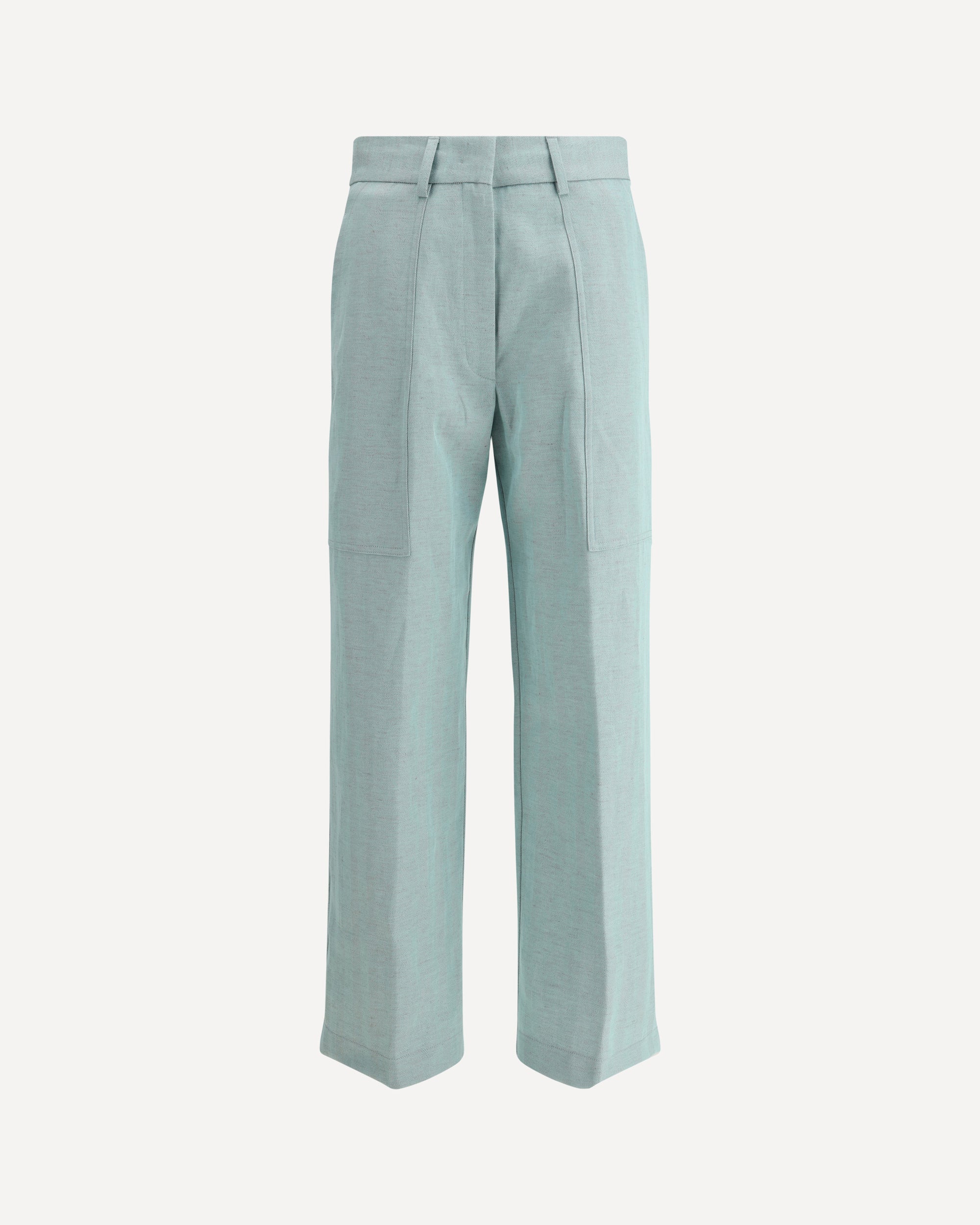 The Forte_Forte linen cargo Pants combine practicality and sophistication. The zip and hook closure offers an elegant touch, while the waistband with belt loops allows for a customizable fit. Front cargo pockets add functionality, while the straight leg gives a clean, modern line. Perfect for a summer look, these pants are versatile and easy to pair with a variety of styles.