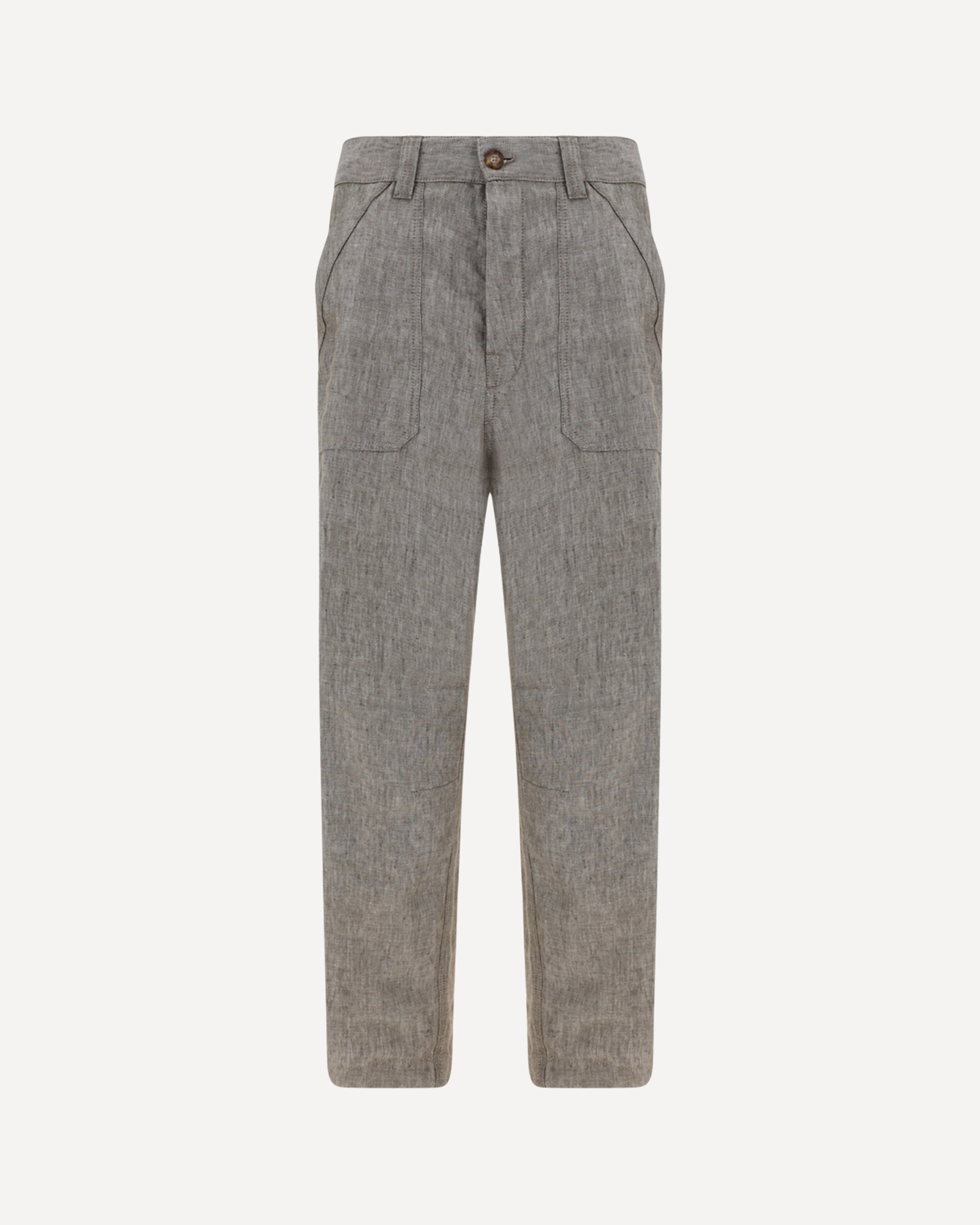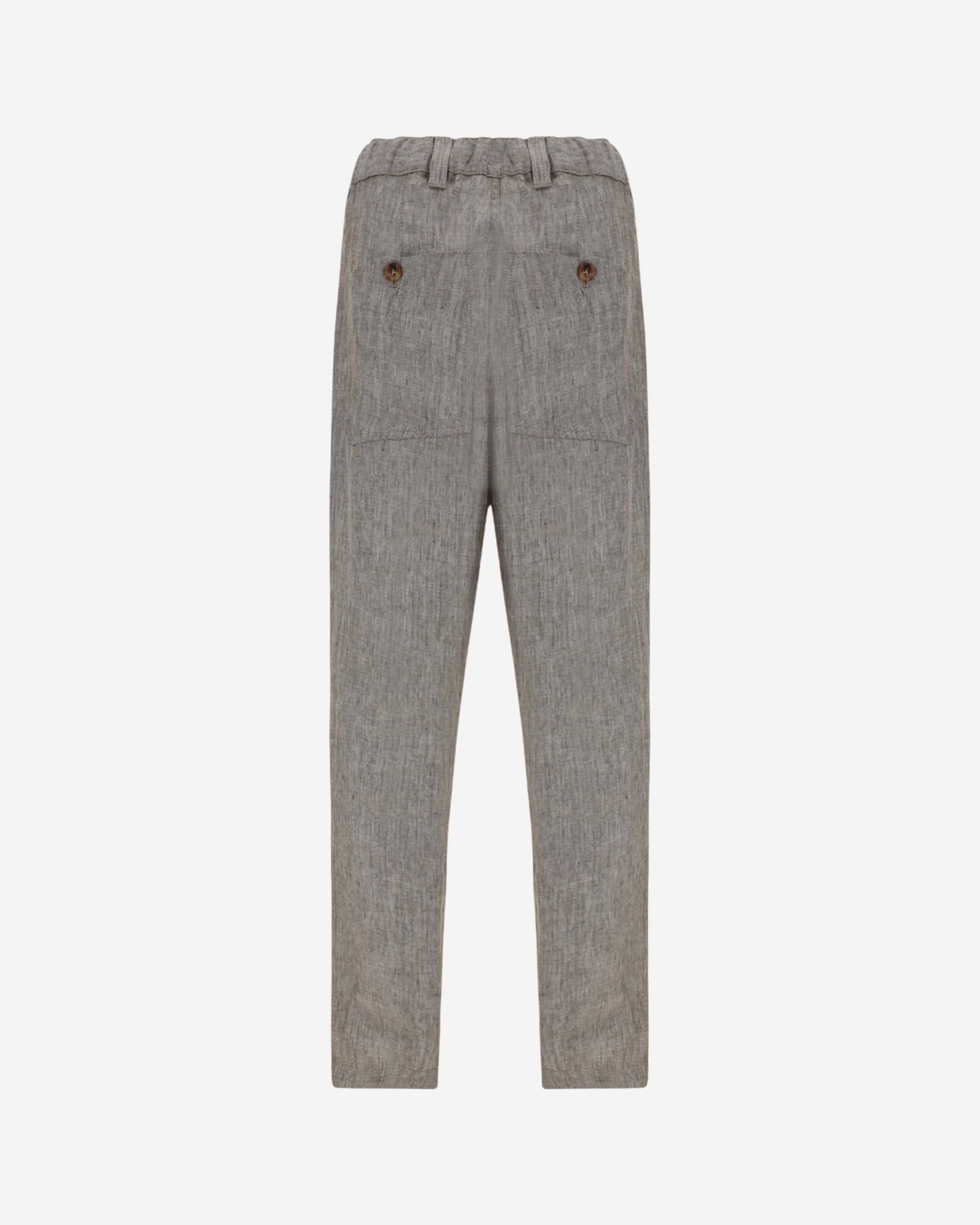 Brunello Cucinelli's linen Pants express relaxed elegance and sartorial attention to detail. Crafted in a refined mélange pattern, they feature an elasticized waistband with a front zipper and hook-and-eye closure for discreet comfort. Two welt pockets on the front and two slit pockets on the back complete the design. With a regular fit, these pants are ideal for a sophisticated yet casual look.