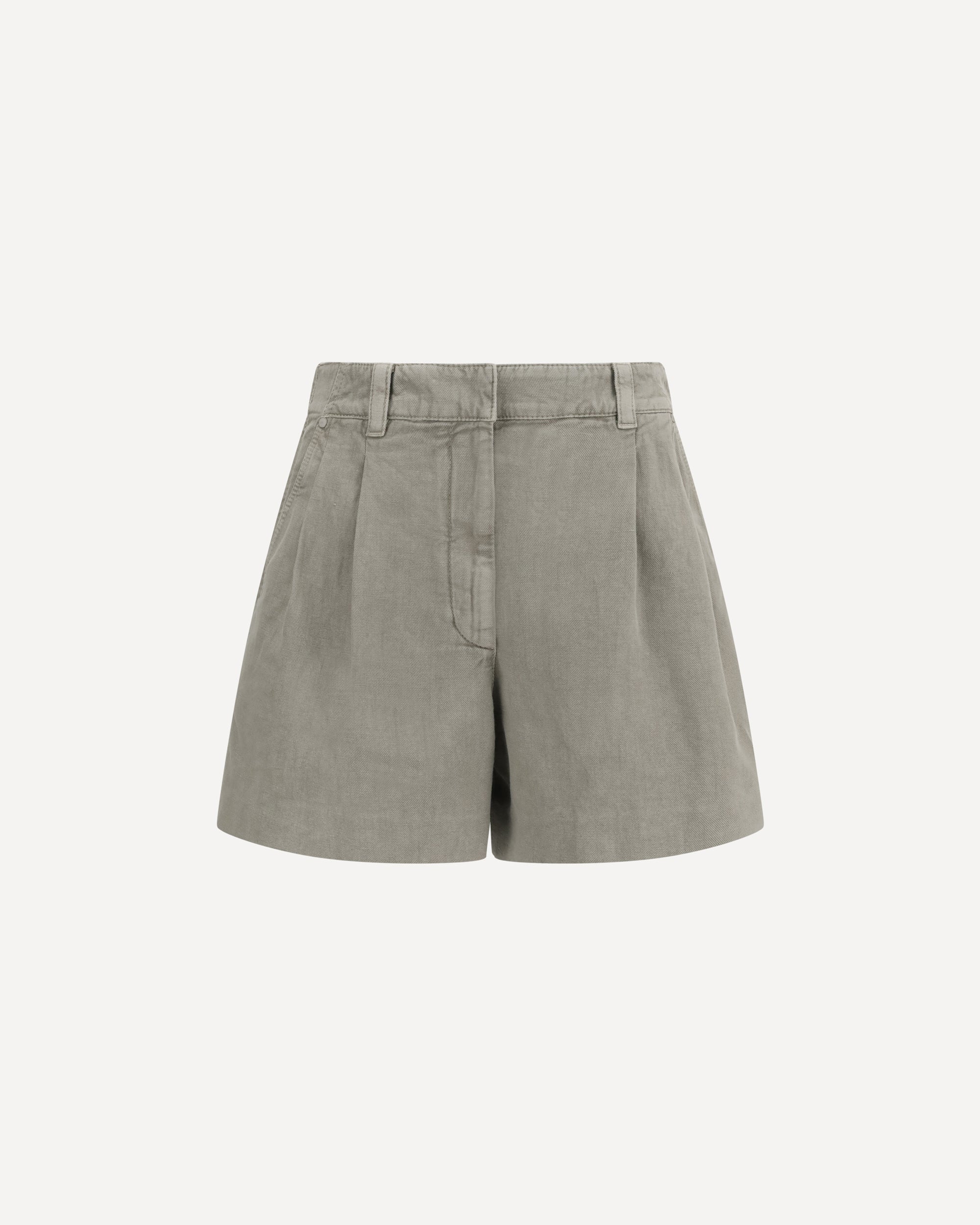 Brunello Cucinelli's Linen Shorts combine freshness and sophistication with a practical, thoughtful design. They feature a front zipper-and-hook closure, belt loops at the waist and an elasticized waistband for added comfort. Two side welt pockets and patch pockets at the back add functionality to a garment ideal for casual elegance in the warmer months.