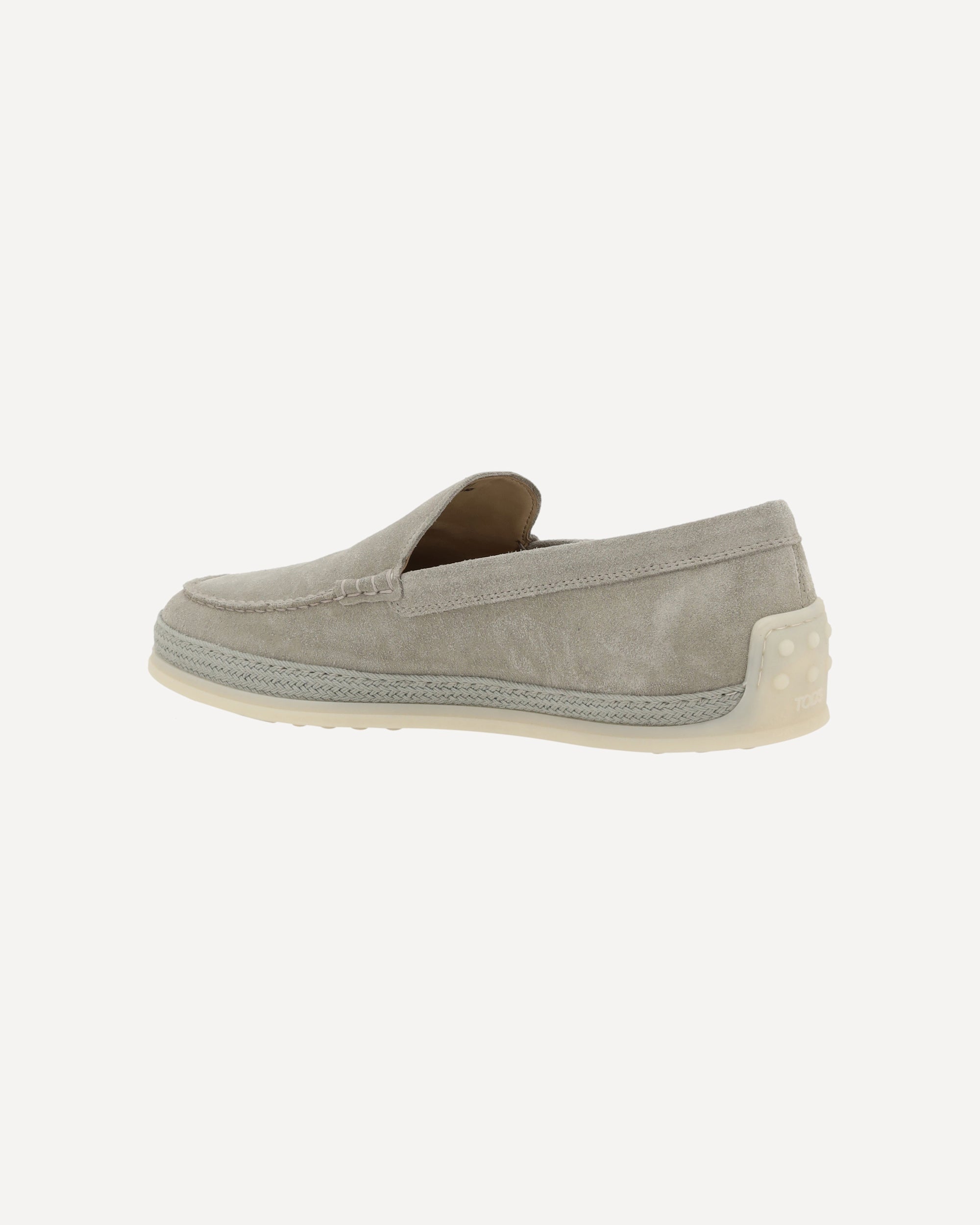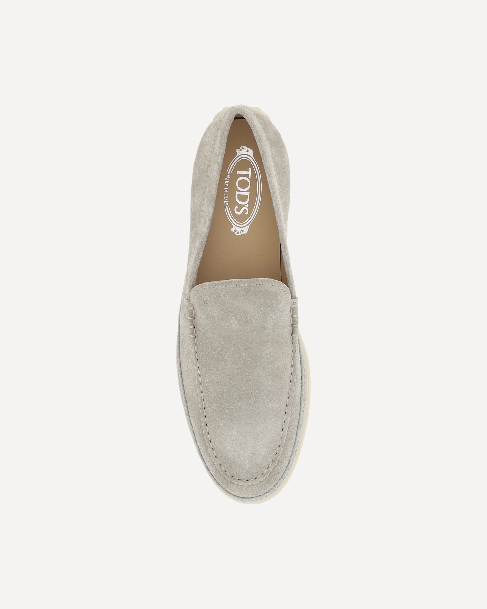 Tod's suede Loafers feature a round toe and flat sole for comfort and style. The branded insole adds a distinctive touch, complementing the elegance of the design. A versatile and refined accessory for any occasion.