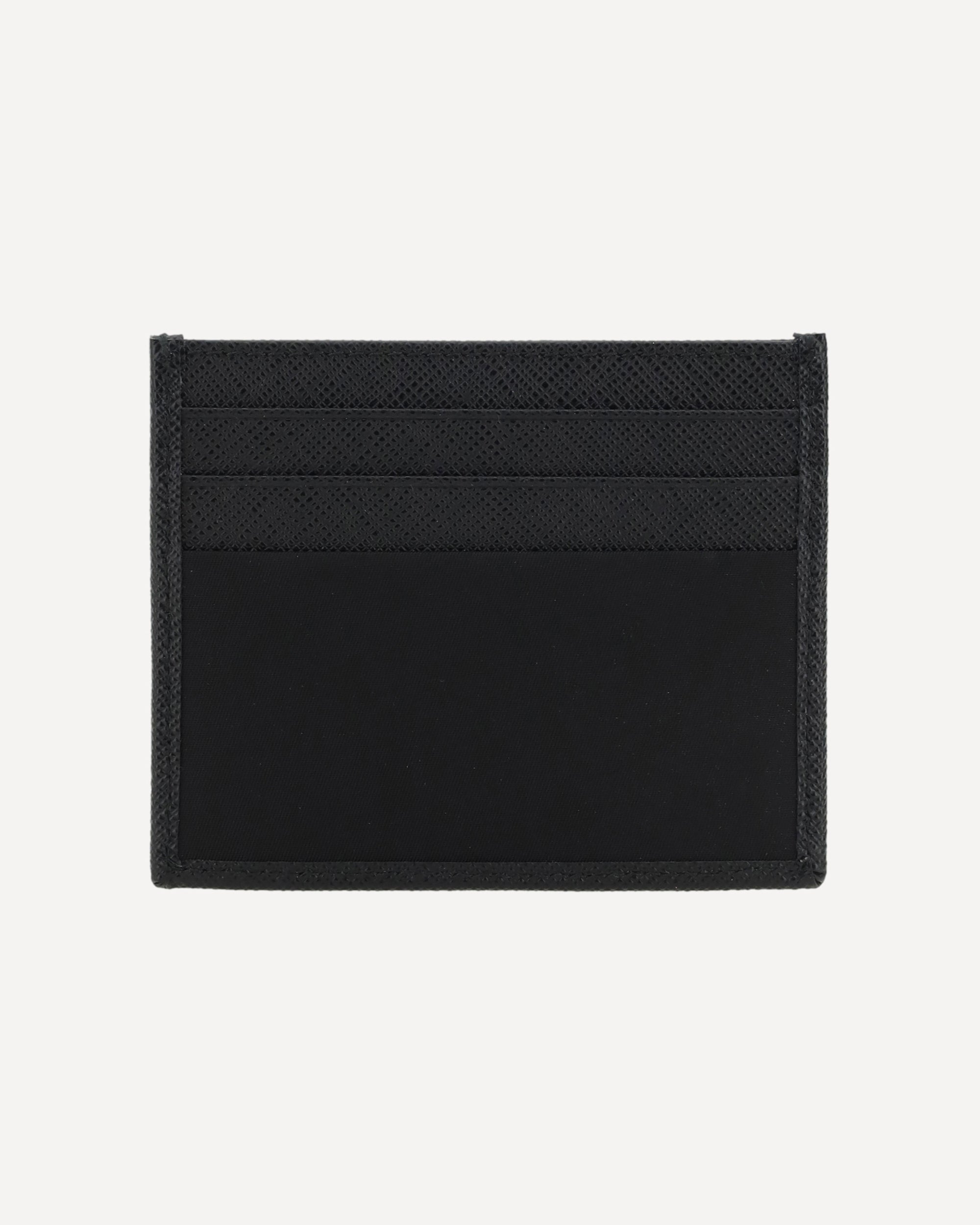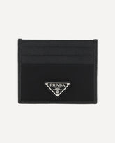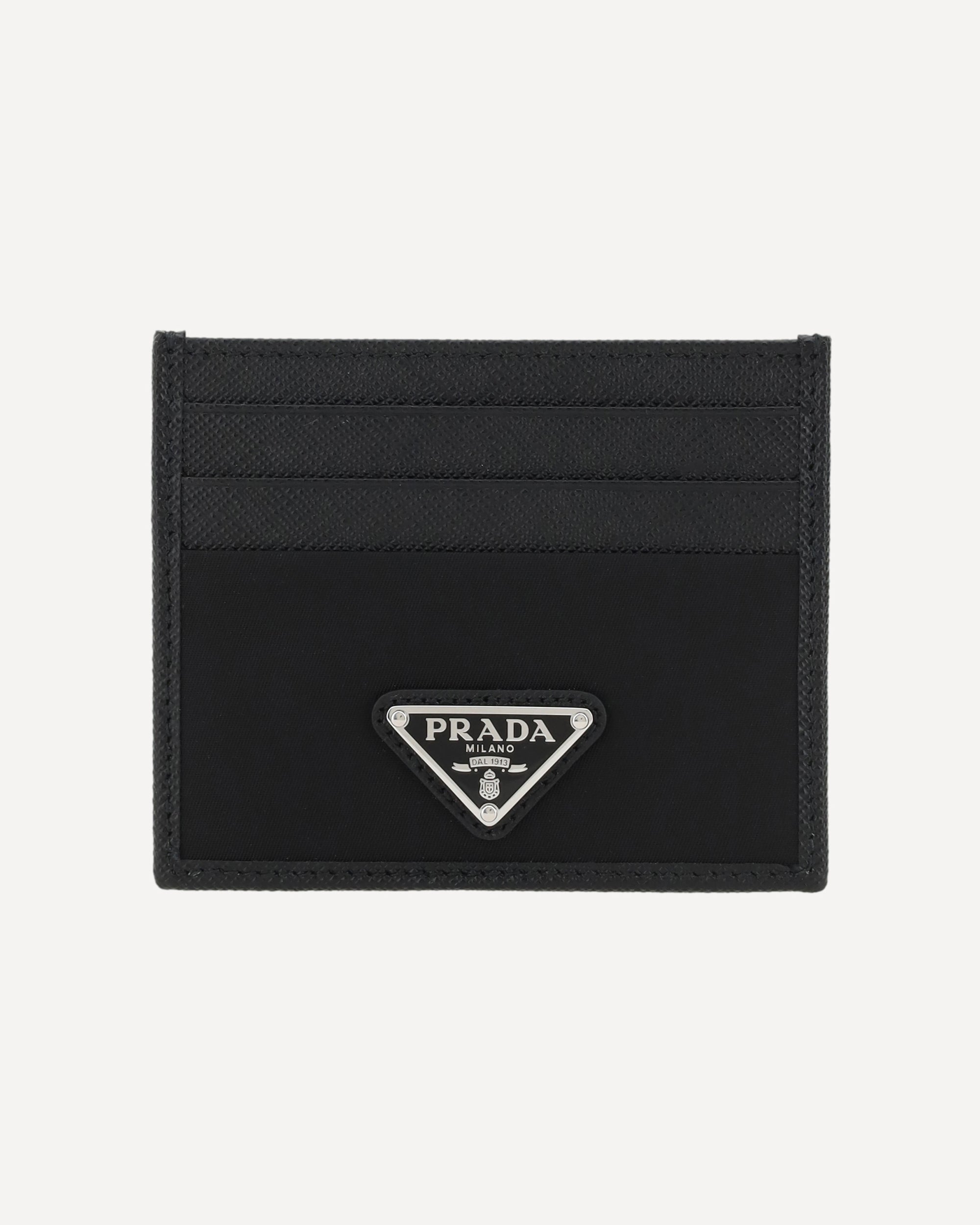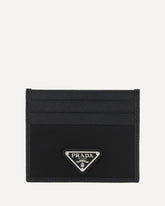 Prada's leather Card Holder is a stylish and functional accessory with card slots on the front and back for convenient organization. The iconic enameled triangular plaque is applied to the front, adding a distinctive brand touch. A luxurious little detail, perfect for storing cards in style.