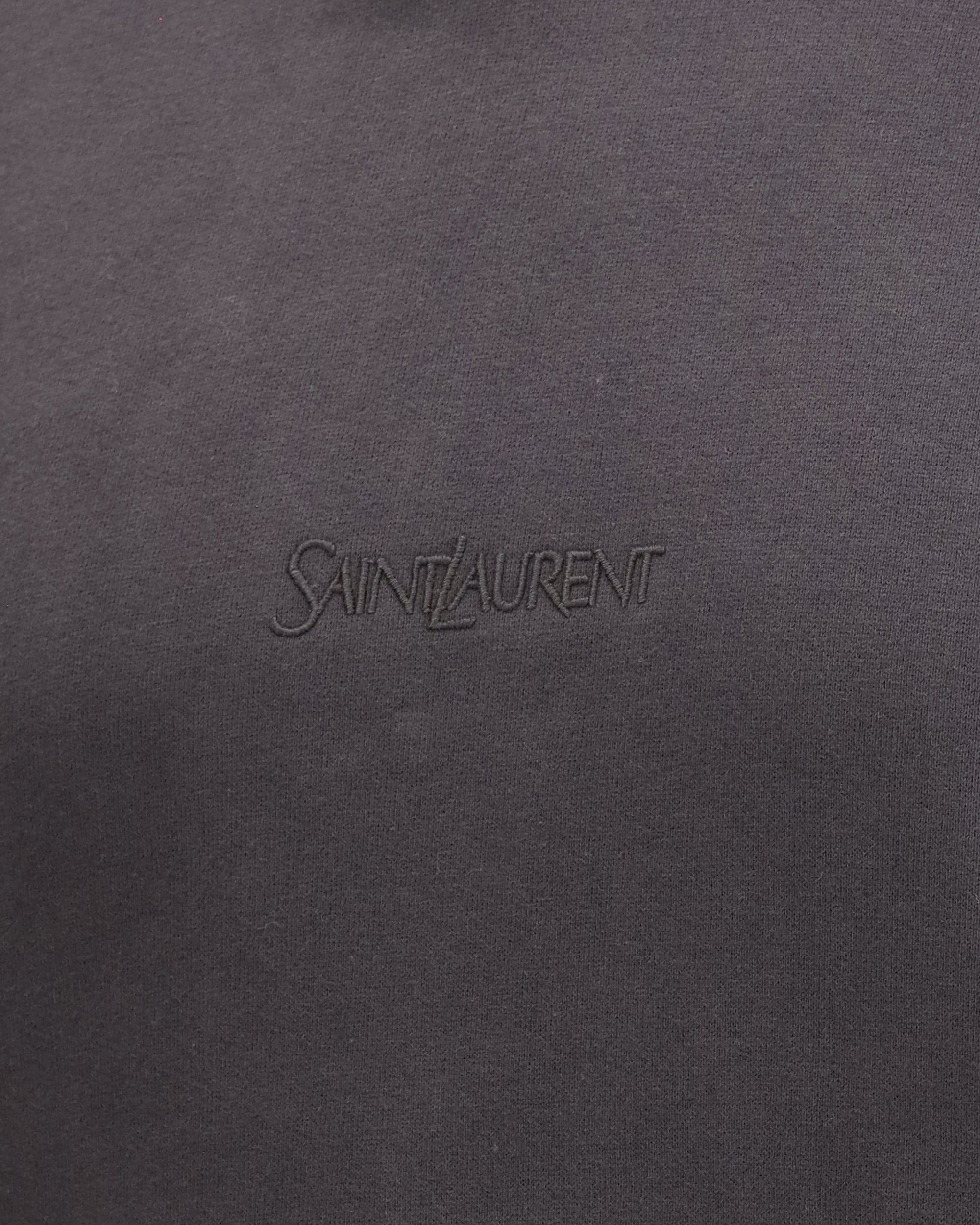 The Saint Laurent Hoodie is a garment that combines comfort and urban style, with a simple yet refined design. The adjustable drawstring hood offers functionality and the possibility of customizing the fit, while the kangaroo pocket adds practicality and a distinctive detail. The ribbed cuffs and hem ensure a comfortable and well-defined fit. The iconic brand logo, sewn tone-on-tone on the front, gives a discreet yet recognizable touch of elegance. Plush interior.