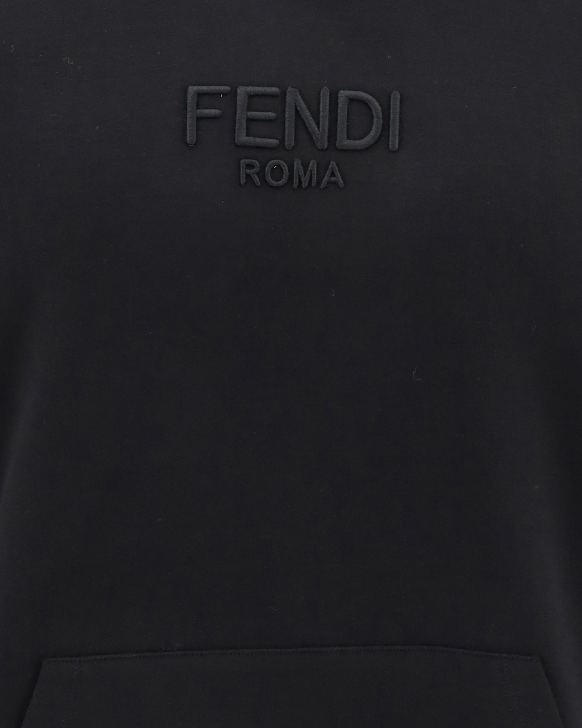 Fendi's cotton Hoodie is a comfortable and sophisticated piece, featuring ribbed cuffs and hem that ensure a perfect fit. The front features the brand's iconic embossed tone-on-tone monogram, an elegant and discreet detail. A patch kangaroo pocket completes the design, adding functionality to the look. The monochrome pattern makes the sweatshirt versatile and easy to match with various styles.