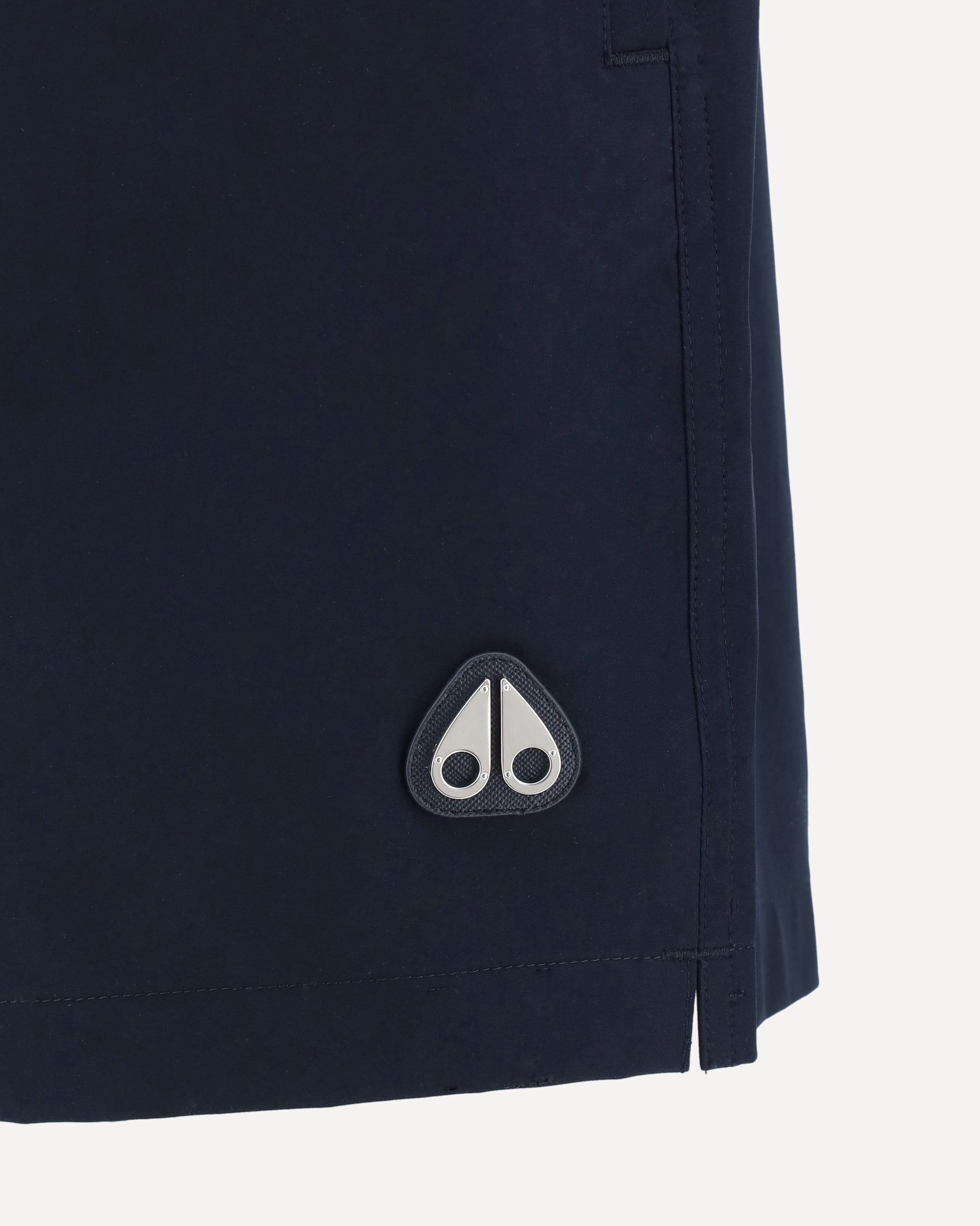 The Moose Knuckles Swimshorts is a practical and distinctive garment. The elastic waistband is adjustable with a drawstring to ensure a customized fit. The two side welt pockets and zippered slit pocket on the back provide functionality and practicality. This is complemented by the iconic logo plaque applied to the front, adding a stylish touch to the sporty, modern design.