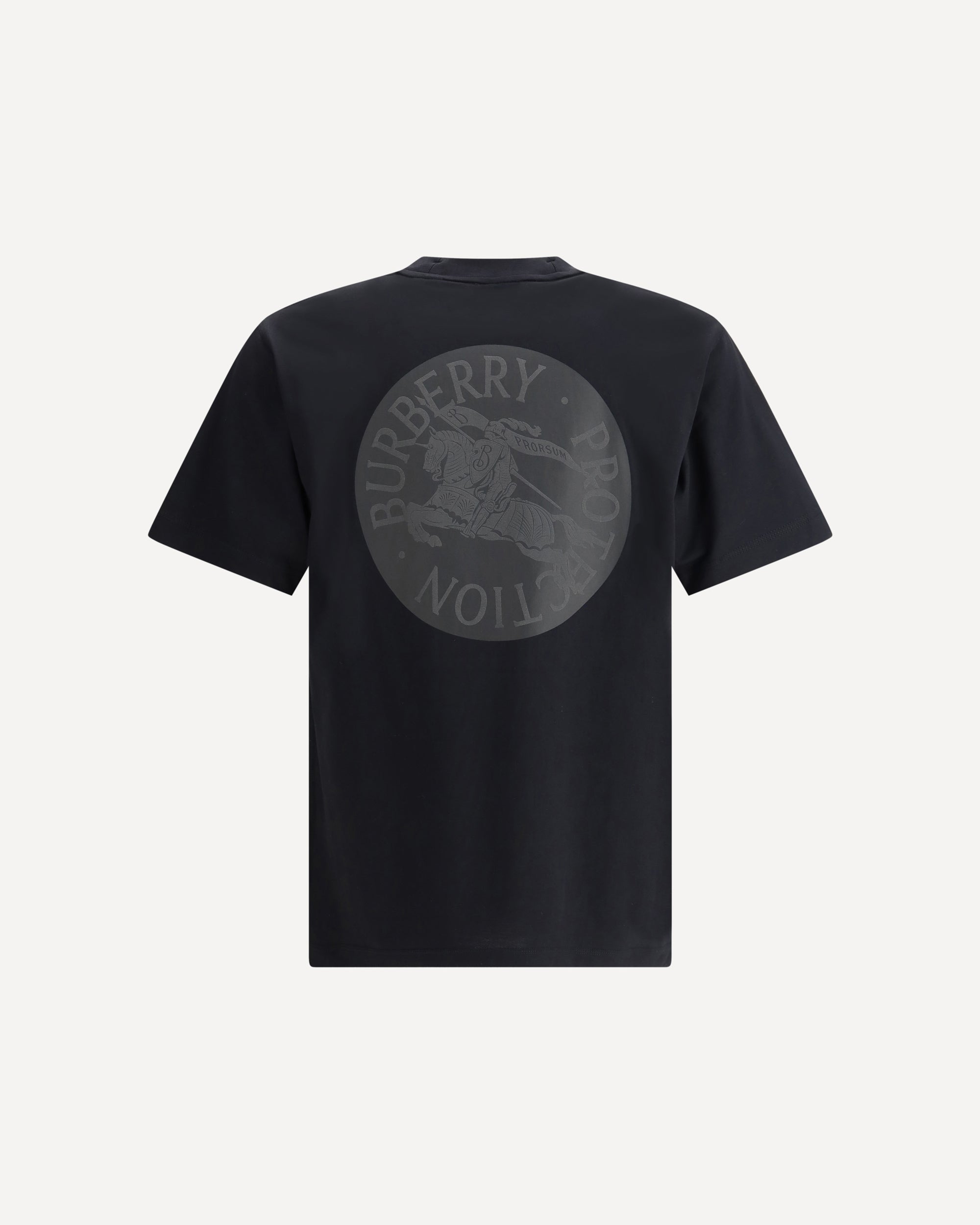 The Burberry cotton T-Shirt is an essential garment reimagined with the distinctive elegance of the British fashion house. Made from soft cotton, it features a ribbed crew neck and a monochrome pattern that enhances the iconic Equestrian Knight logo printed on both front and back. A combination of classic style and historical identity, perfect for adding a heritage touch to your everyday wardrobe.