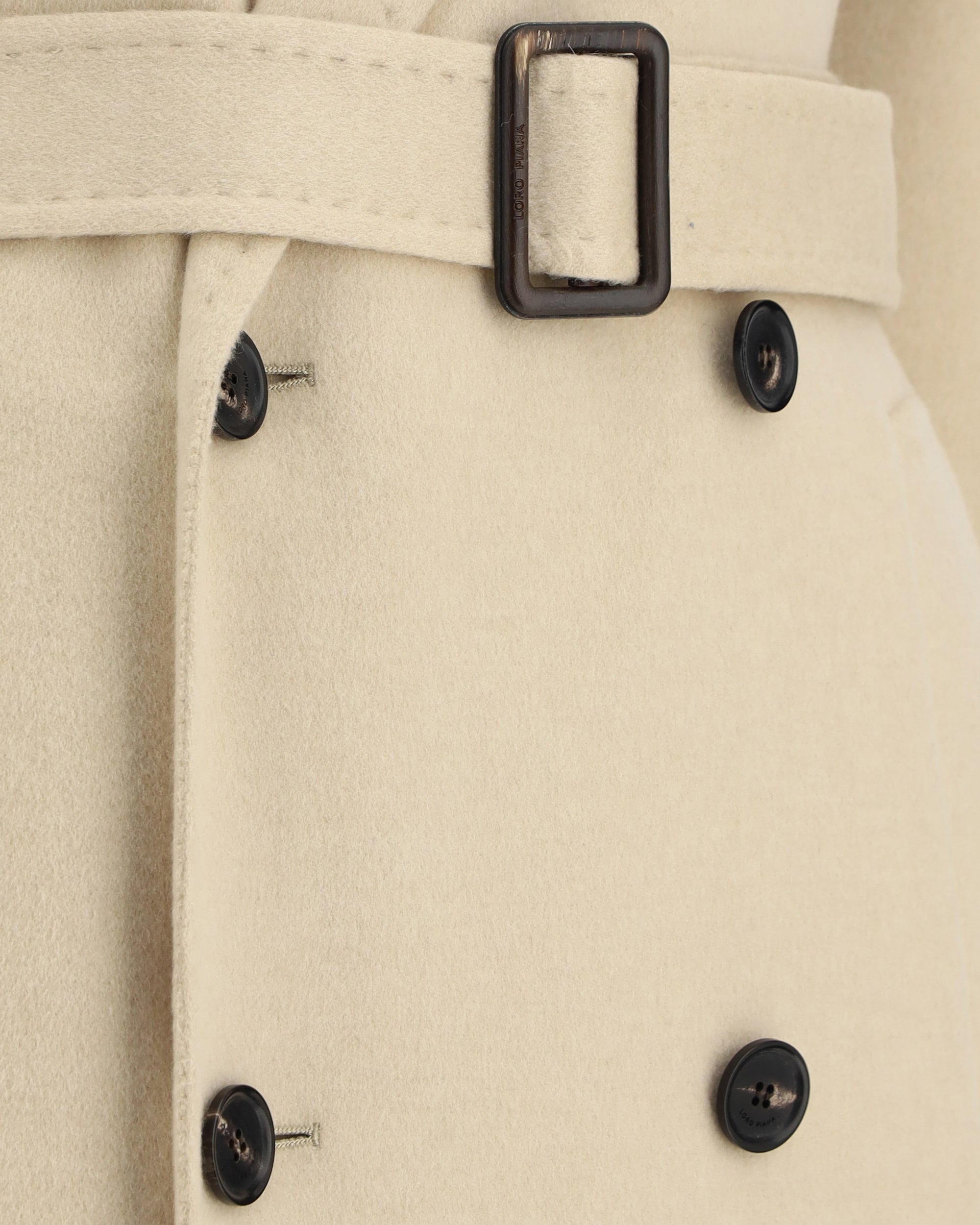 The Loro Piana Long Cashmere Coat is the embodiment of luxury and sophistication. The soft and warm fine cashmere envelops the figure with a feeling of incomparable comfort. The wide lapels give the coat an elegant and imposing air, while the double-breasted front closure with buttons adds a classic and sophisticated note. The two side welt pockets with flap, practical and discreet, complete the functional design without sacrificing style. The matching belt, adjustable with buckle and removable, allows you to adapt the fit of the coat, highlighting the silhouette in a refined way.