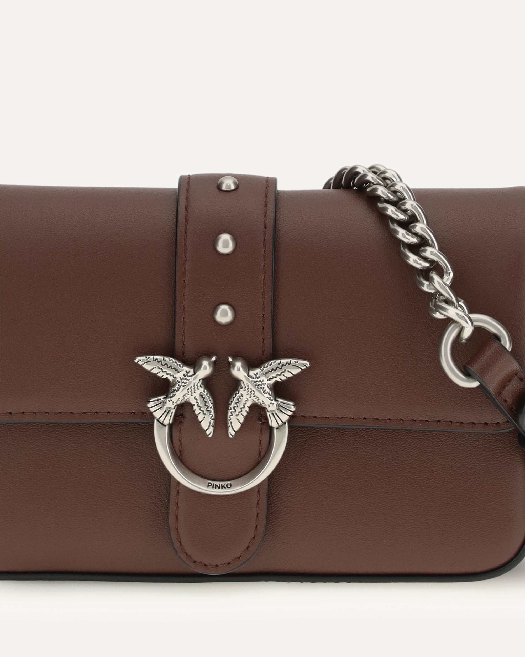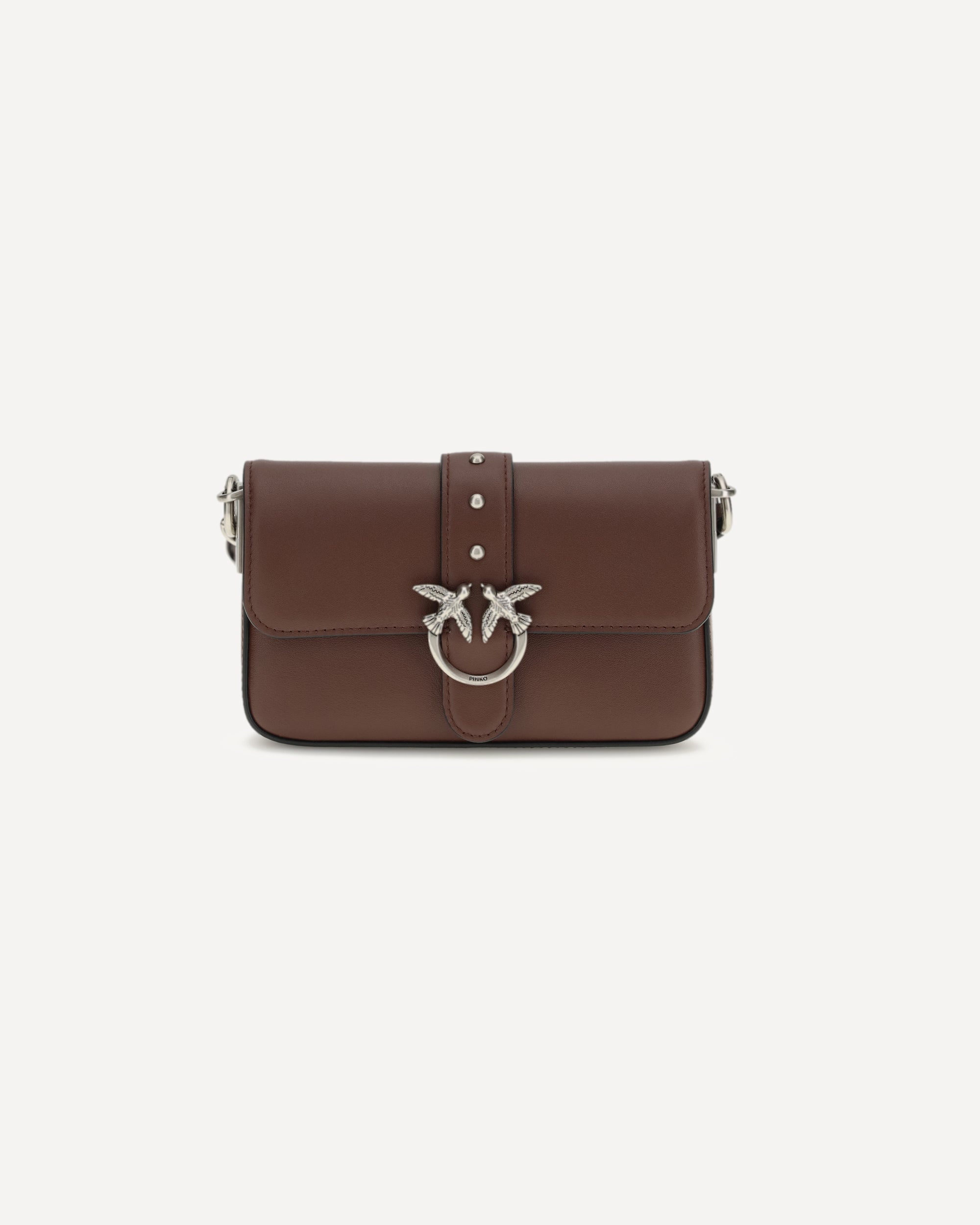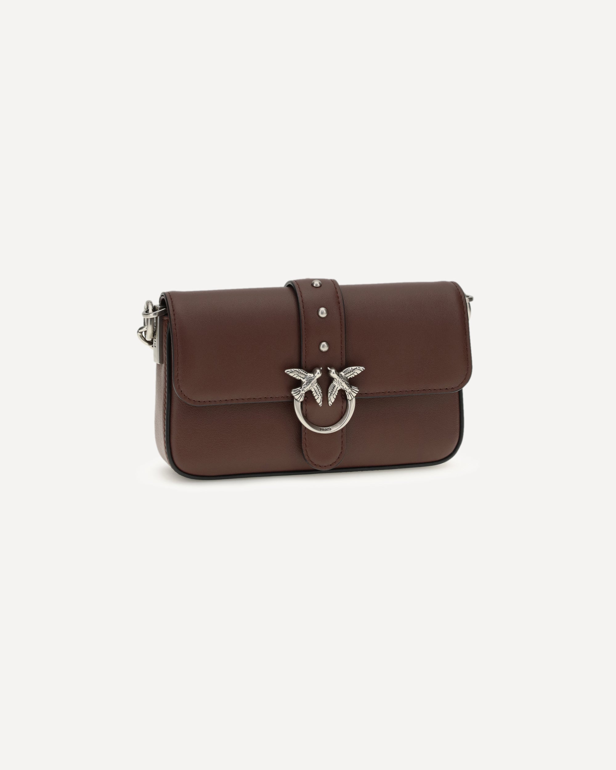 The Baby Love Shoulder Bag by Pinko is an iconic and versatile accessory featuring an adjustable leather shoulder strap with buckle and a chain strap with leather shoulder strap to suit different style needs. The flap closure is embellished with the pod and buckle featuring the iconic Love Birds Diamond Cut logo in antique gold plated metal, giving it a distinctive and elegant touch.