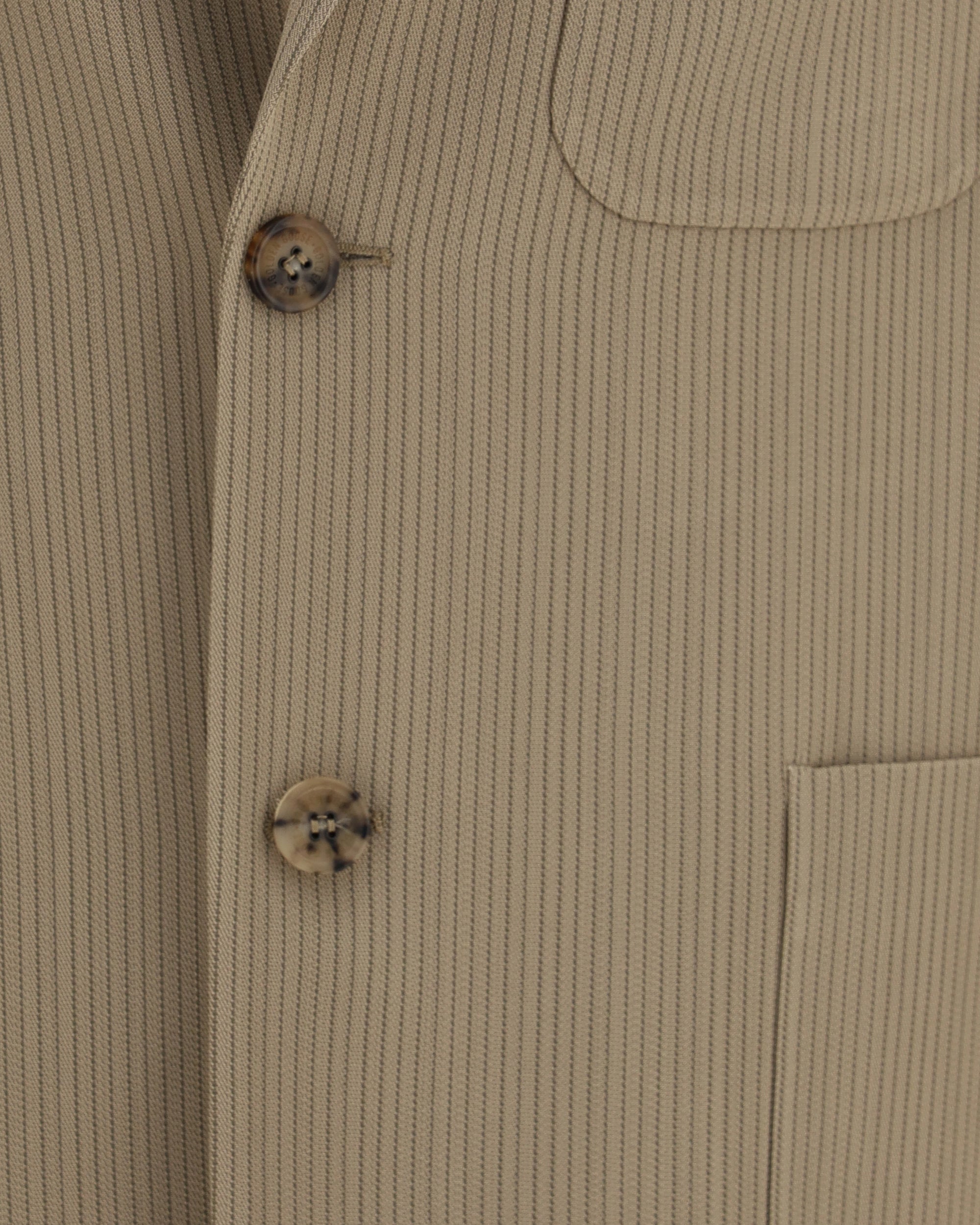 The Lowell Blazer Jacket by Golden Goose has a sleek design with classic lapels and single-breasted button closure. On the front, it features three patch welt pockets. This is enhanced by a pinstripe pattern, which gives a sophisticated and refined touch. Perfect for a formal and modern look.