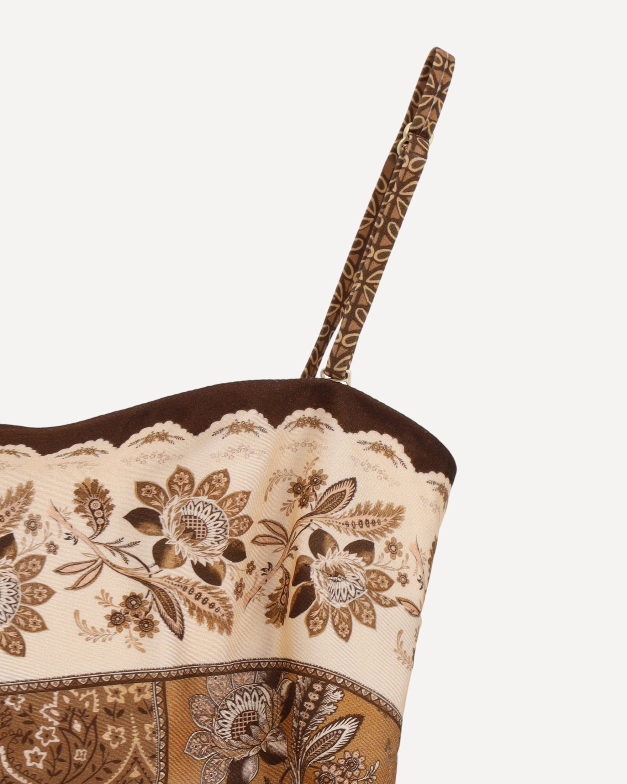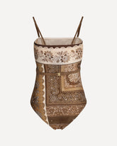 Zimmerman's Lucky One-piece Swimsuit is a piece with retro appeal with a contemporary twist, perfect for those who want a chic look at the beach. Featuring a straight neckline and thin straps, it provides a sleek and comfortable fit. The looped waistband emphasizes the silhouette, creating a slimming and sophisticated effect. The paisley and floral pattern, a true trademark of the fashion house, adds an extra dimension of freshness and vibrancy to the design. A swimsuit that combines style, comfort and sophistication for a summer of beauty and fashion.