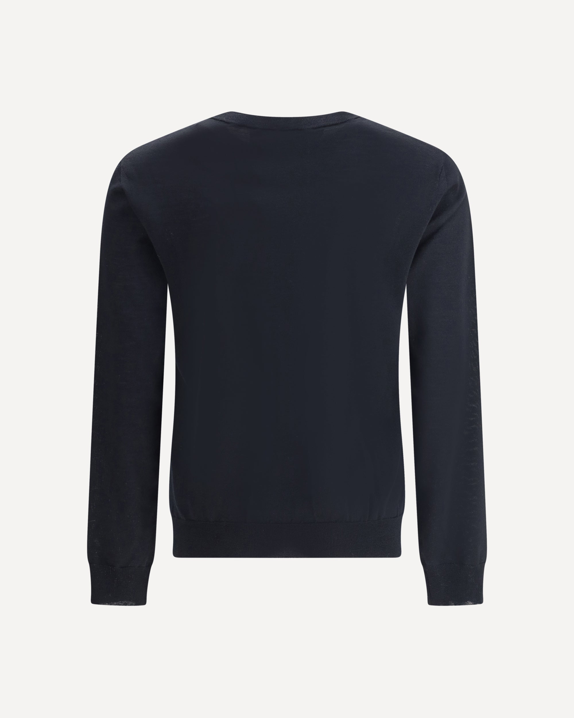 Valentino's virgin wool Sweater strikes the perfect balance between elegance and comfort. Featuring a ribbed crew neck, it features the iconic tone-on-tone embroidered logo on the front, a discreet yet distinctive detail. Ribbed cuffs and hem complete the design, ensuring a defined and comfortable fit. A timeless garment, ideal for refined looks with essential taste.