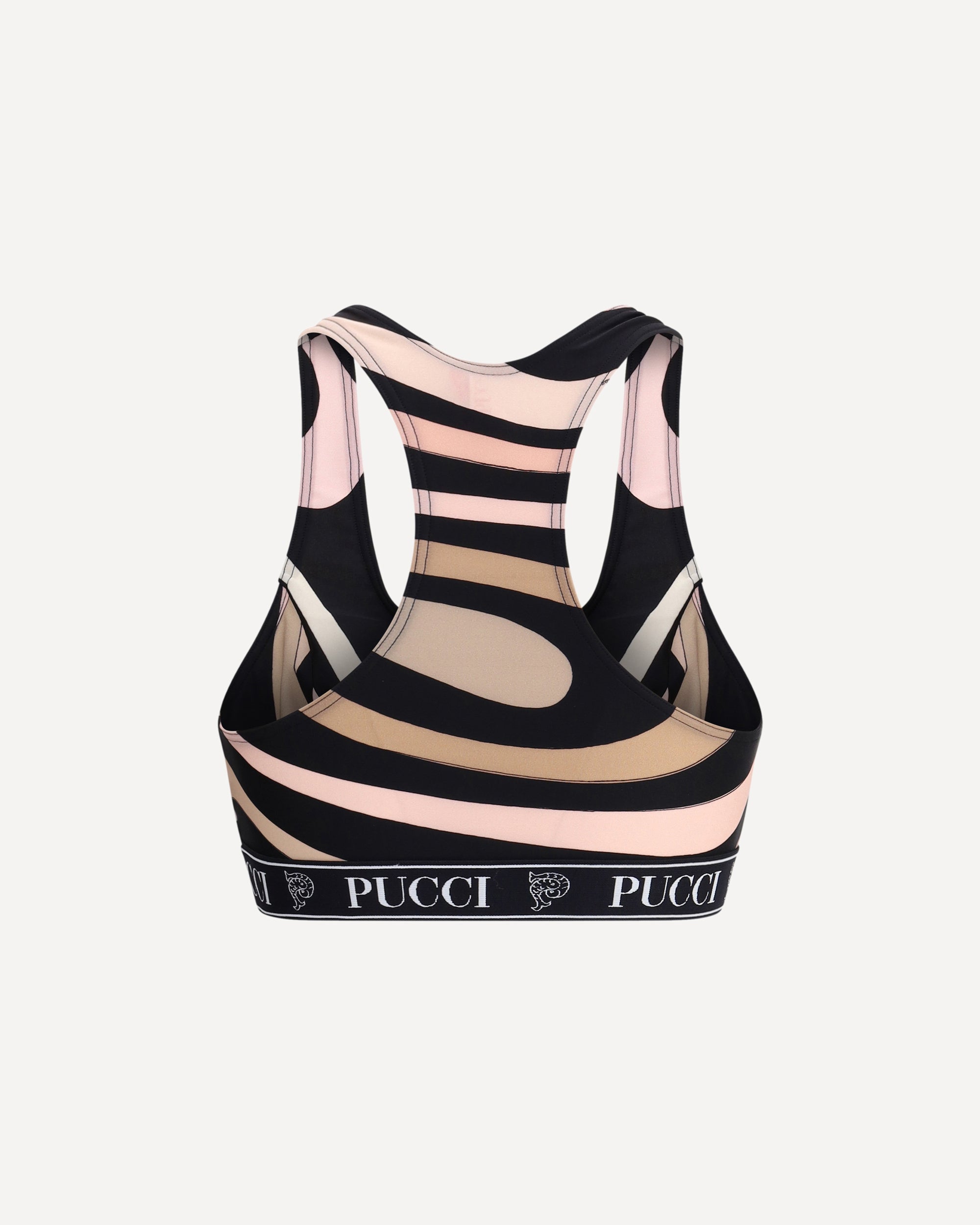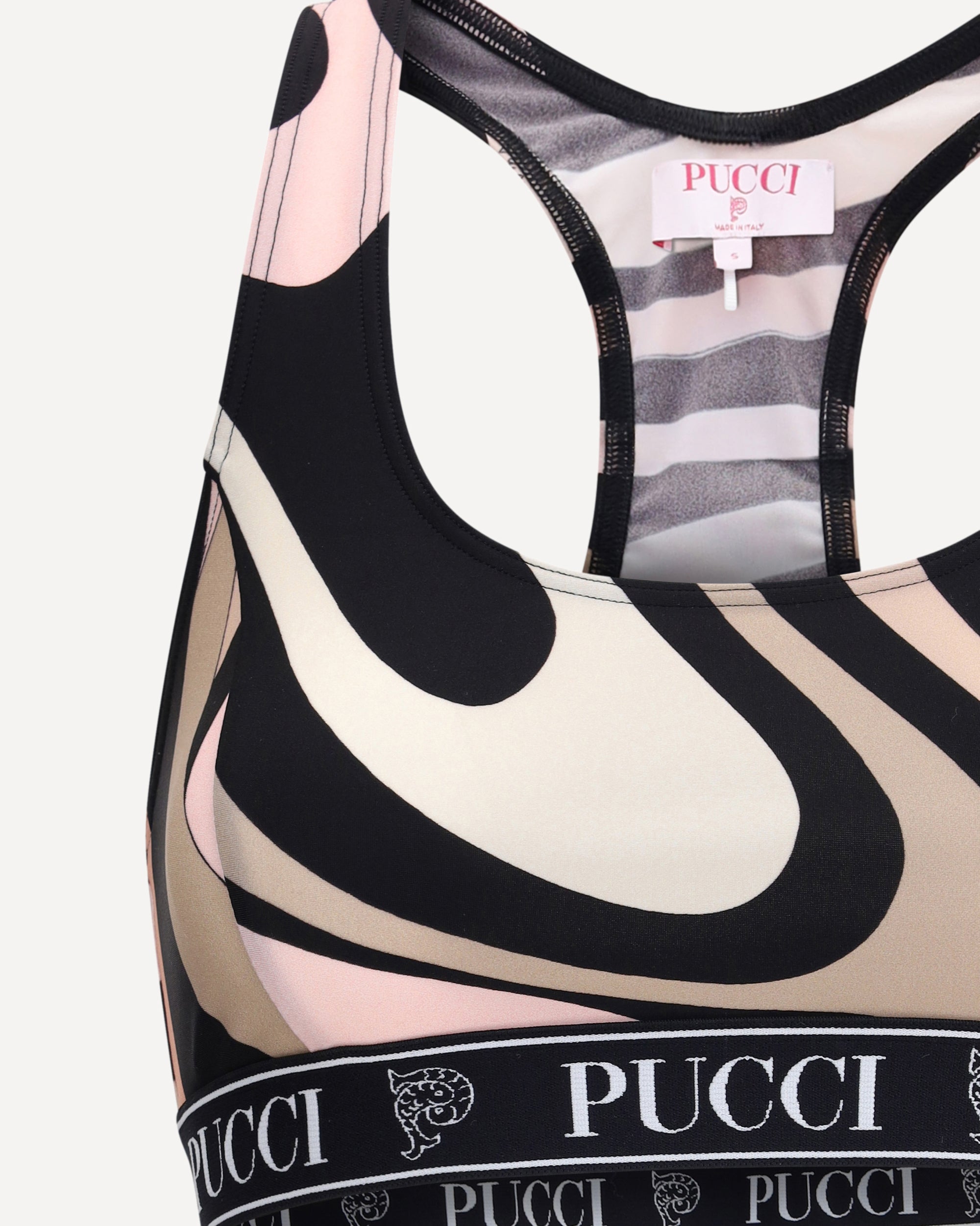 Pucci's Marble print sports Top combines style and functionality. With an elastic band under the bust for optimal support and thick straps that provide comfort, this top is perfect for sports activities and relaxing moments. The iconic Marmo print adds a distinctive and modern touch, making the garment not only practical but also sophisticated.To offer you a unique garment, Pucci uses an all-over print that makes the item unrepeatable.Therefore, the placement of the print may vary from the one in the photo.
