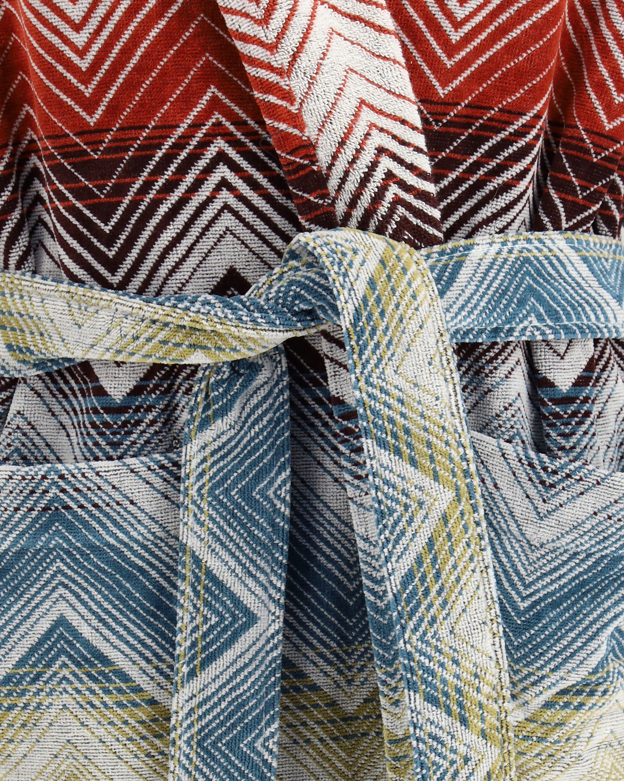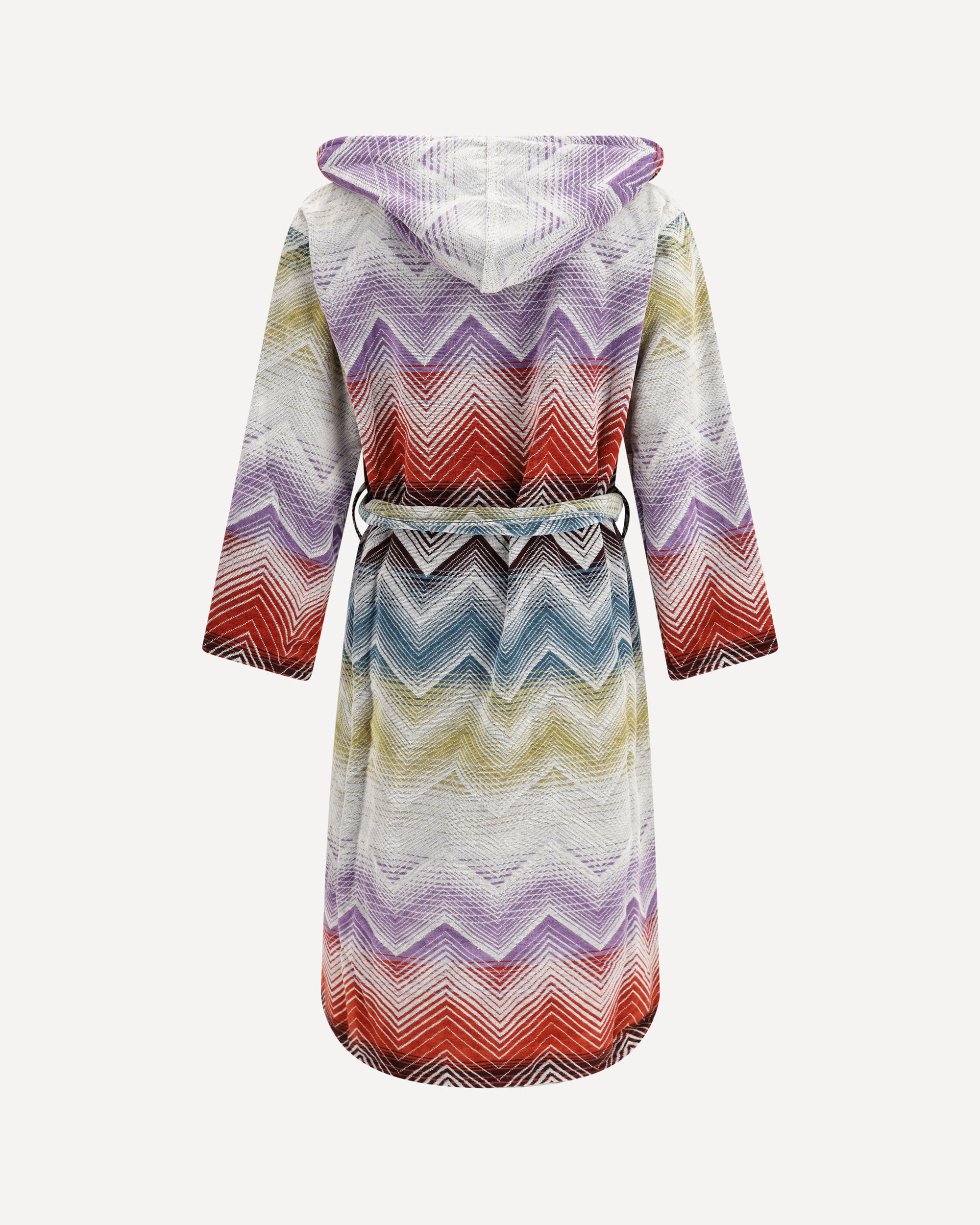 The Marea hooded Bathrobe by Missoni, crafted in cotton terry, is distinguished by the brand’s iconic chevron motif, an unmistakable signature of the maison. Made from 100% cotton, it embraces the skin with natural softness, offering warmth and comfort for every moment of relaxation. A functional yet refined design, it features a hood, adjustable waist belt, and practical patch pockets, reflecting Missoni’s timeless elegance and exceptional craftsmanship.