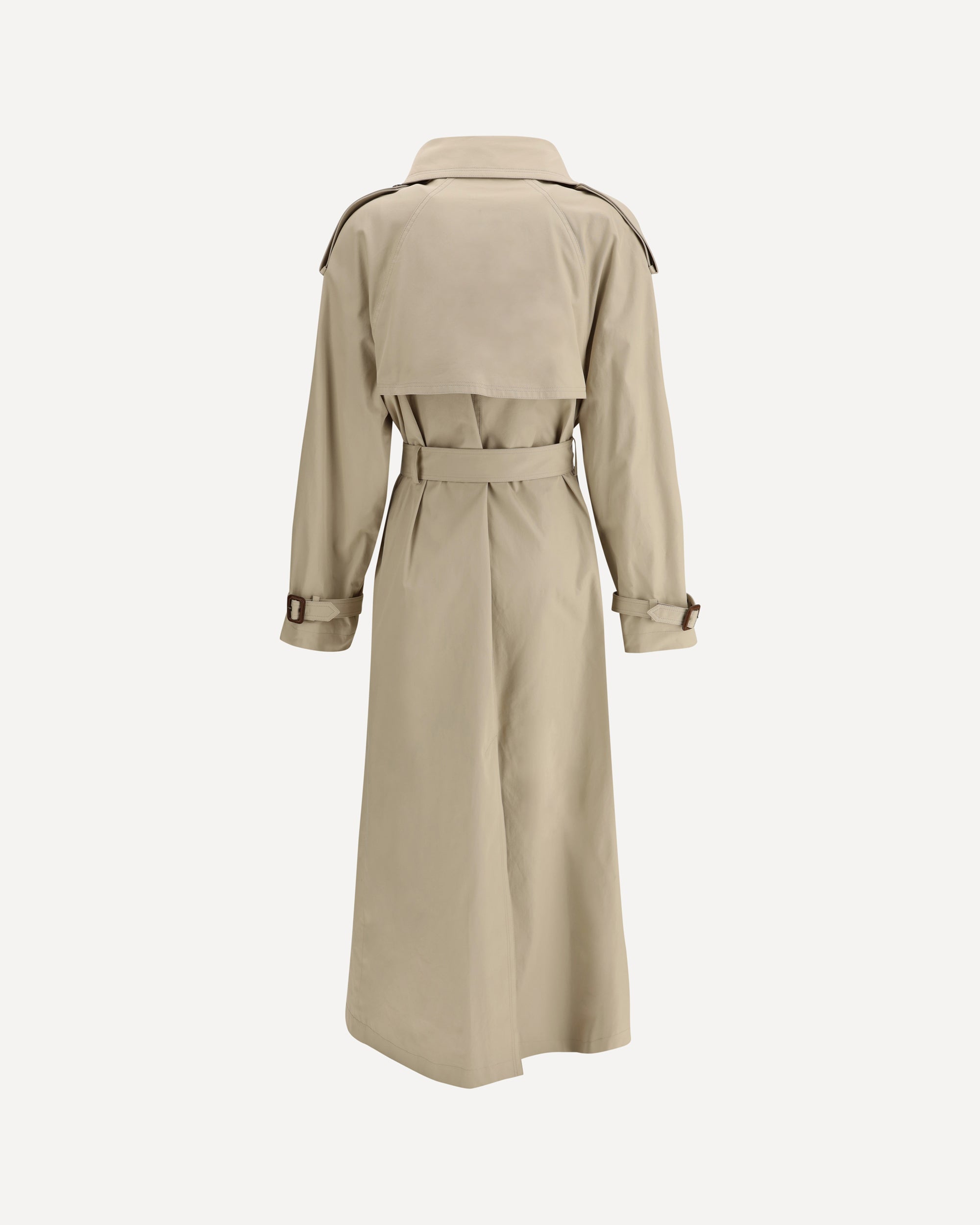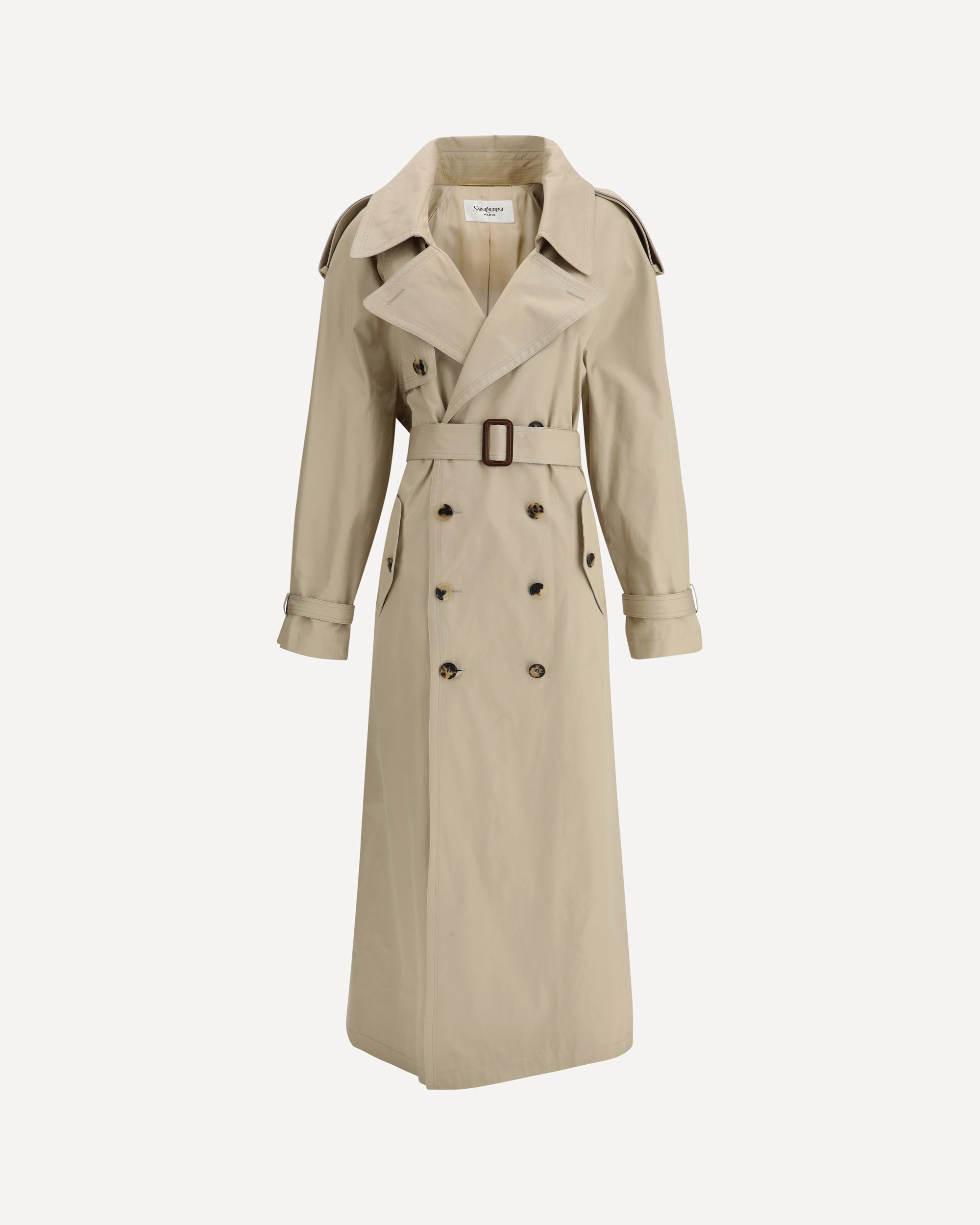 The Saint Laurent maxi Trench Coat is an iconic and sophisticated piece that perfectly embodies the brand's timeless elegance. The wide lapels and double-breasted front button fastening create a classic silhouette, while the two side welt pockets with flap add practicality without compromising style. The back vent adds a touch of movement and sophistication. The matching belt, adjustable and removable, allows you to customize the fit, accentuating the waist and creating a defined look. With belt loops at the waist, this trench coat is a versatile piece, ideal for wearing both with elegant suits and a more casual look, for a touch of class on every occasion.