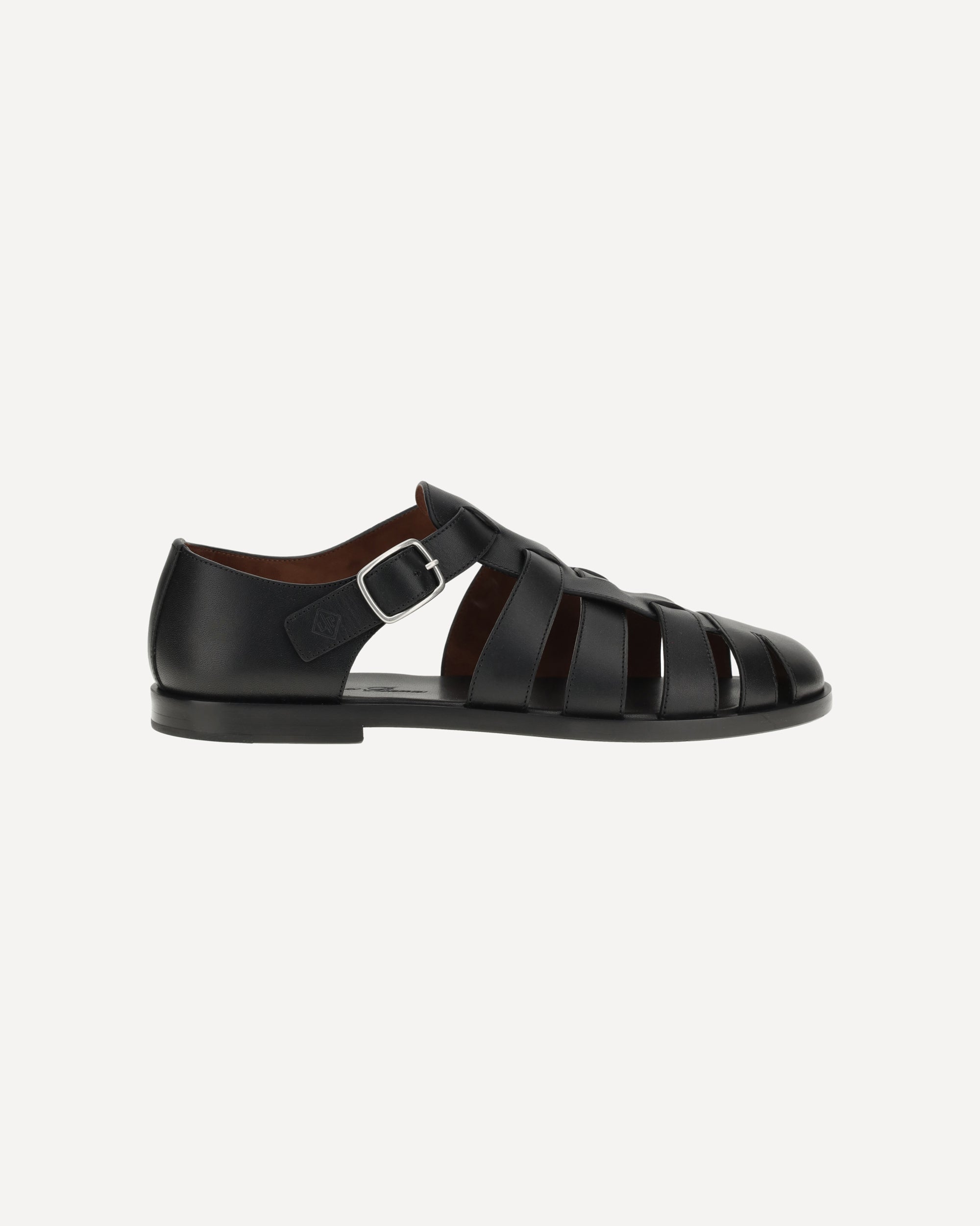 Loro Piana's Maxime Walk Sandals stand out for their elegant and versatile caged design, perfect for any occasion. Made of Silky Leather, a Dutch calfskin leather renowned for its smooth, soft-touch and naturally transparent finish, these sandals combine craftsmanship and comfort. The silver-tone rounded buckle adds a touch of sophistication, completing the model with discretion and class. A sophisticated and timeless accessory.