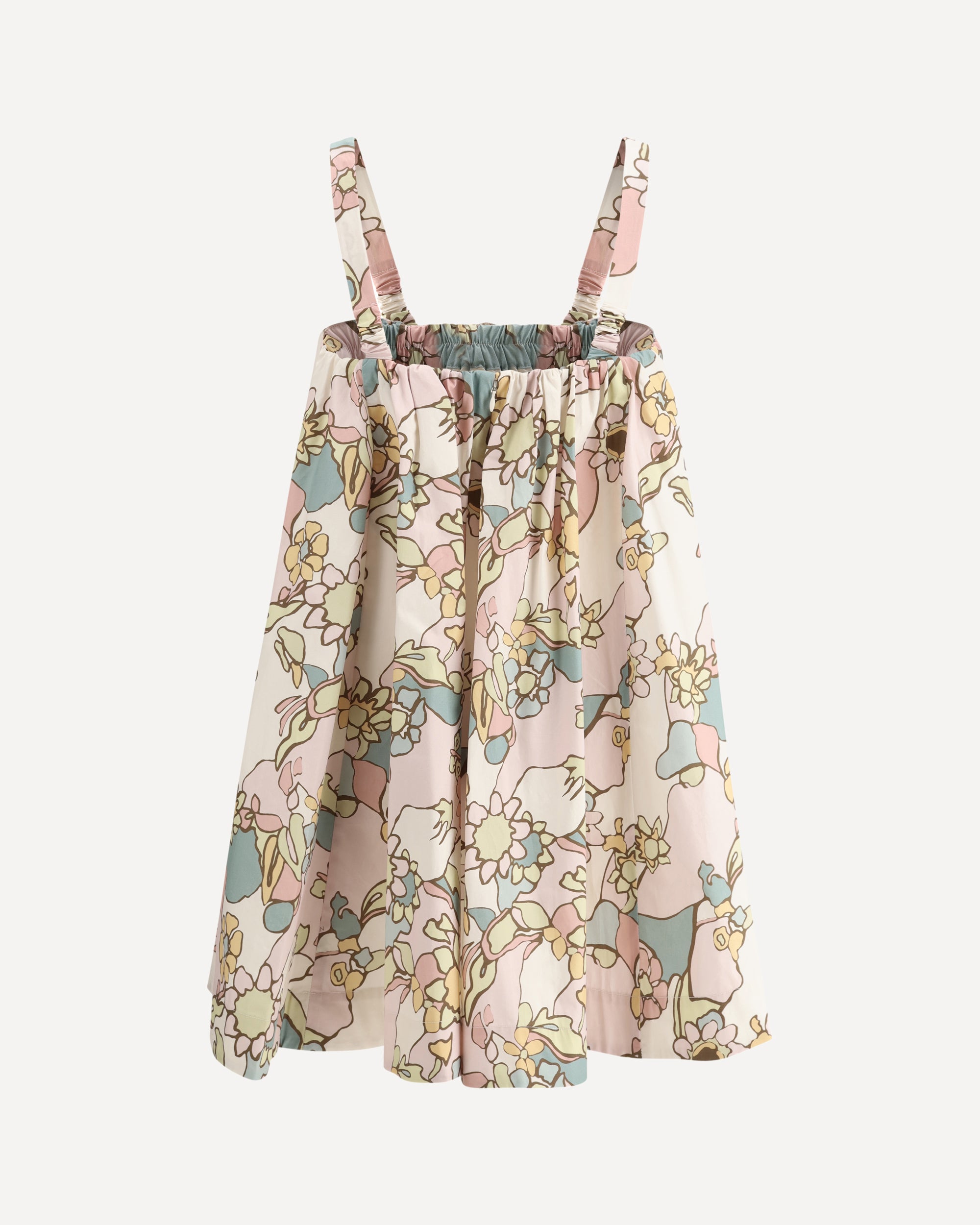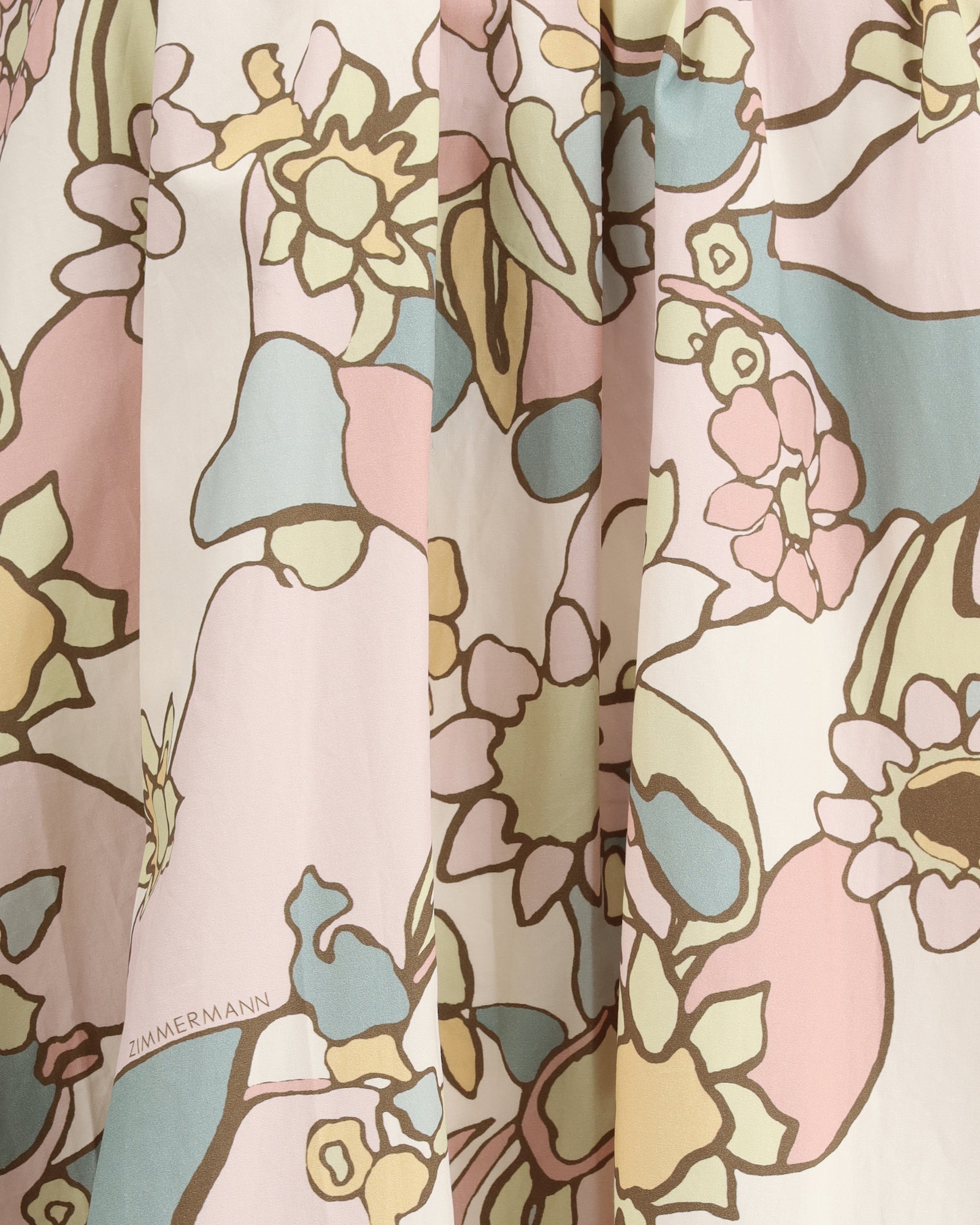 The Maxine Mini Dress by Zimmermann is an elegant sleeveless trapeze dress, perfect for a cool and refined look. It features an elasticized square neckline, which ensures a comfortable fit and enhances the silhouette. The back zipper ensures a discreet and perfect closure. The floral pattern adds a romantic and lively touch, making this dress ideal for summer occasions or special events. A mix of elegance and femininity, perfect for any time of day.